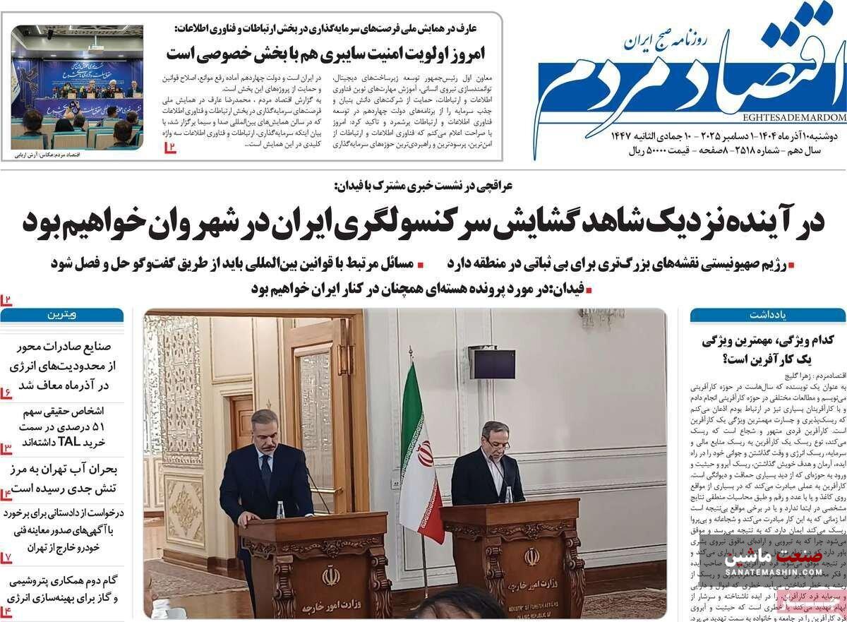 صفحه نخست روزنامه های اقتصادی 13 آذر 1404