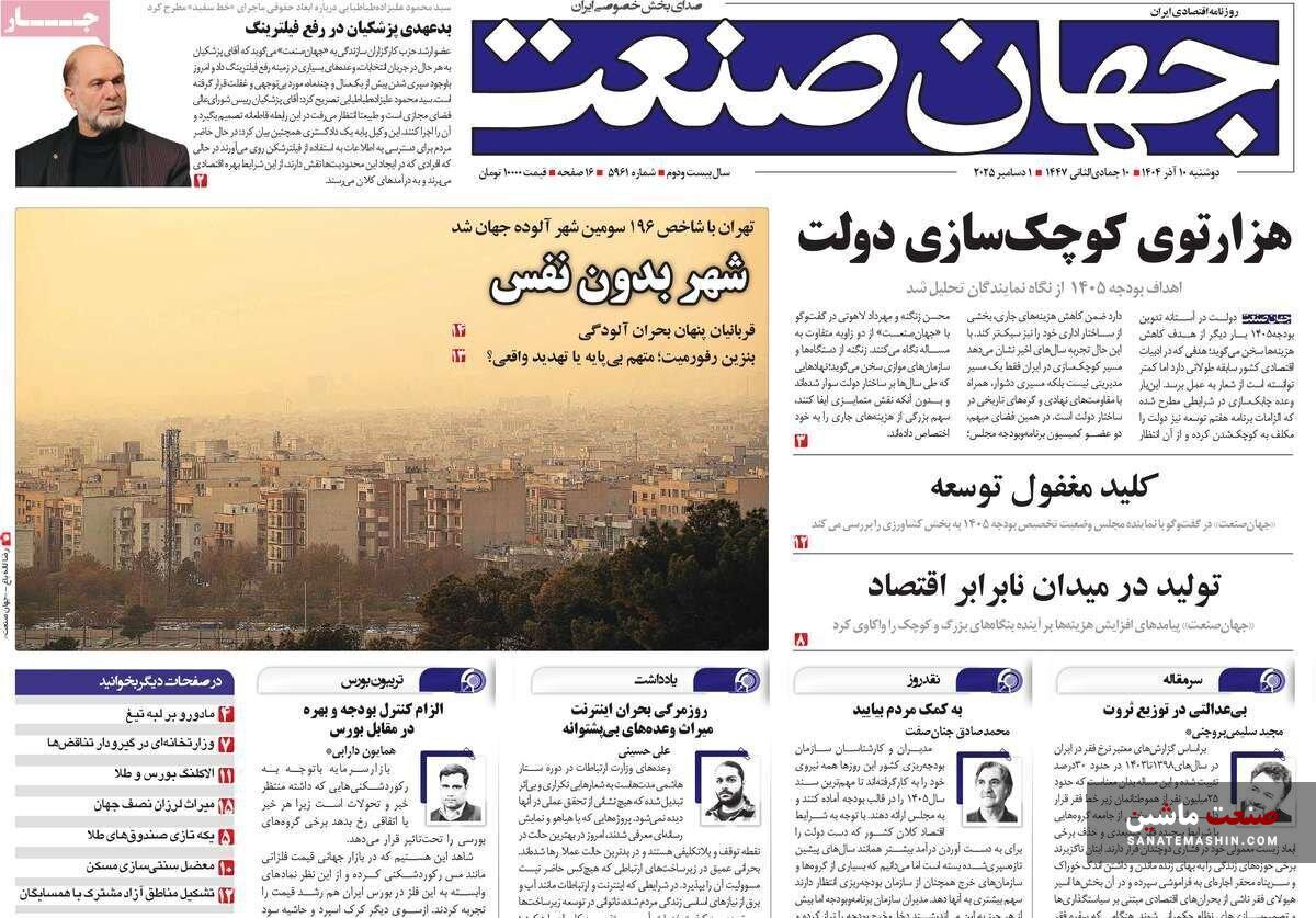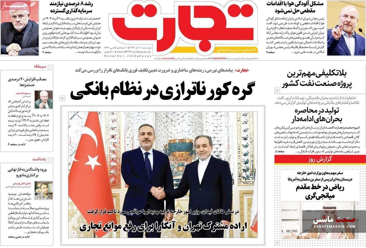 به گزارش صنعت ماشین ؛ صفحه نخست روزنامه های اقتصادی 10 آذر 1404 به شرح زیر است: