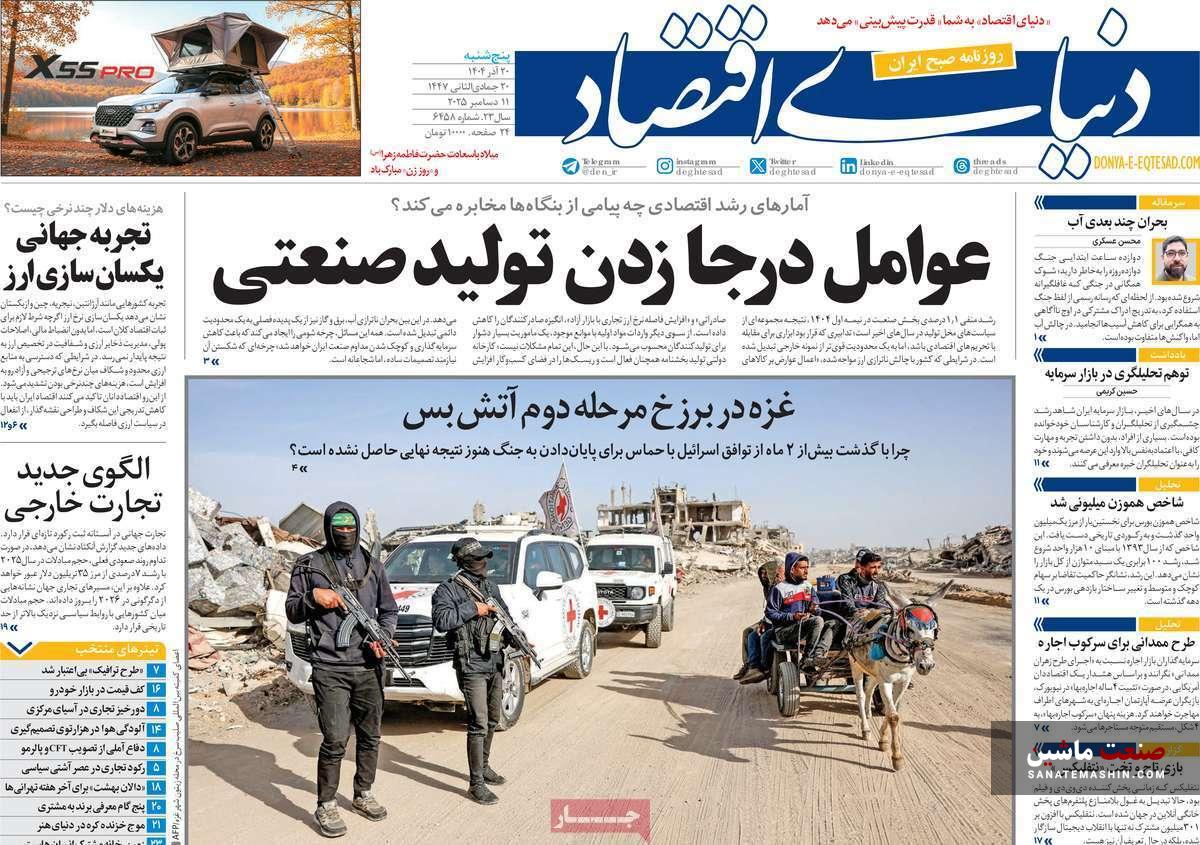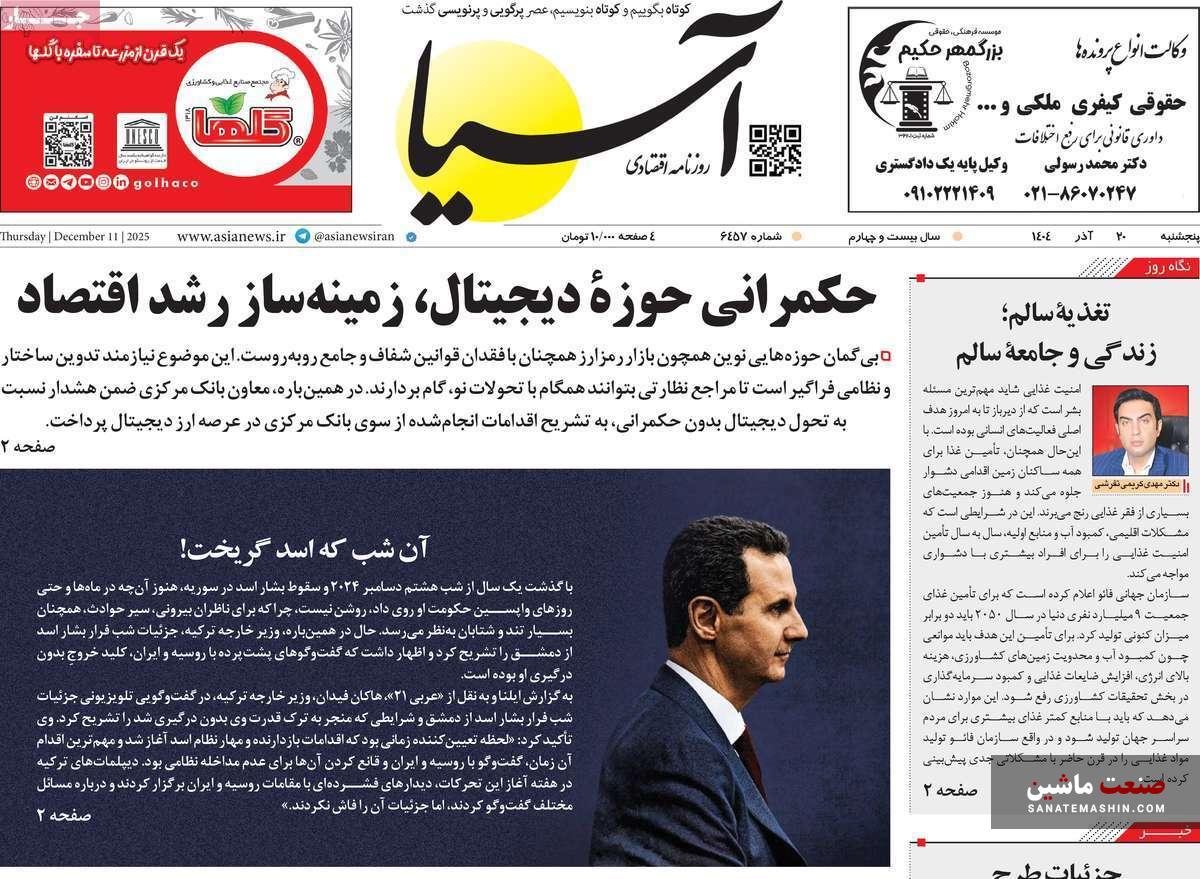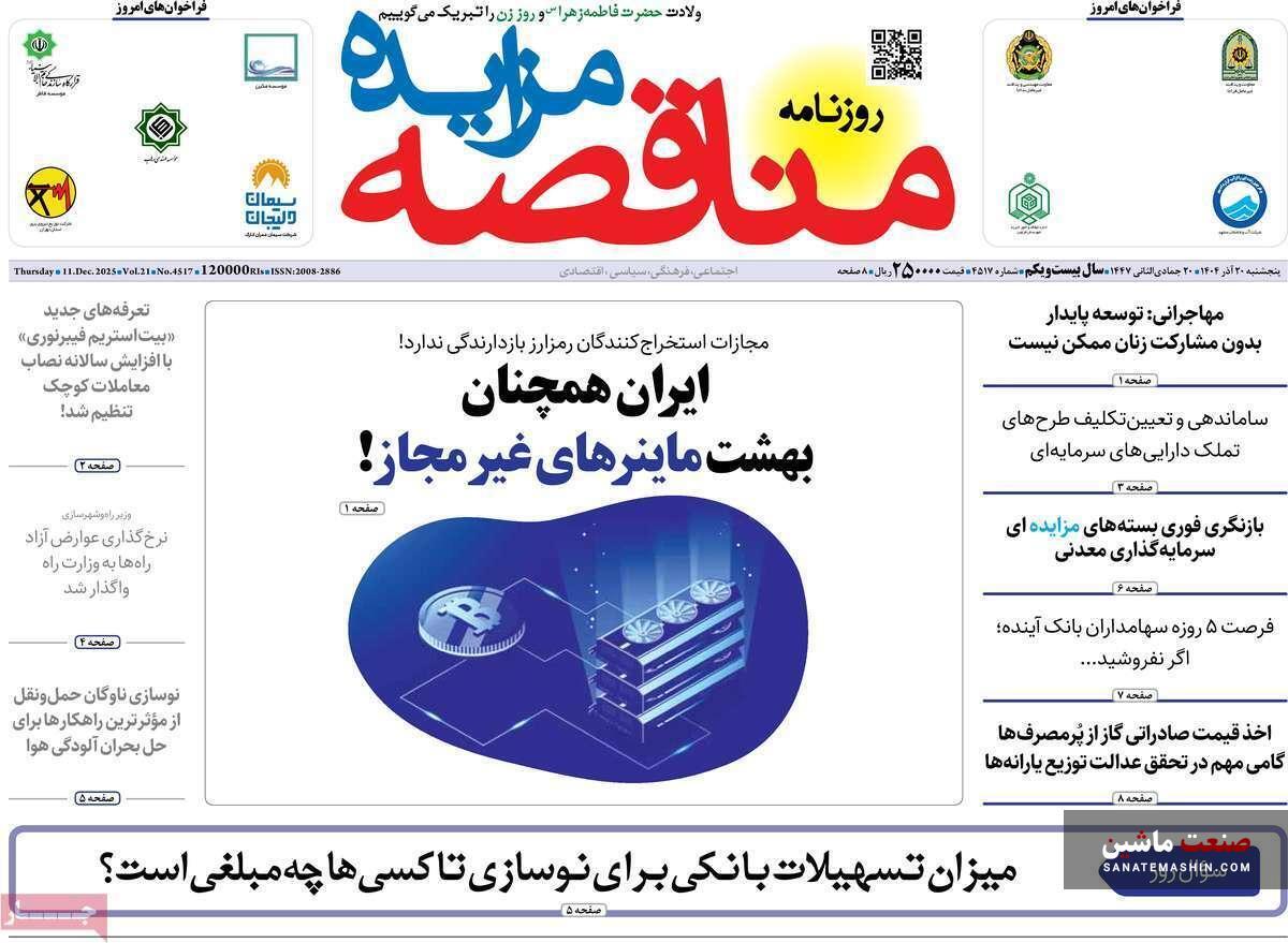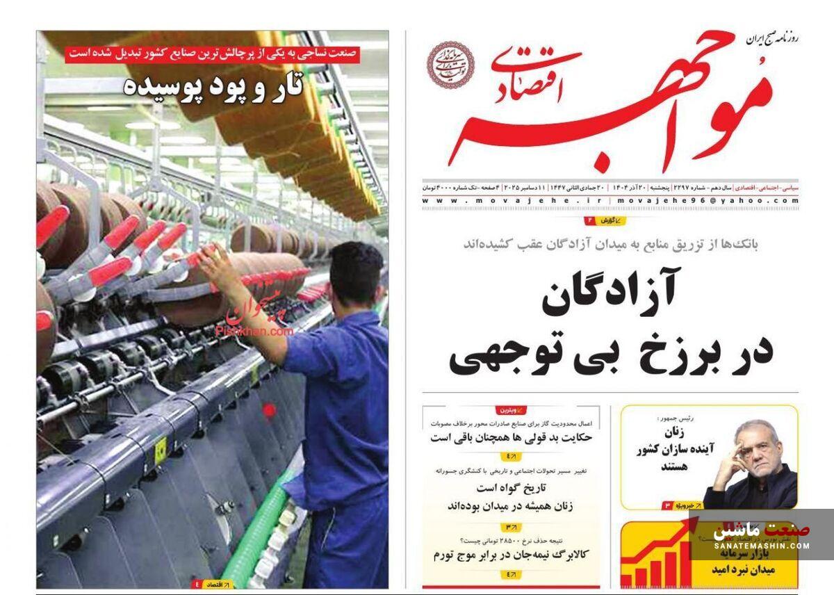 صفحه نخست روزنامه های اقتصادی 11 آذر 1404