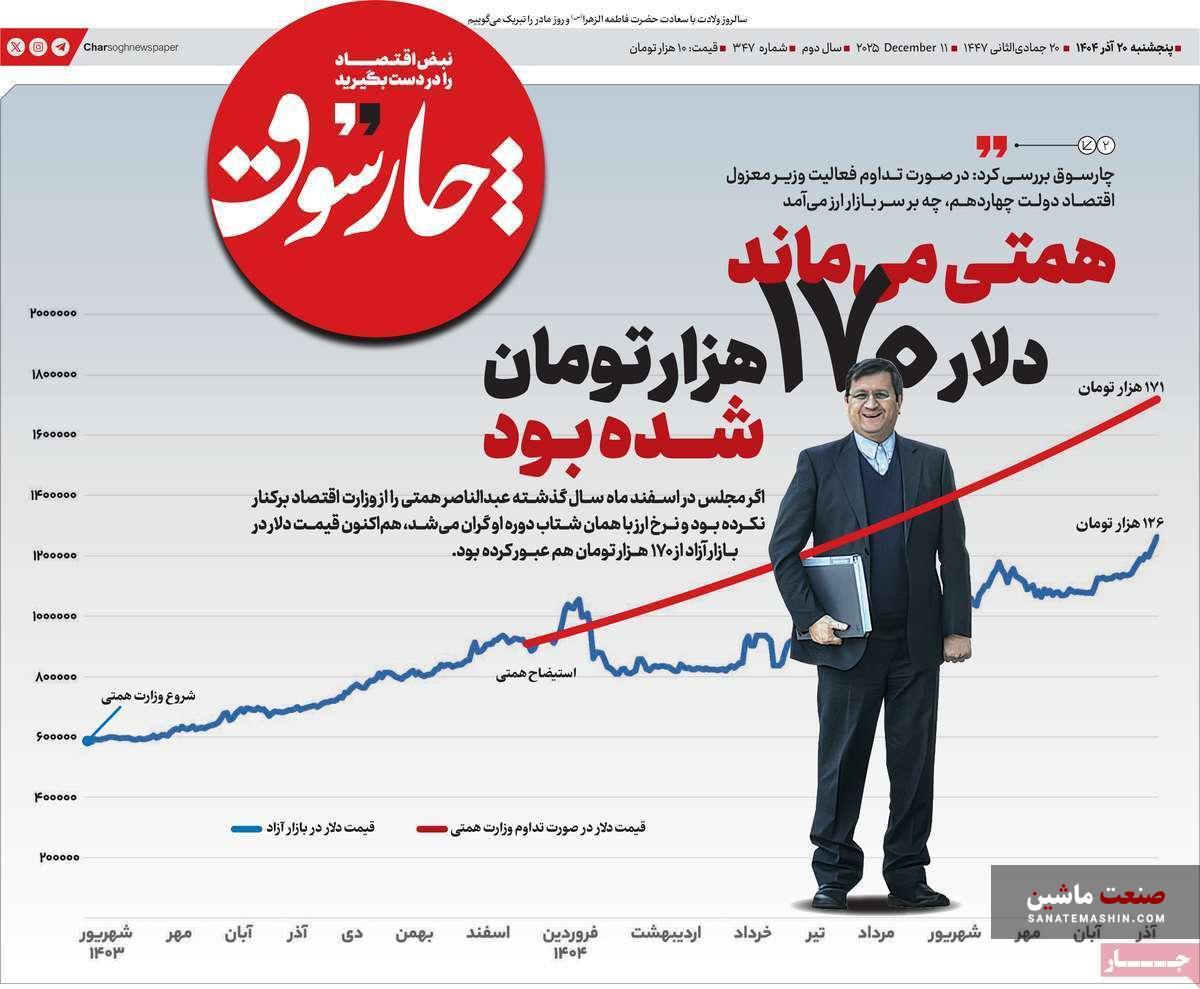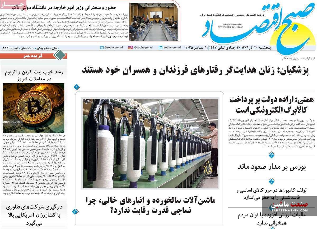 به گزارش صنعت ماشین ؛ صفحه نخست روزنامه های اقتصادی 20 آذر 1404 به شرح زیر است: