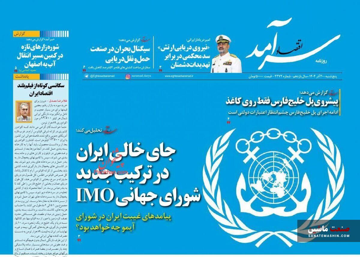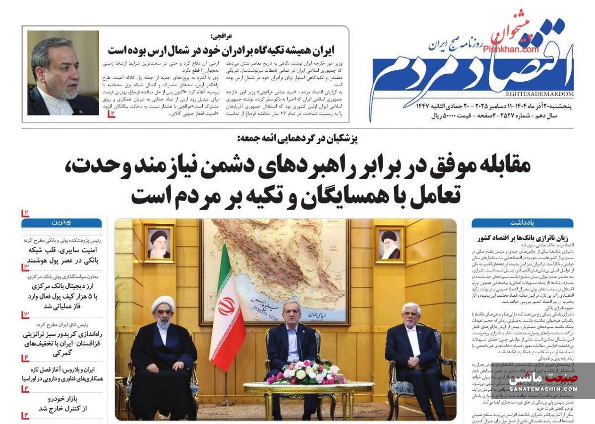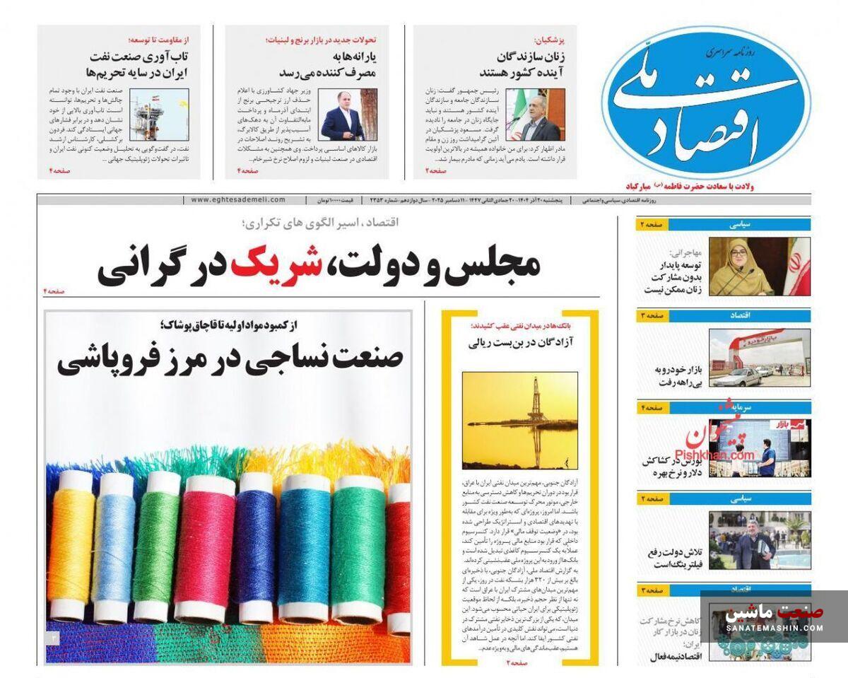 صفحه نخست روزنامه های اقتصادی 19 آذر 1404