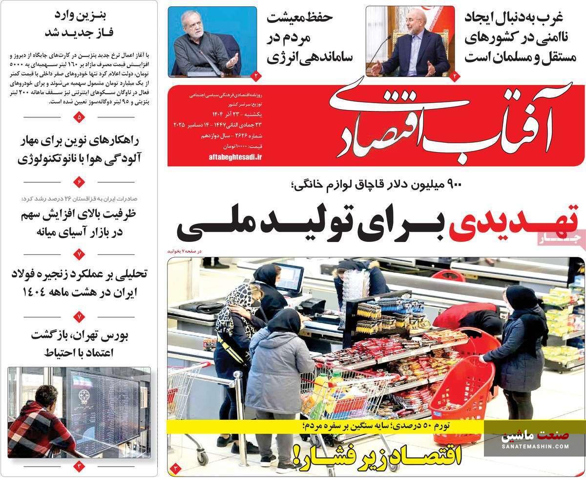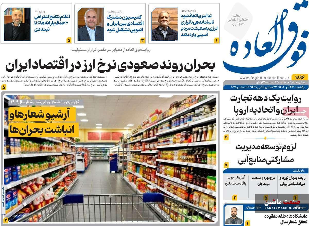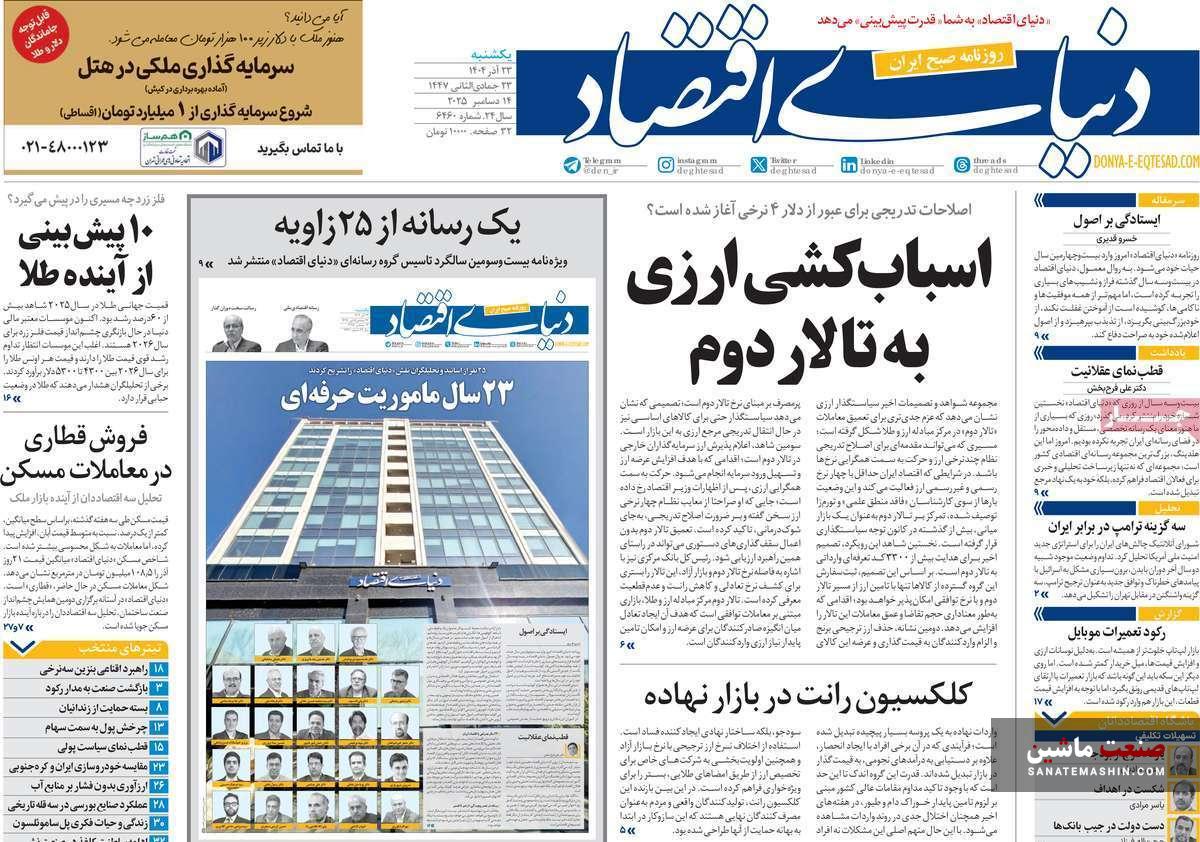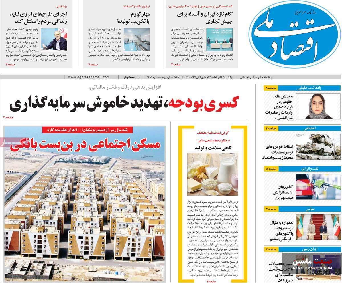 به گزارش صنعت ماشین ؛ صفحه نخست روزنامه های اقتصادی 23 آذر 1404 به شرح زیر است: