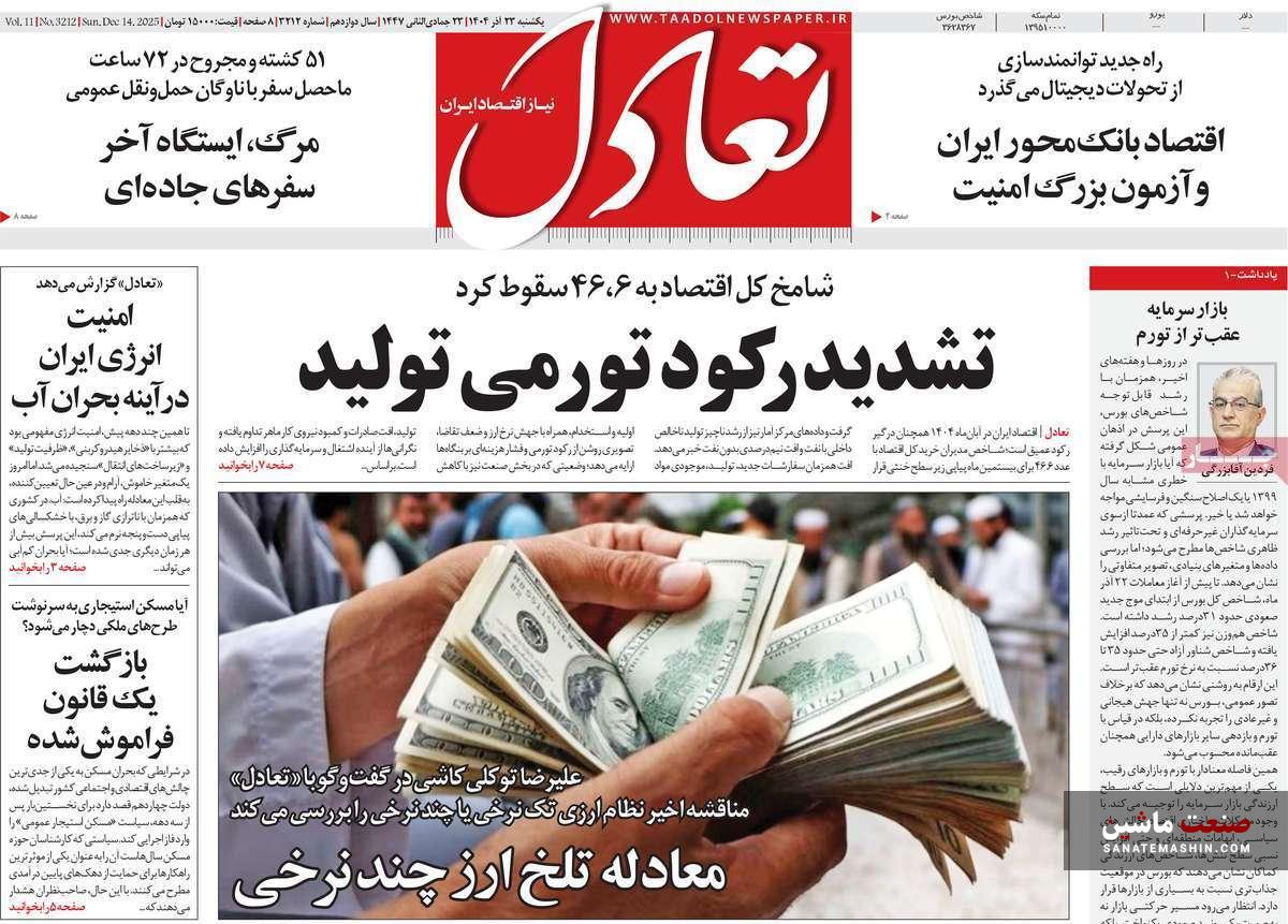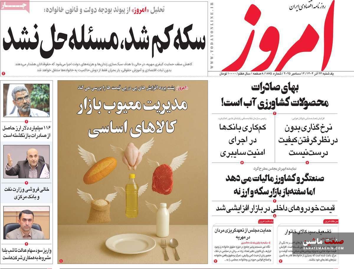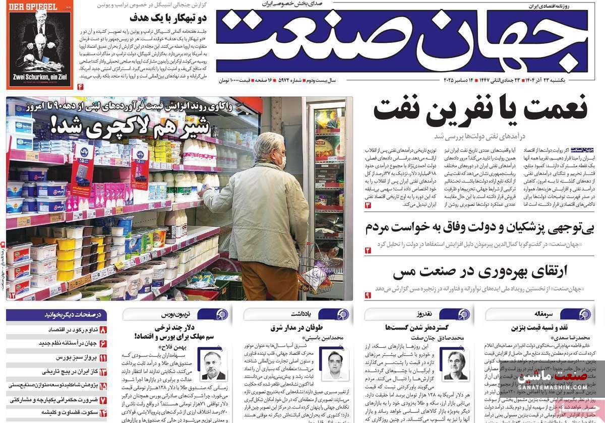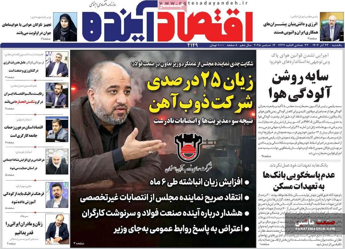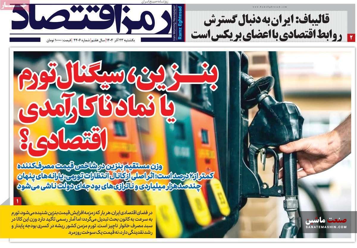به گزارش صنعت ماشین ؛ صفحه نخست روزنامه های اقتصادی 23 آذر 1404 به شرح زیر است: