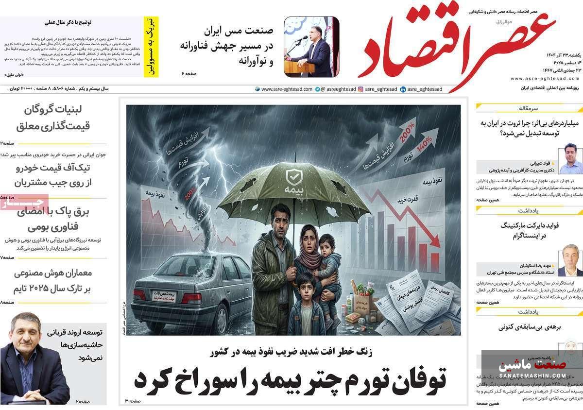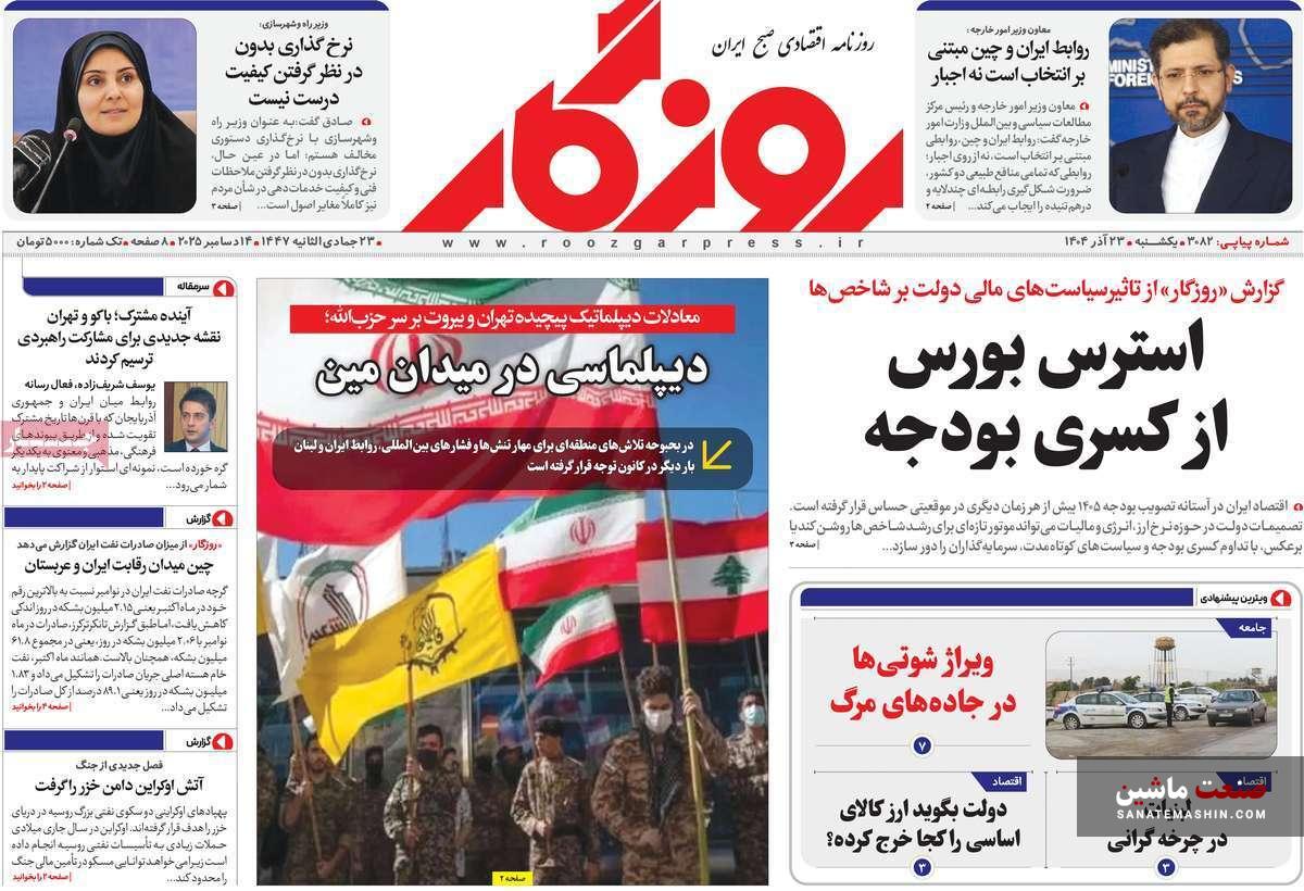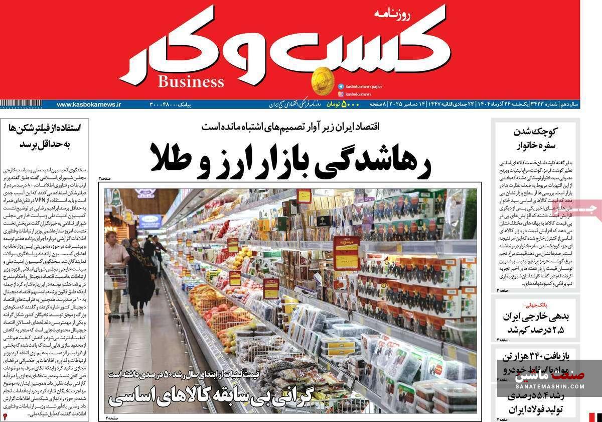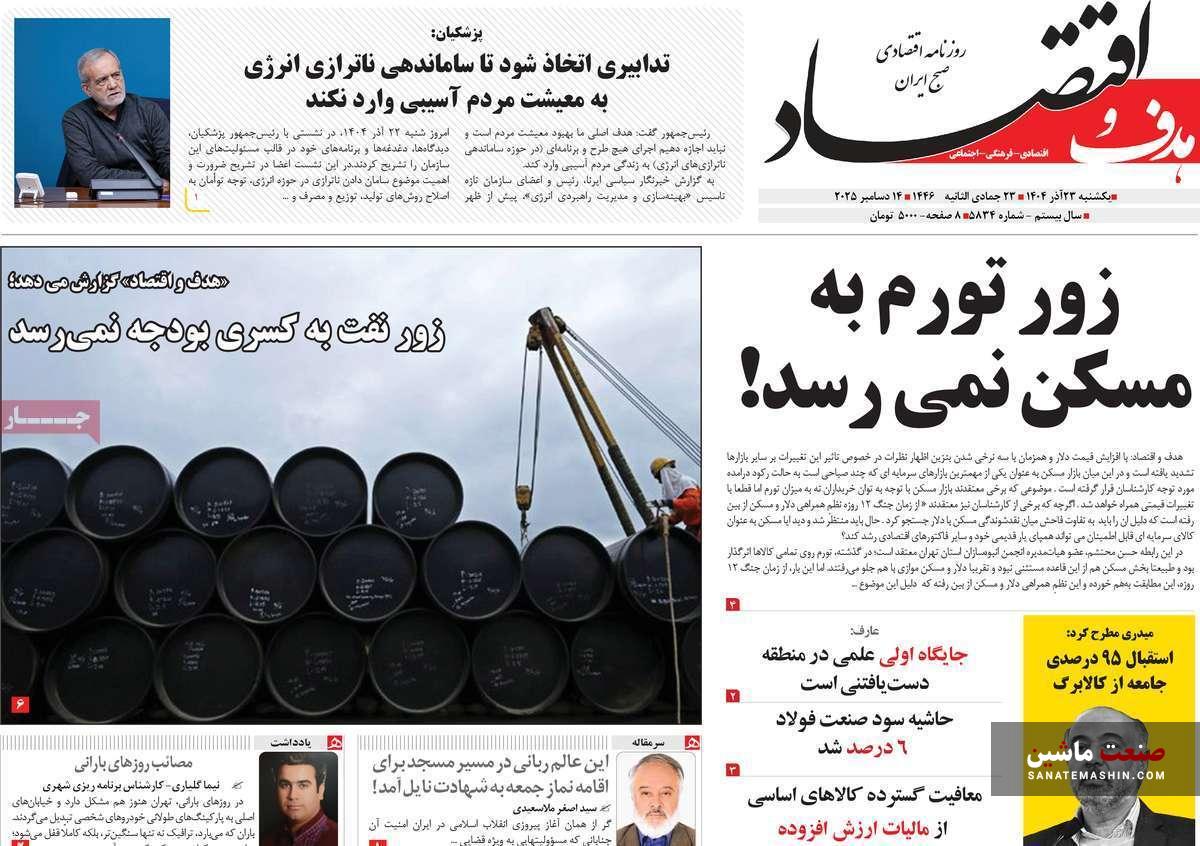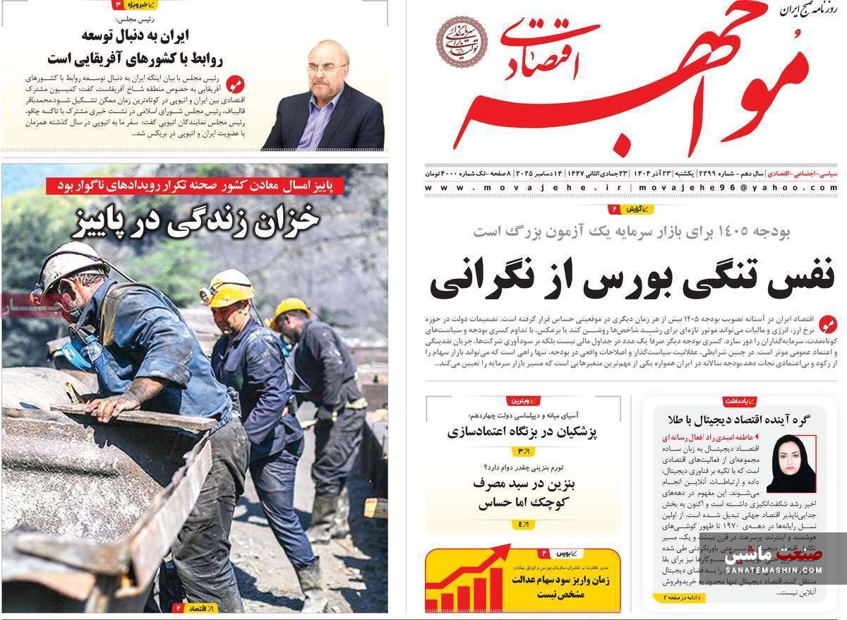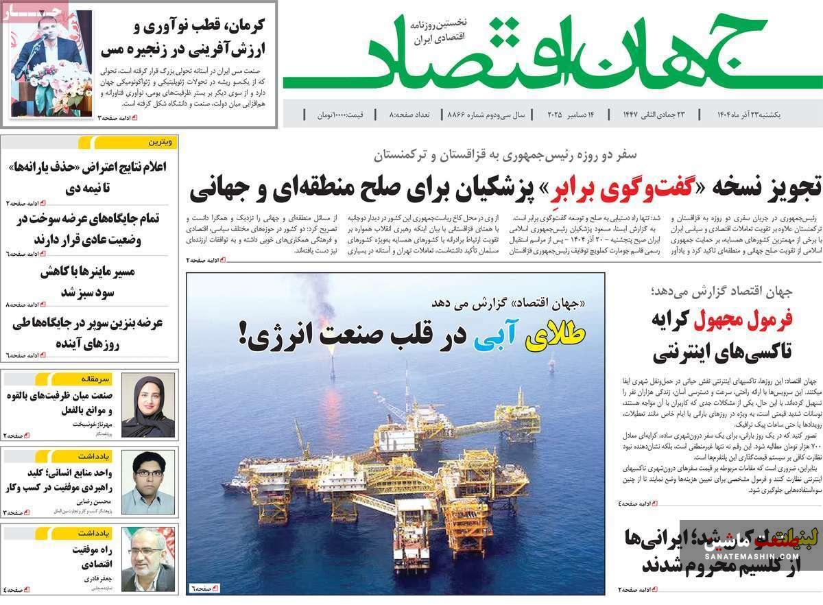 صفحه نخست روزنامه های اقتصادی 19 آذر 1404