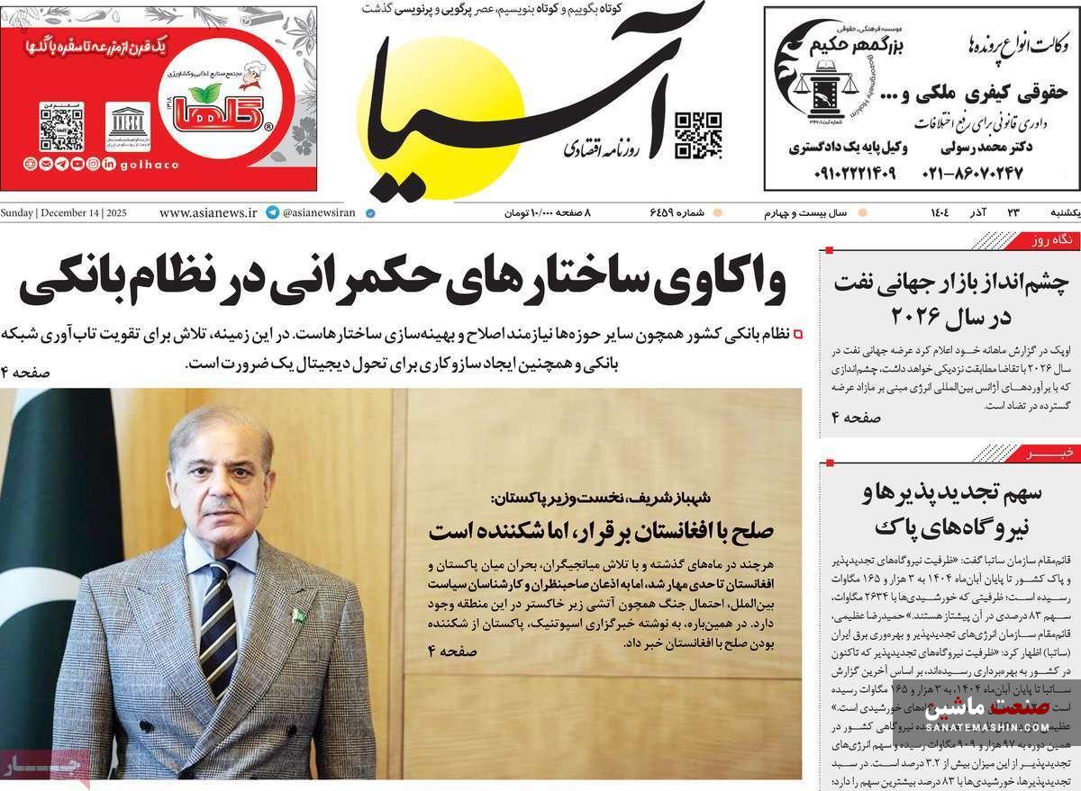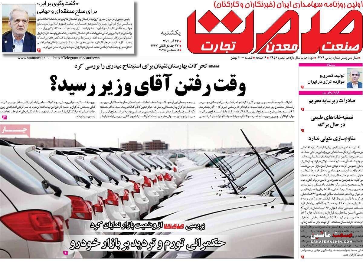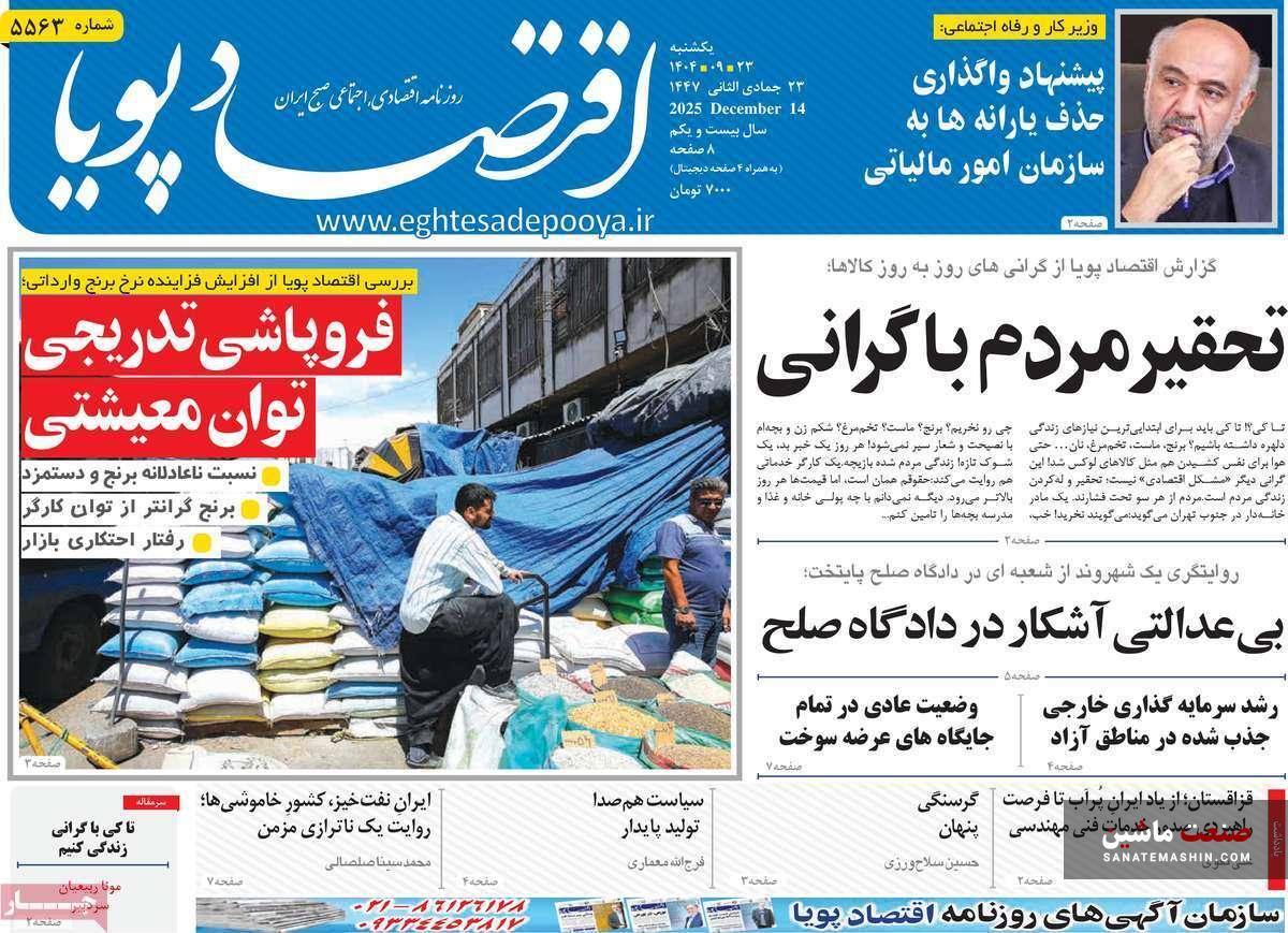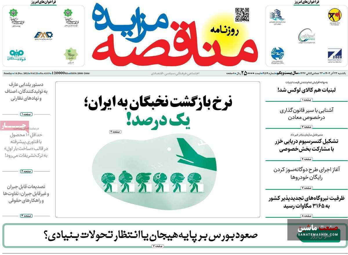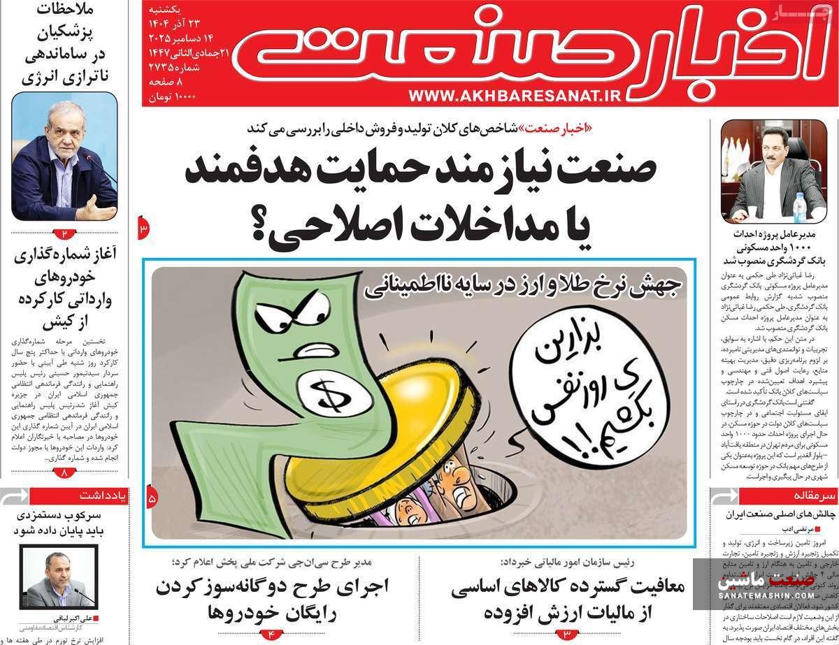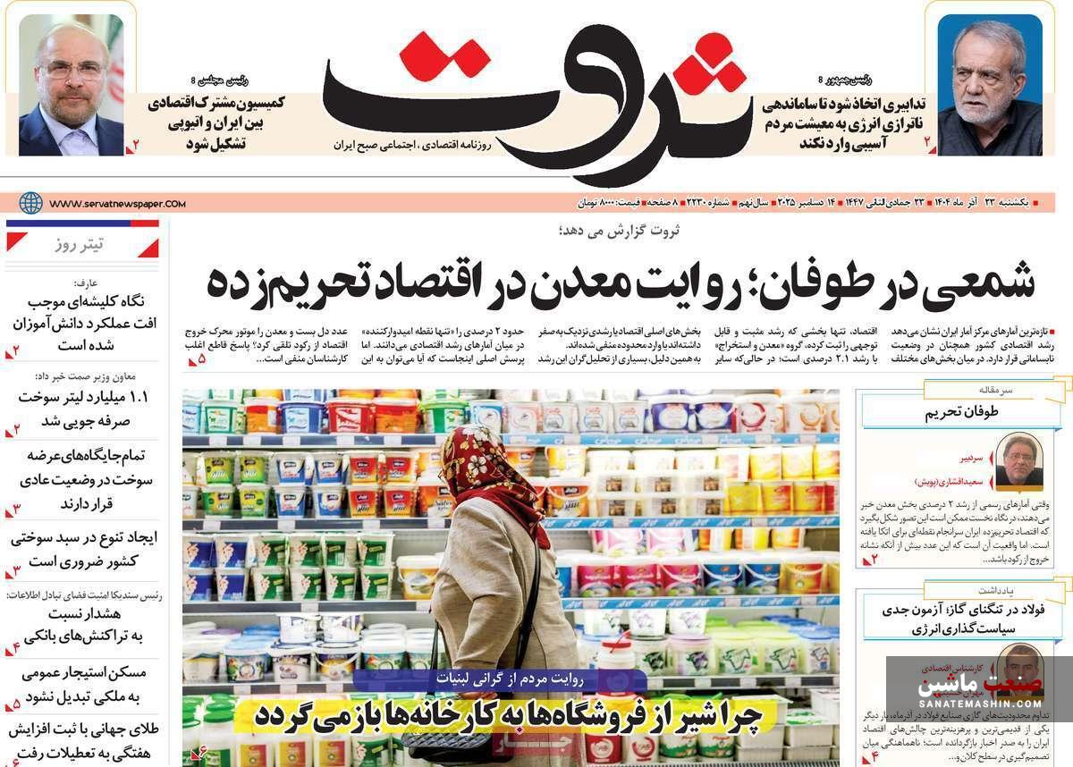 صفحه نخست روزنامه های اقتصادی 19 آذر 1404