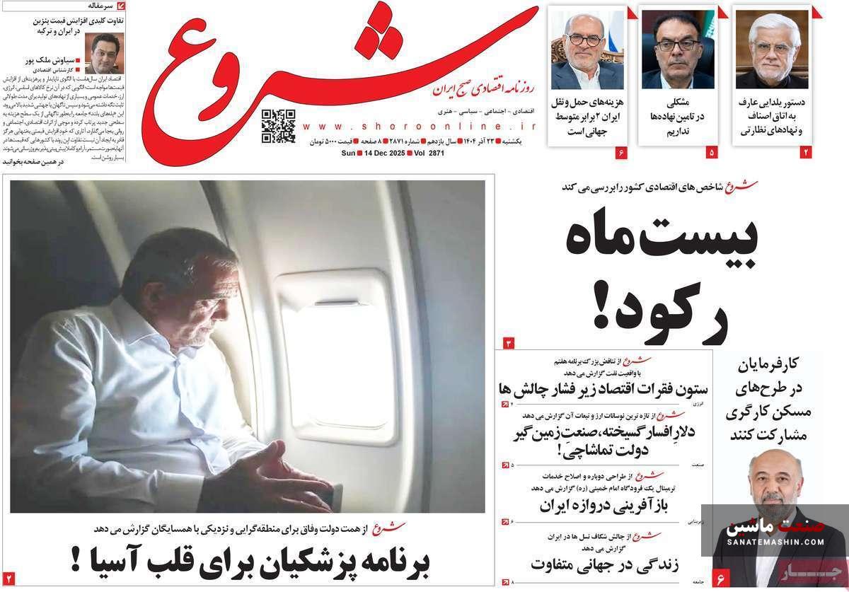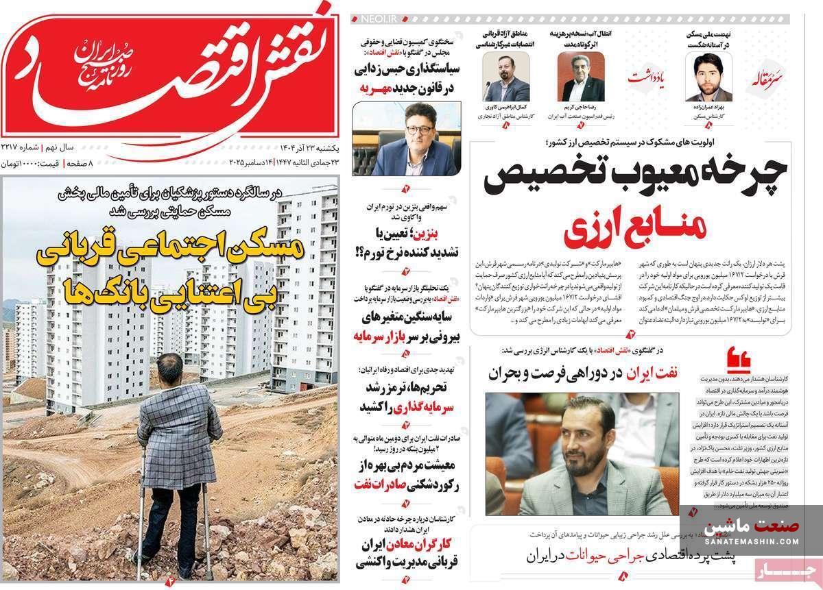 صفحه نخست روزنامه های اقتصادی 20 آذر 1404