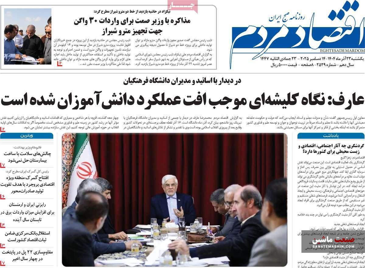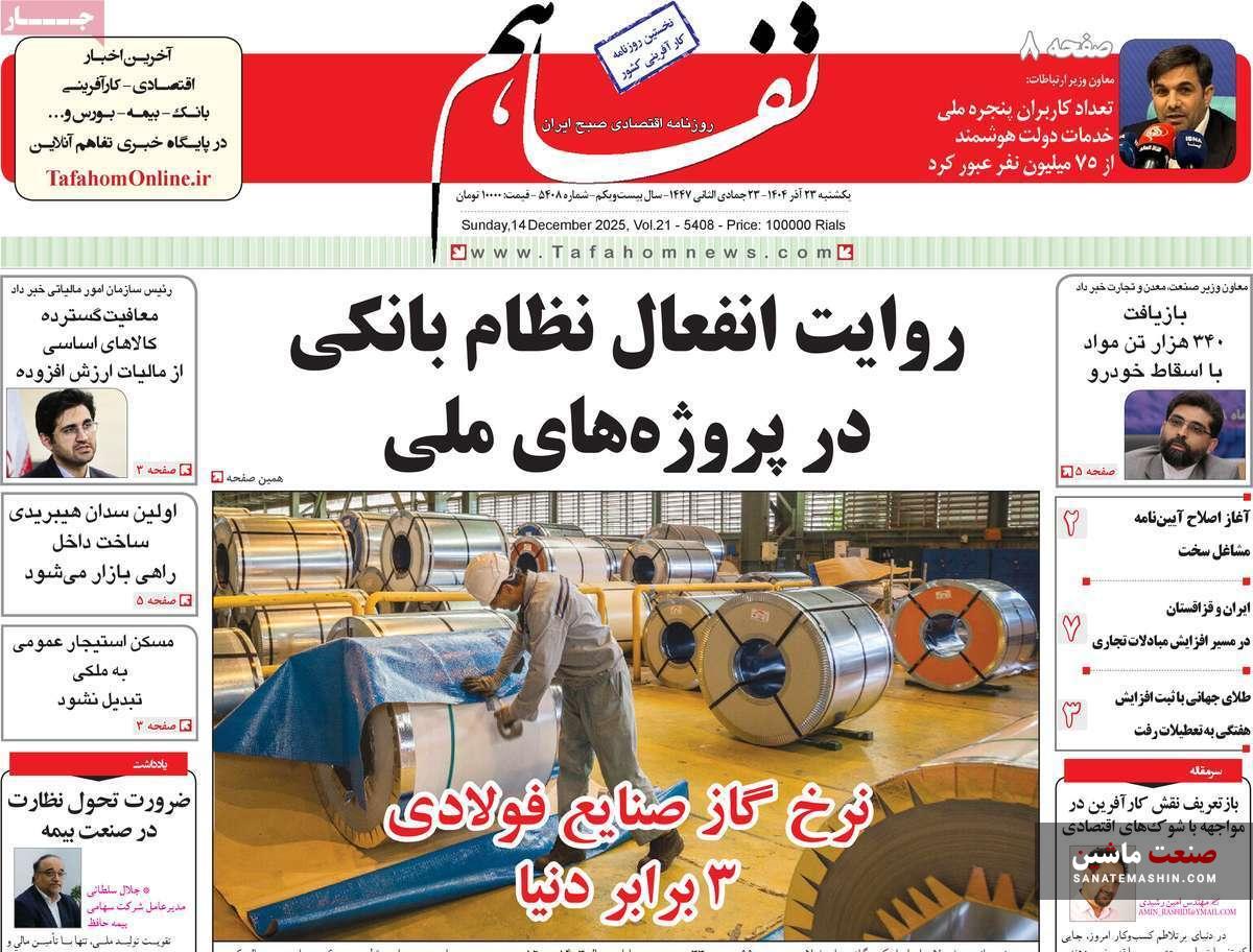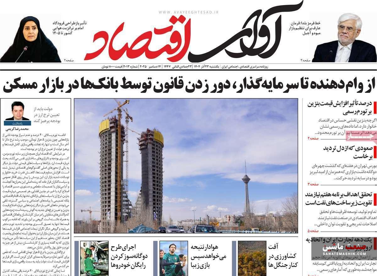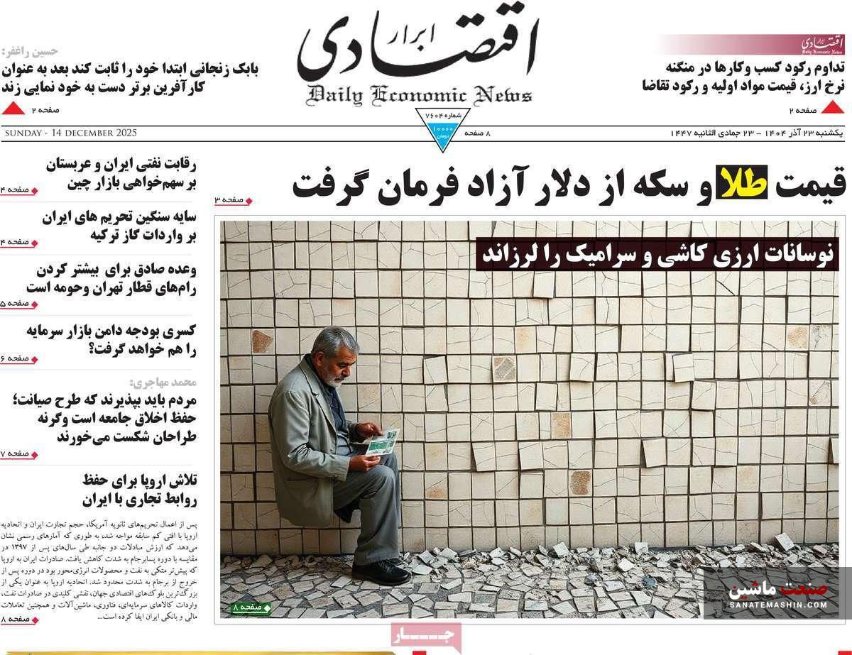 صفحه نخست روزنامه های اقتصادی 15 آذر 1404