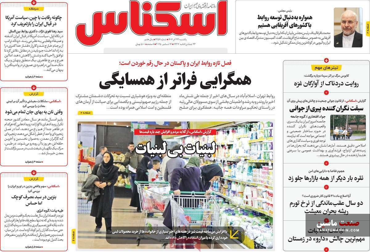 صفحه نخست روزنامه های اقتصادی 17 آذر 1404