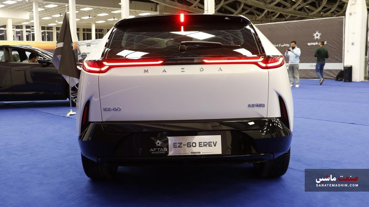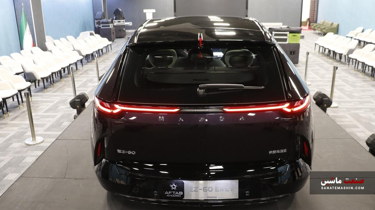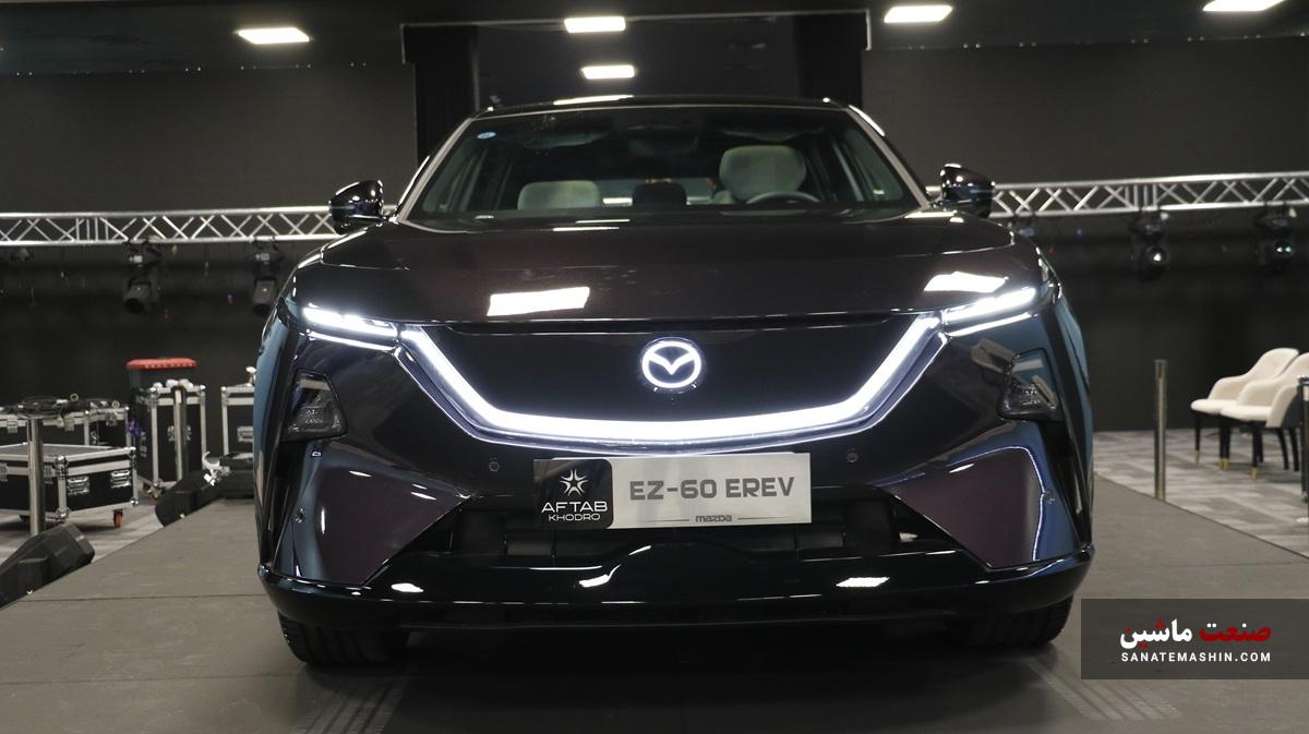 در مراسم باشکوه رونمایی از مزدا EZ-60 شاهد حضور آقای مهندس محمد کاظمی بهعنوان مدیرعامل و آقای محسن عارفی بهعنوان مدیر بازاریابی و سایر مدیران ارشد این شرکت مطرح و معتبر بودیم. پس از رونمایی از این کراسکوپه هیبریدی برد افزا یا EREV، دو دستگاه از آن به رنگهای سفید صدفی و بنفش متالیک (بادمجانی) برای بررسی بیشتر در دسترس اصحاب رسانه قرار گرفت.