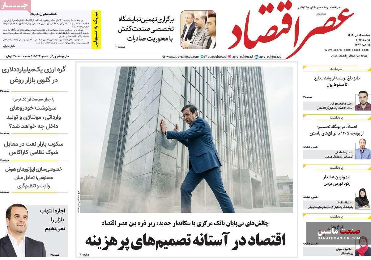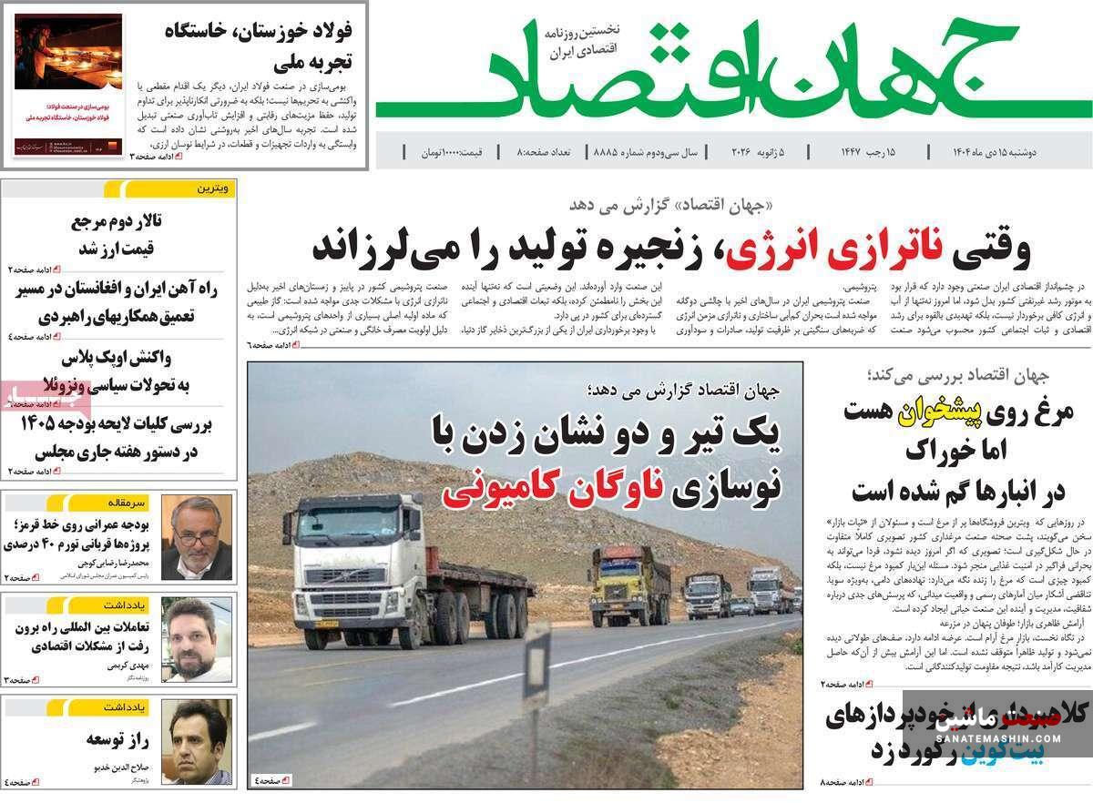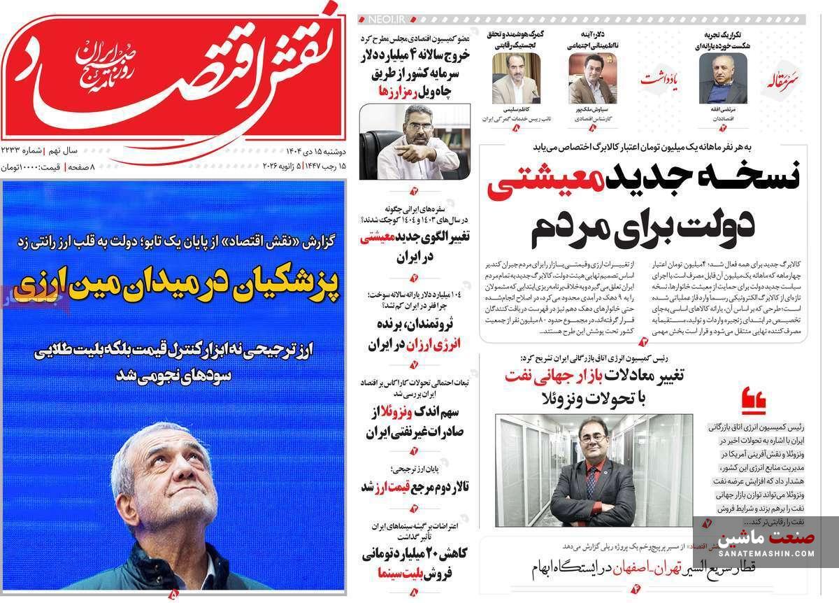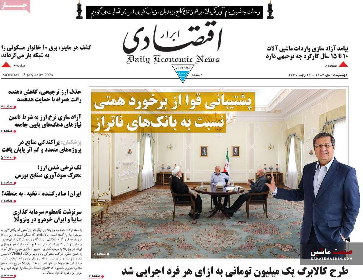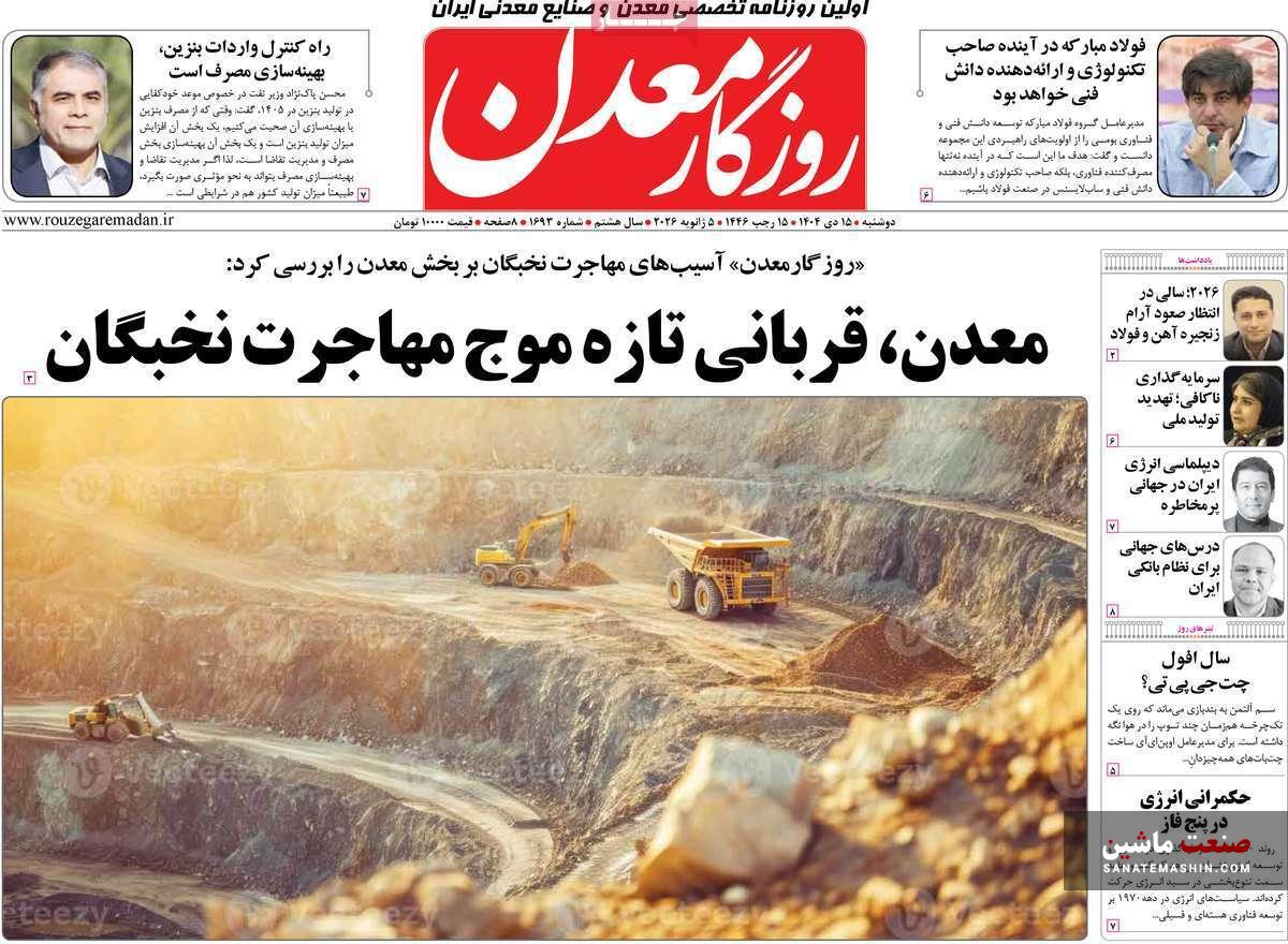 به گزارش صنعت ماشین ؛ صفحه نخست روزنامه های اقتصادی 15 دی 1404 به شرح زیر است:
