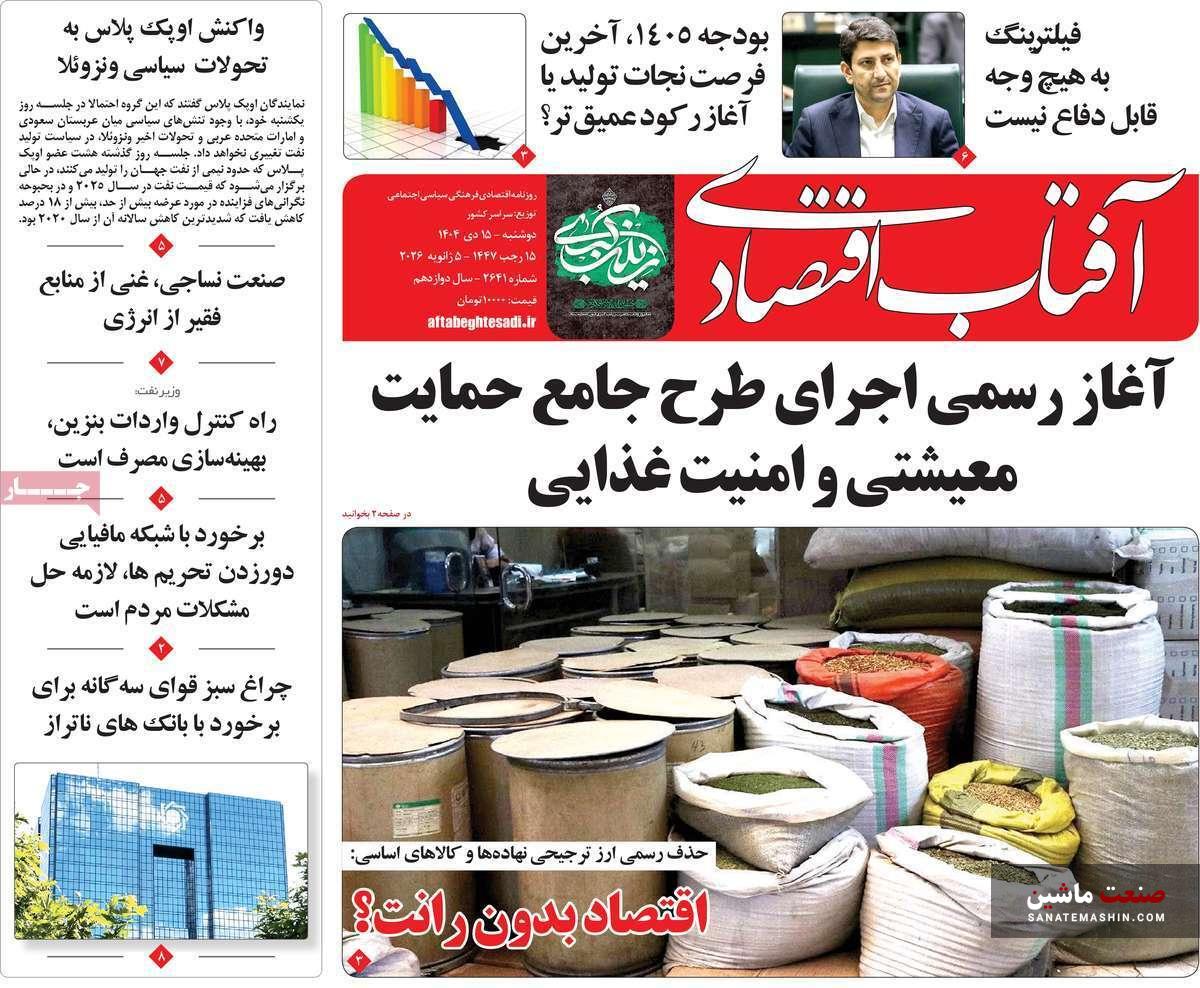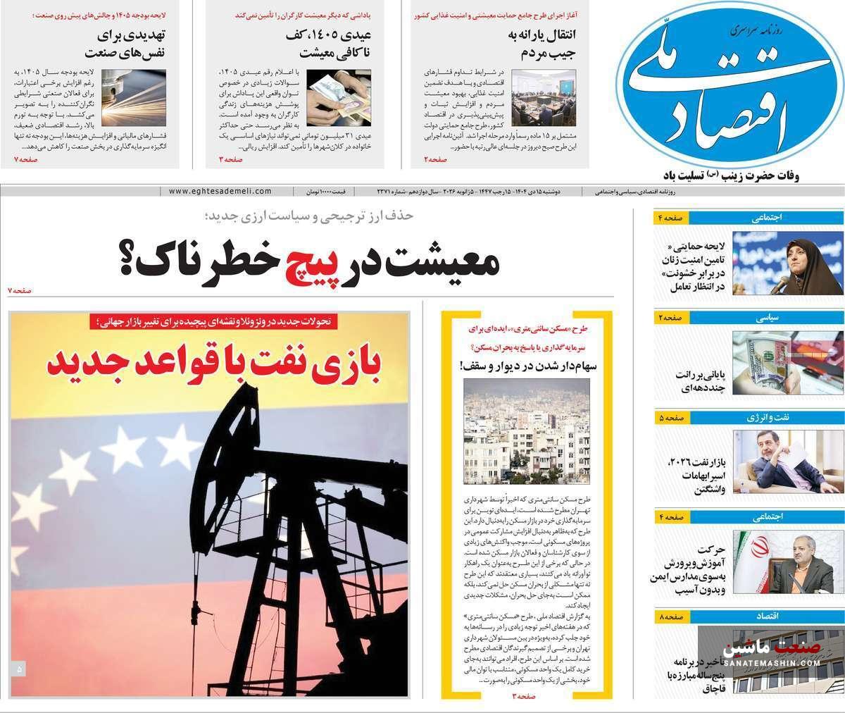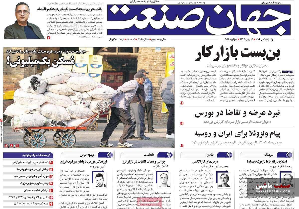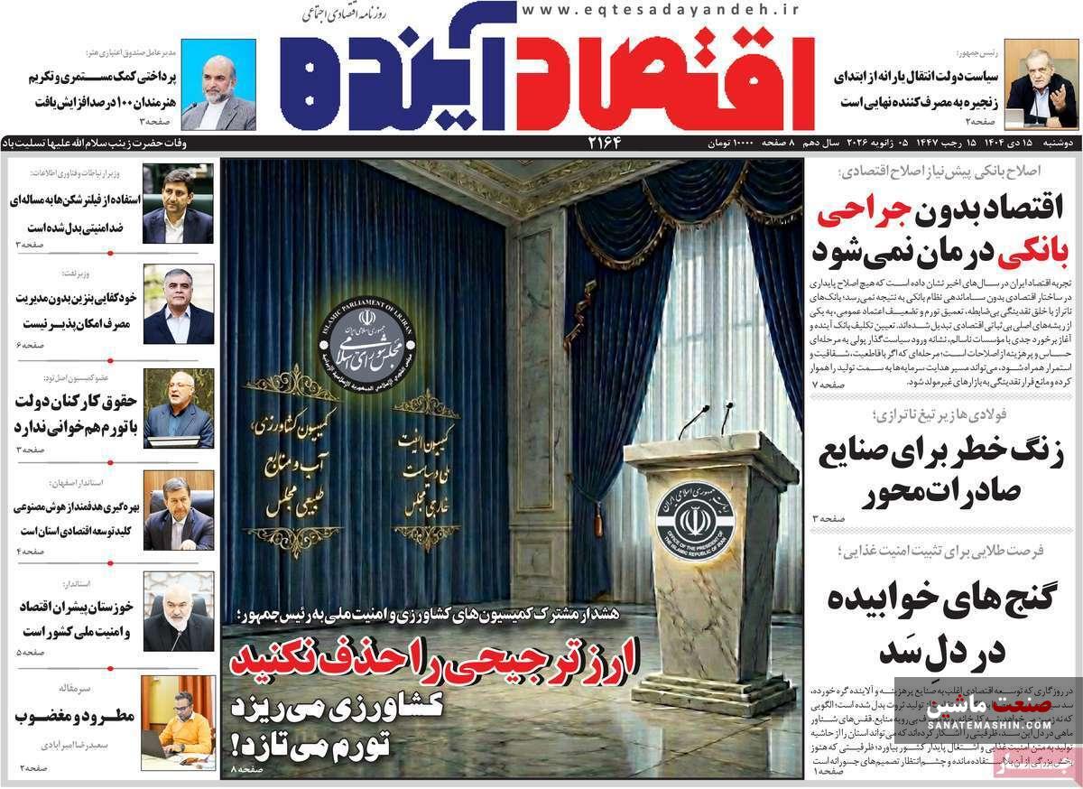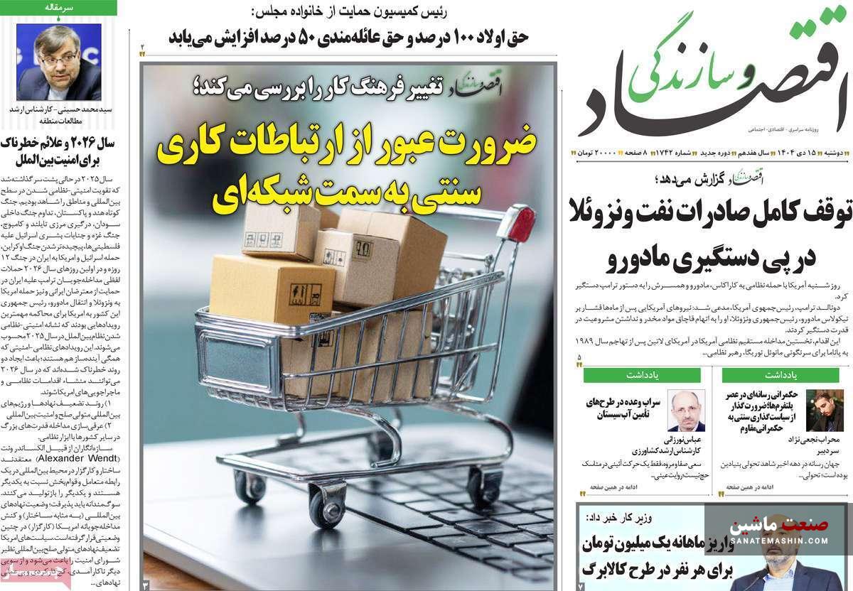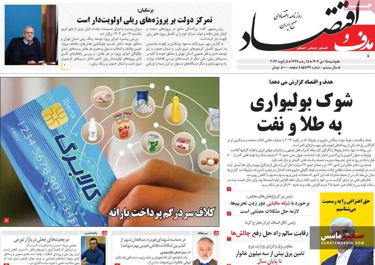 به گزارش صنعت ماشین ؛ صفحه نخست روزنامه های اقتصادی 15 دی 1404 به شرح زیر است: