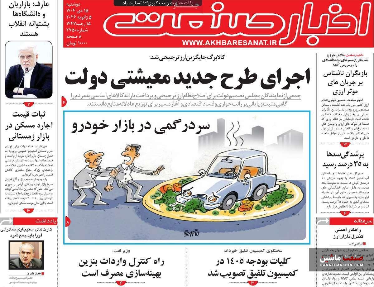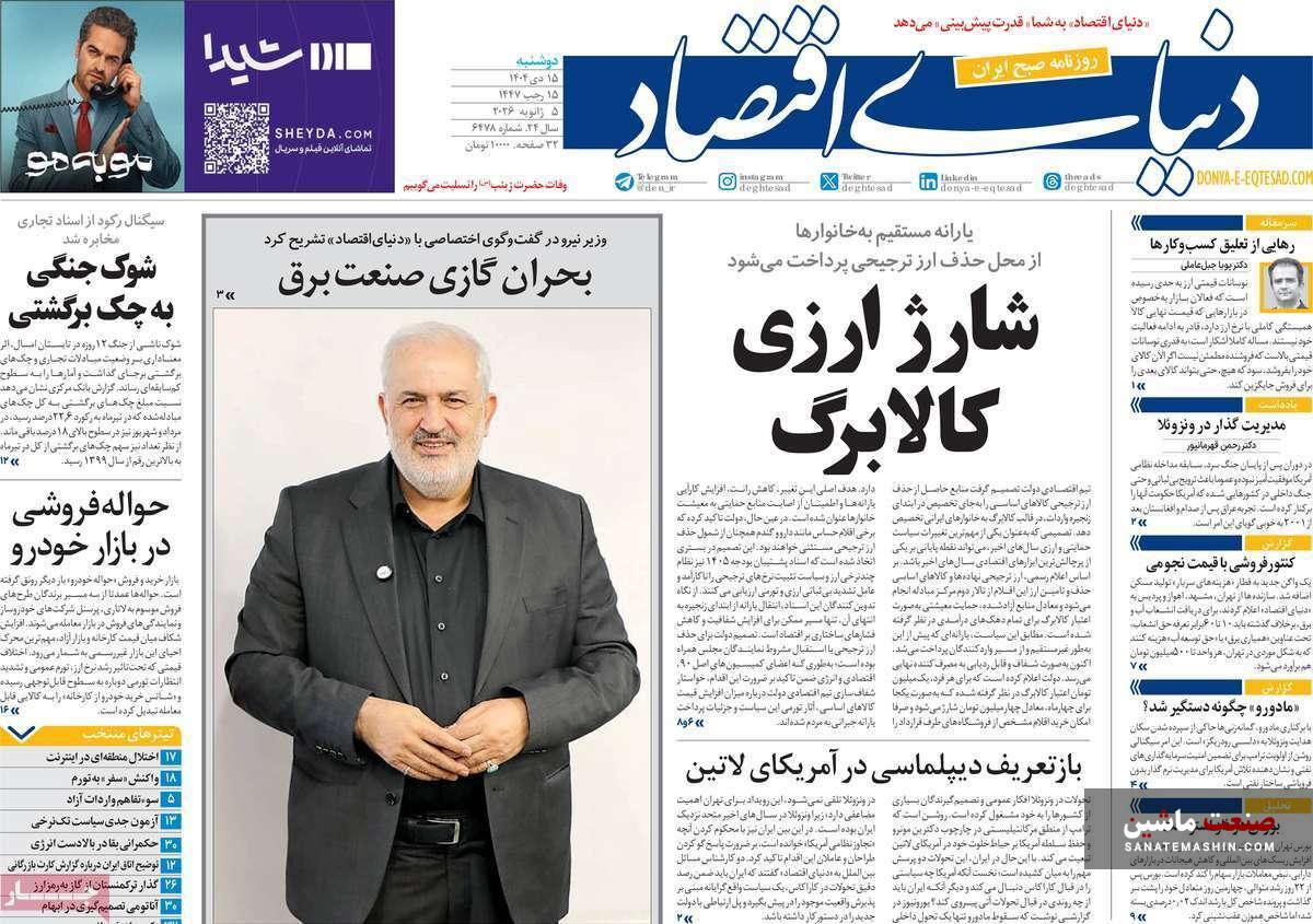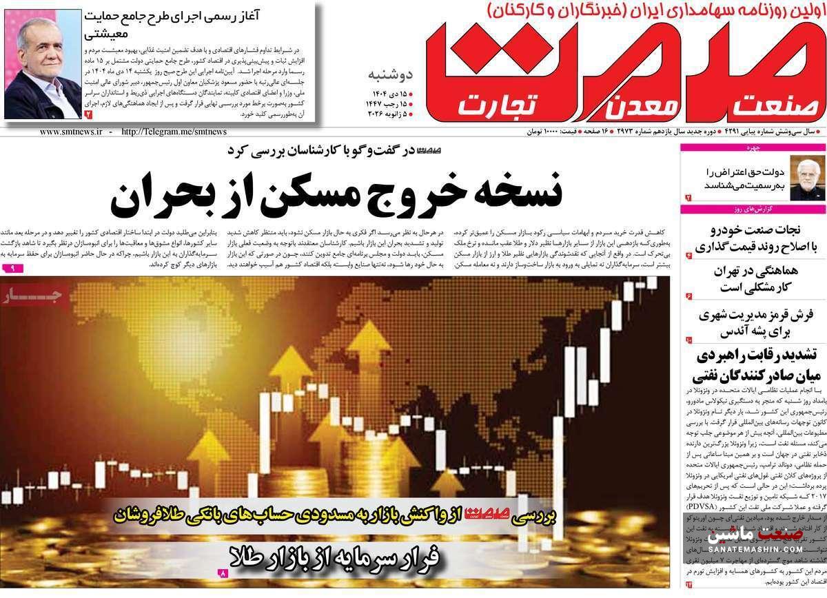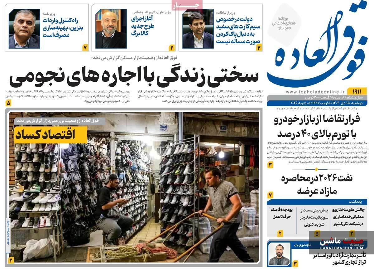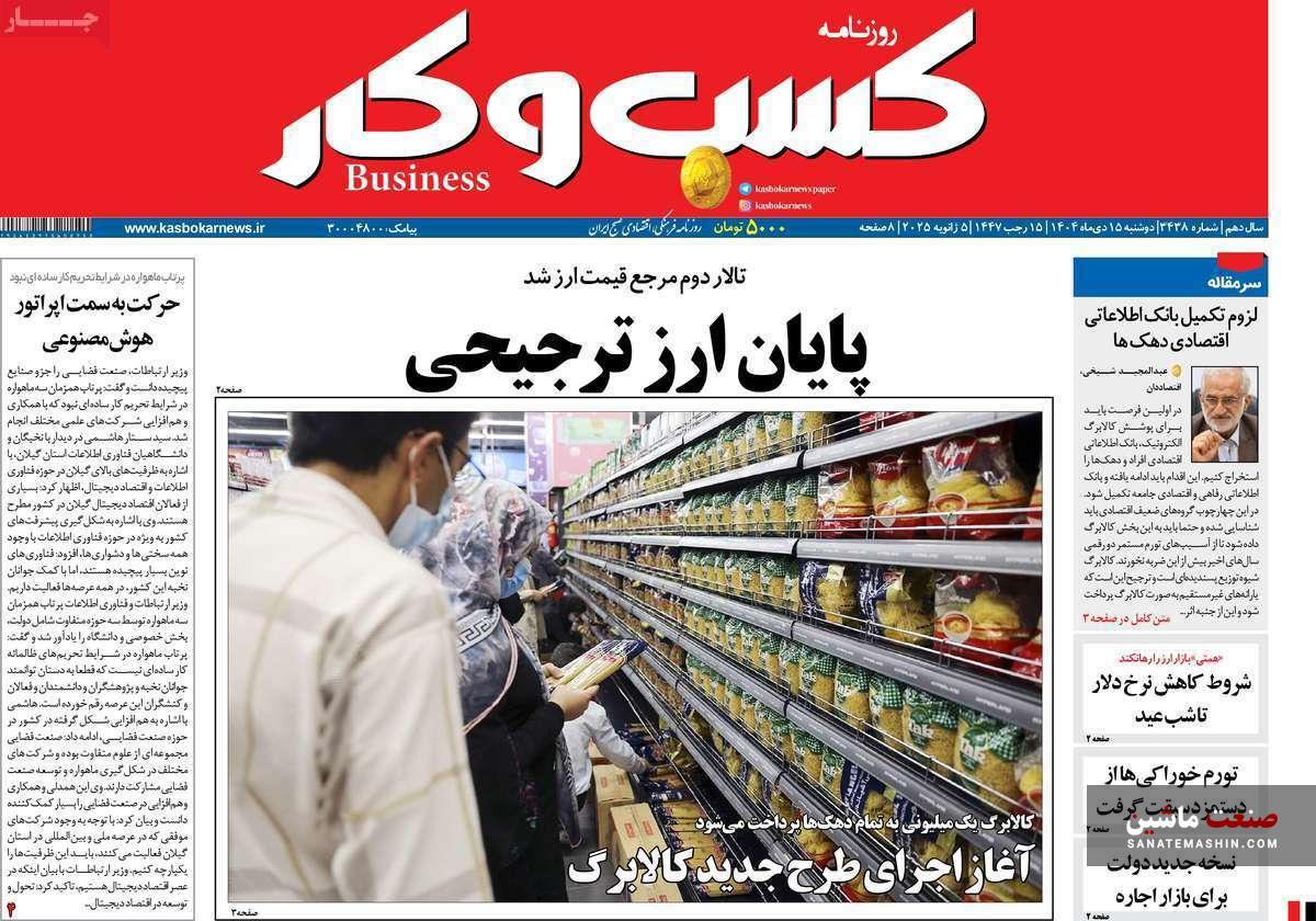 به گزارش صنعت ماشین ؛ صفحه نخست روزنامه های اقتصادی 15 دی 1404 به شرح زیر است: