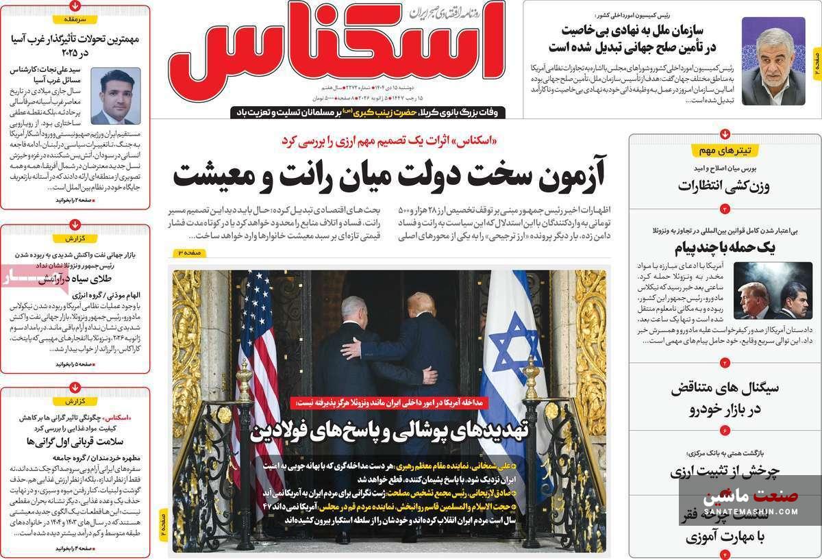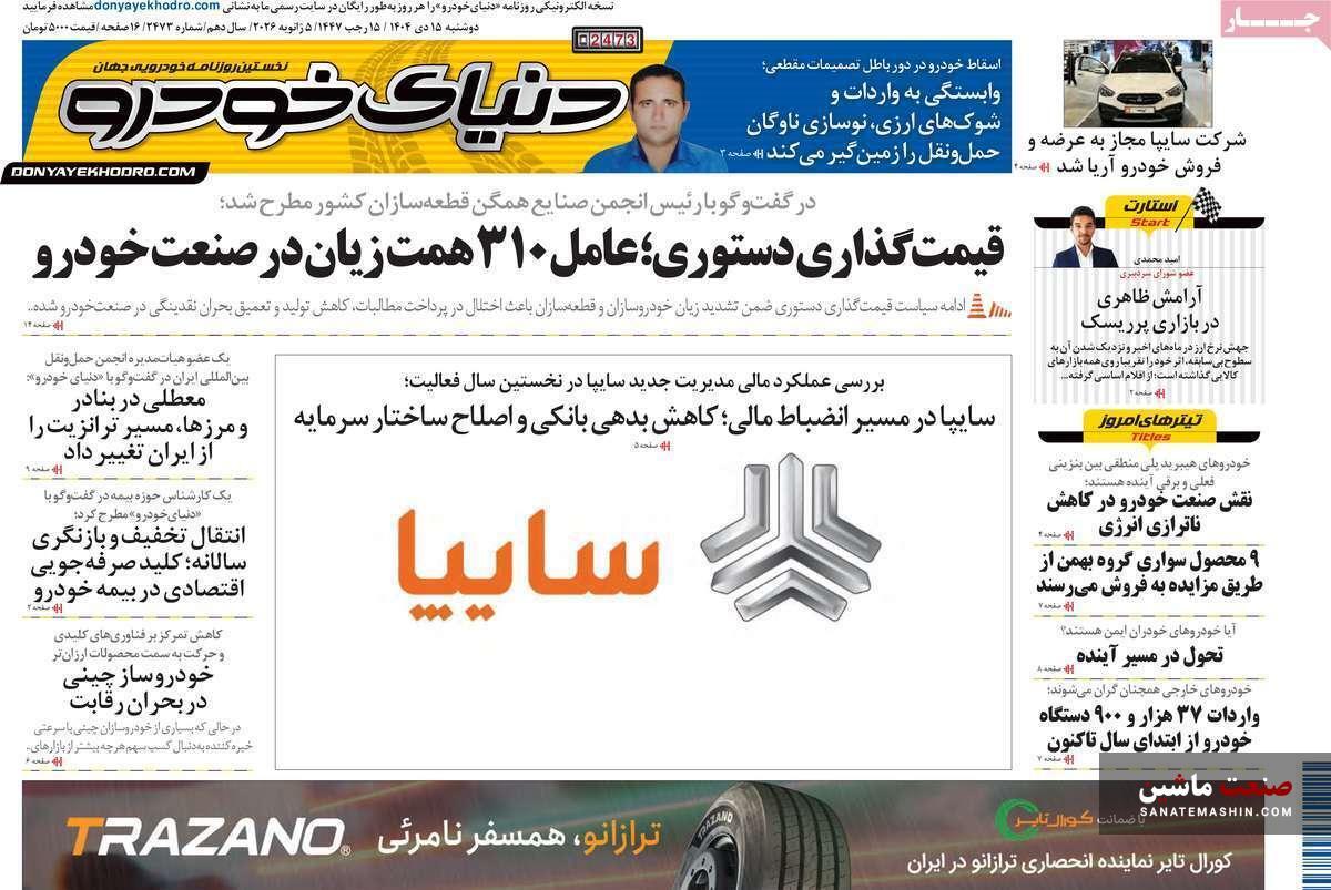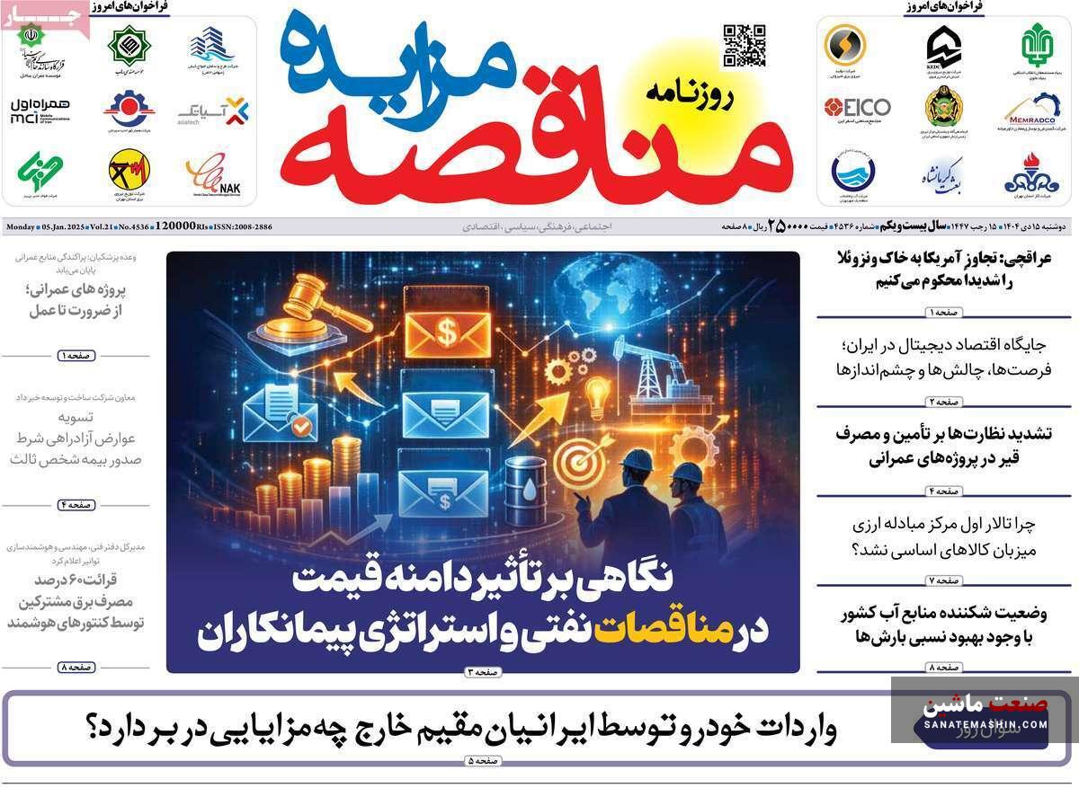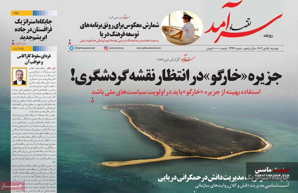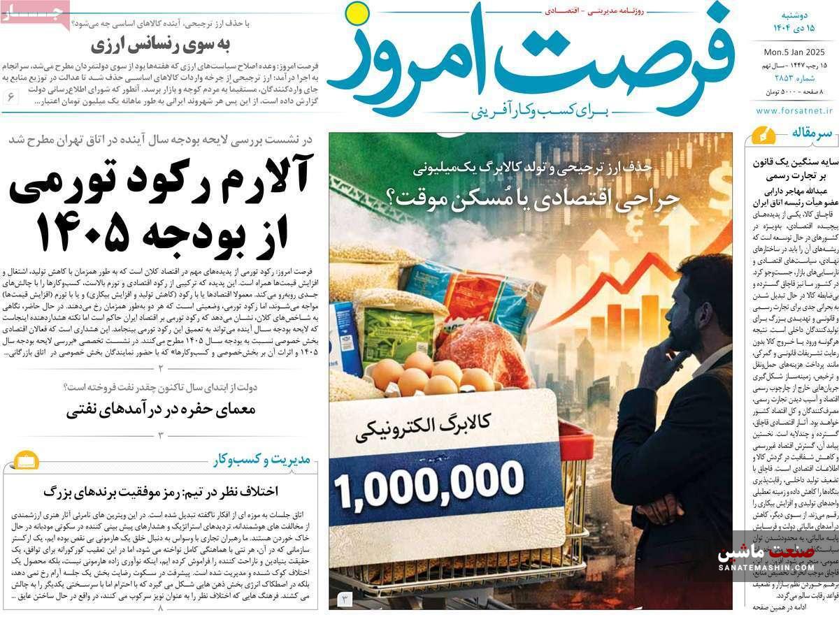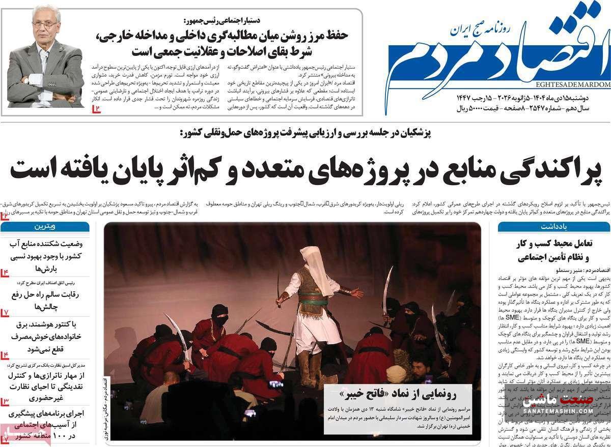 به گزارش صنعت ماشین ؛ صفحه نخست روزنامه های اقتصادی 15 دی 1404 به شرح زیر است:
