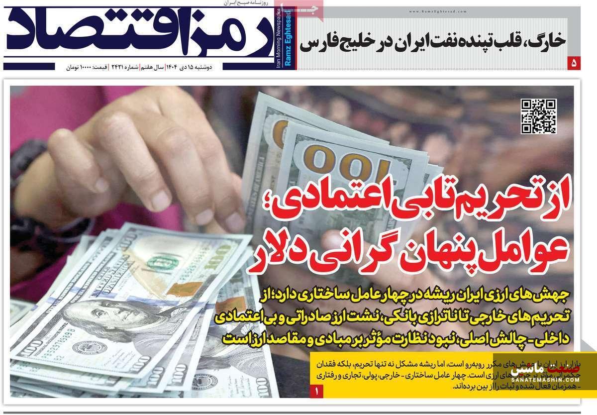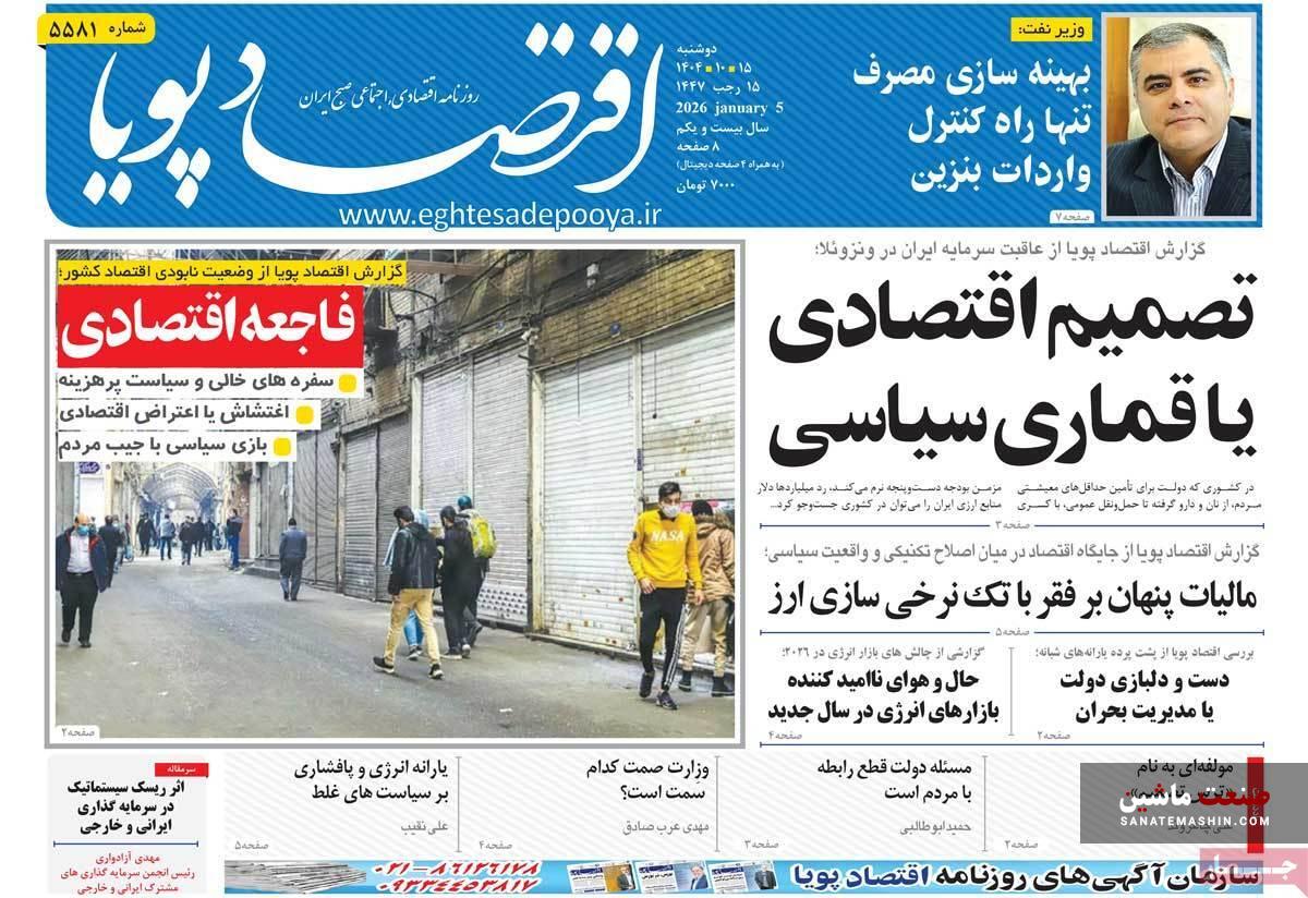 صفحه نخست روزنامه های اقتصادی 16 دی 1404