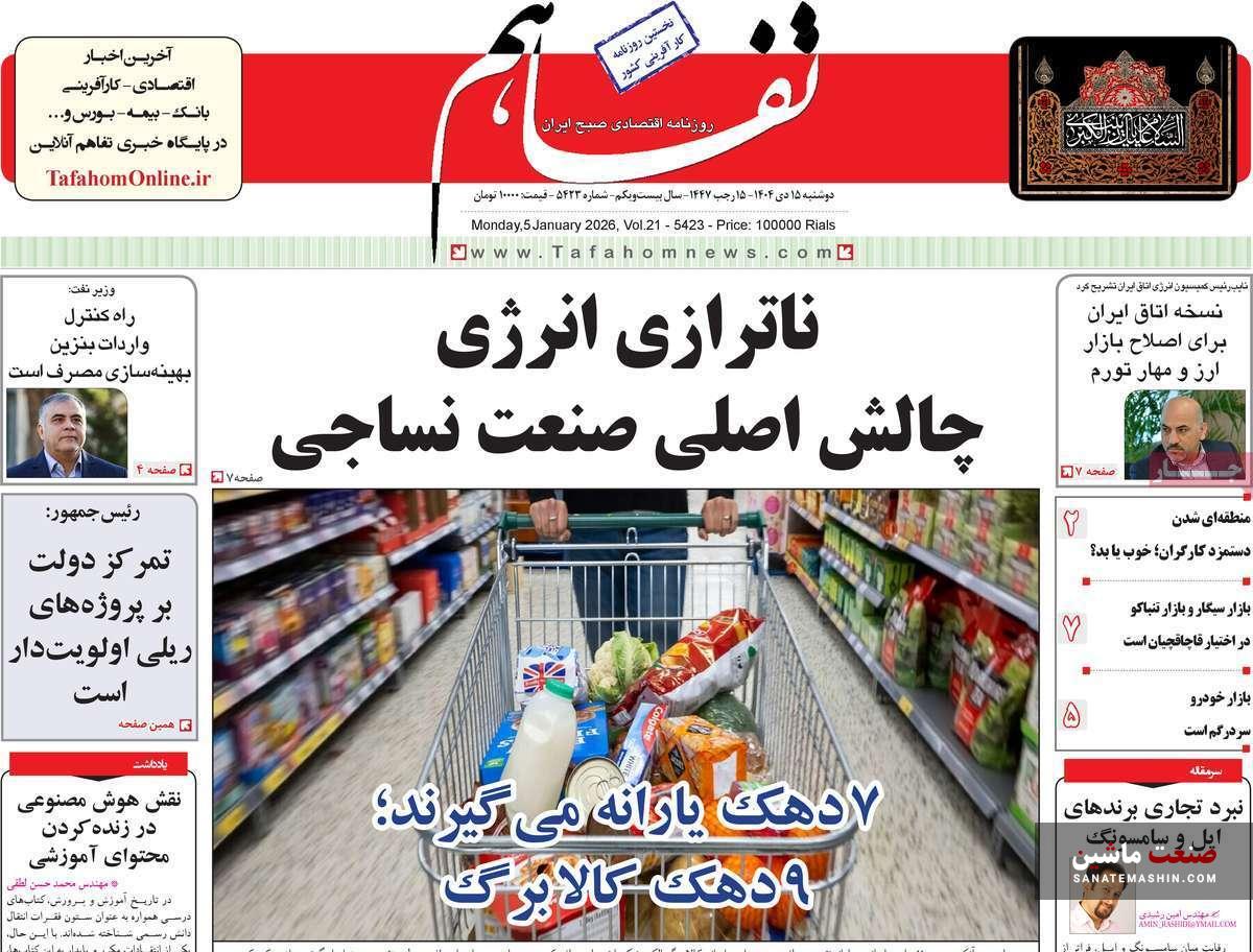 صفحه نخست روزنامه های اقتصادی 9 دی 1404