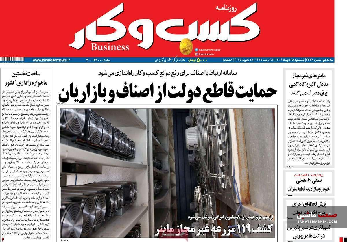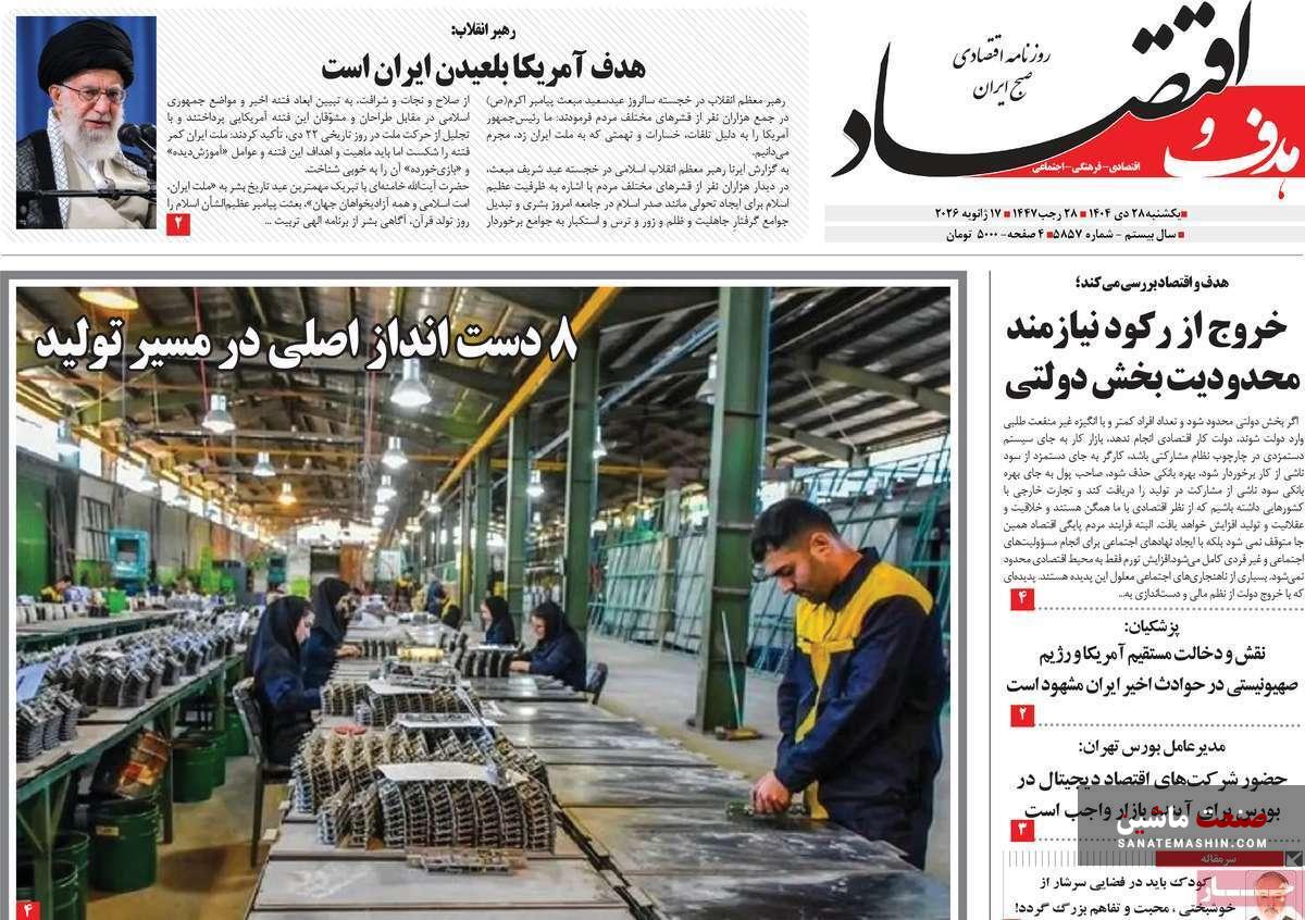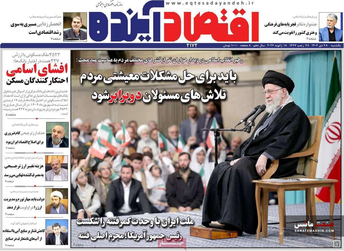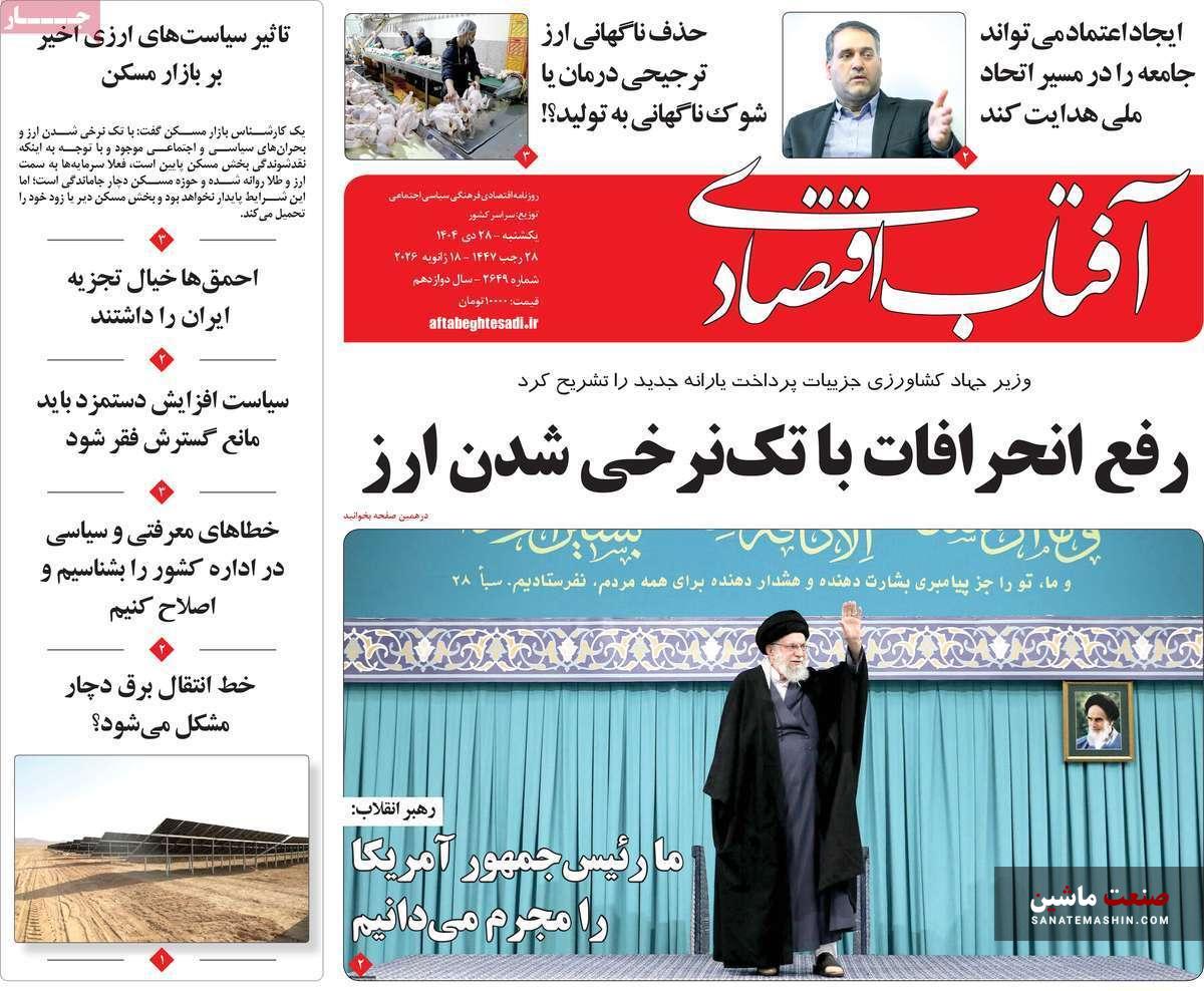 به گزارش صنعت ماشین ؛ صفحه نخست روزنامه های اقتصادی 28 دی 1404 به شرح زیر است:
