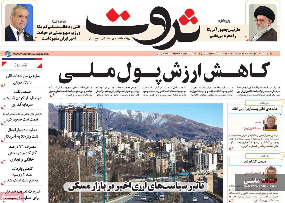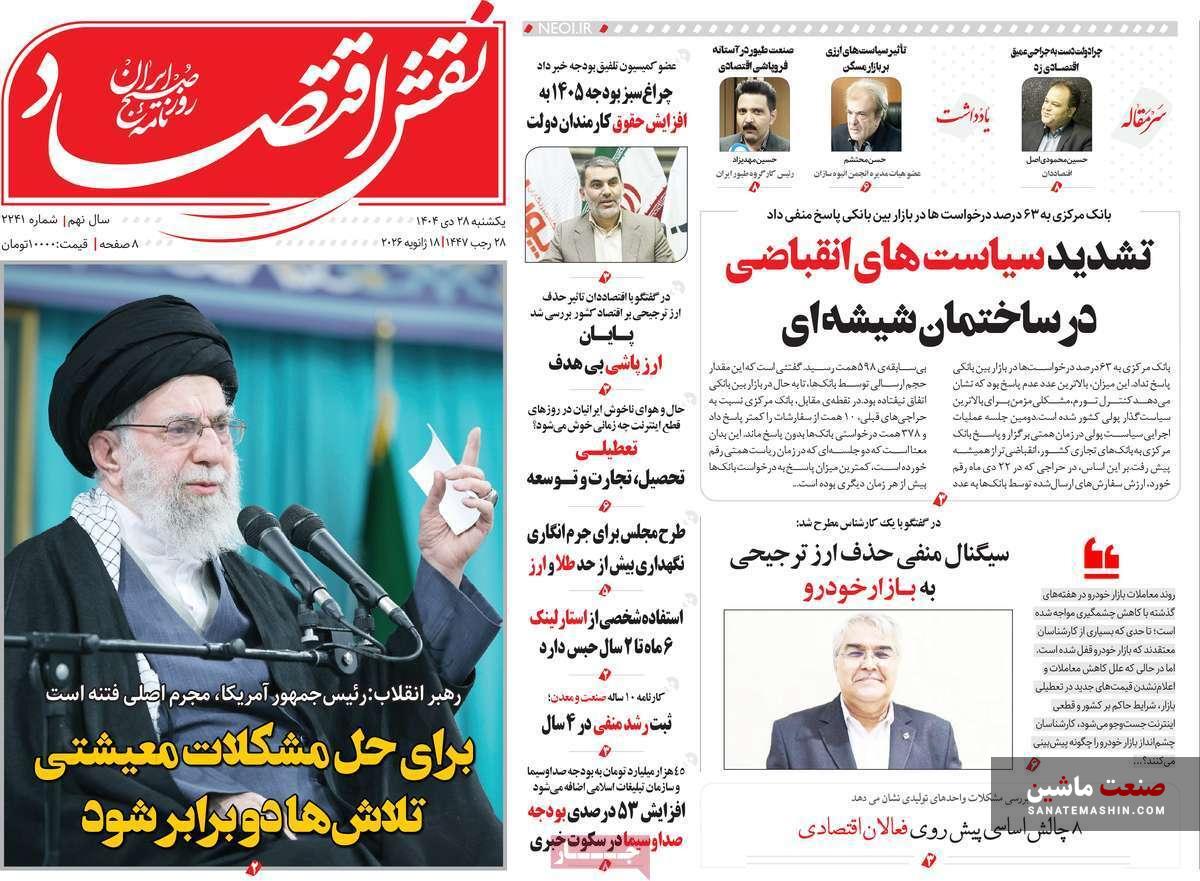 صفحه نخست روزنامه های اقتصادی 29 دی 1404