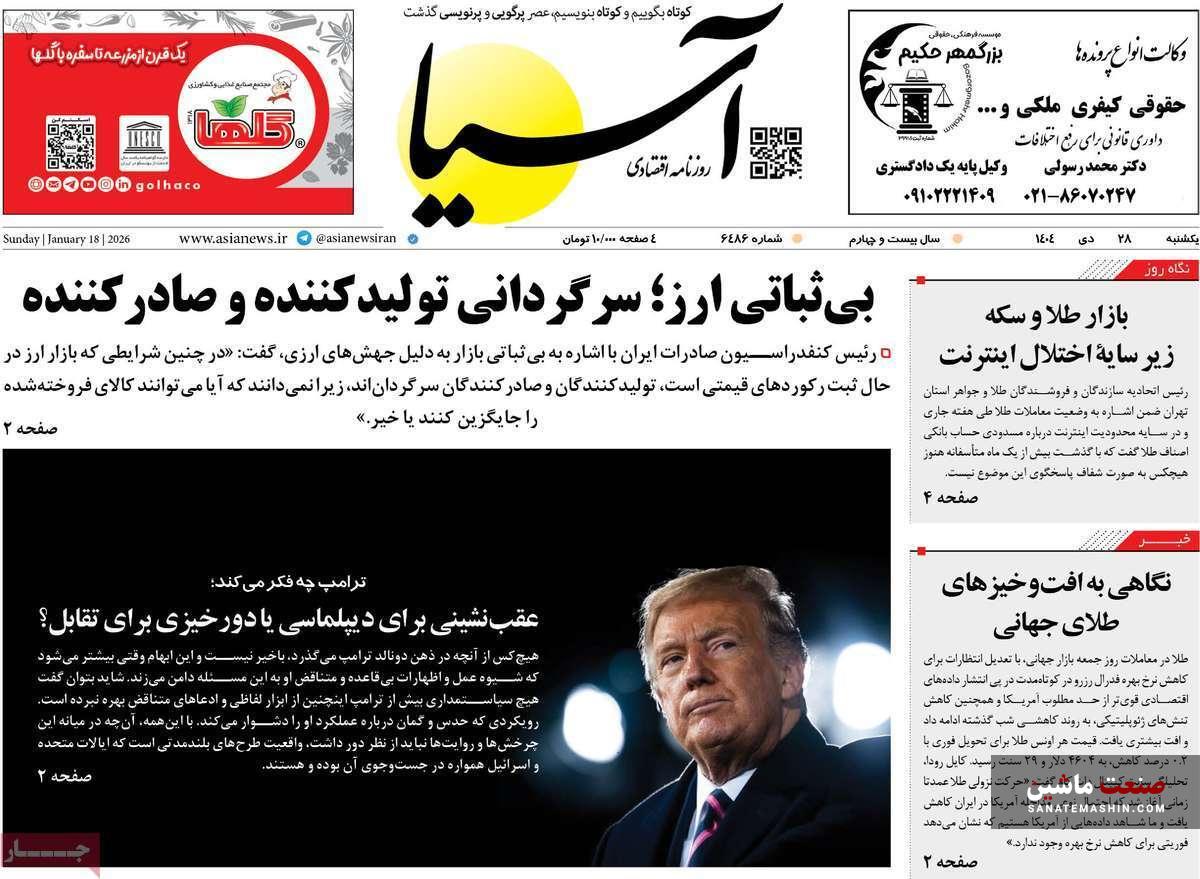 صفحه نخست روزنامه های اقتصادی 6 بهمن 1404