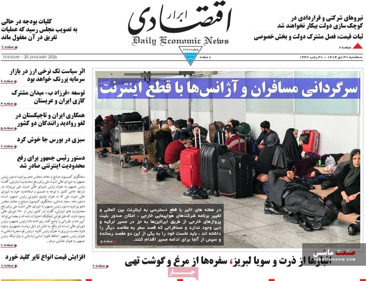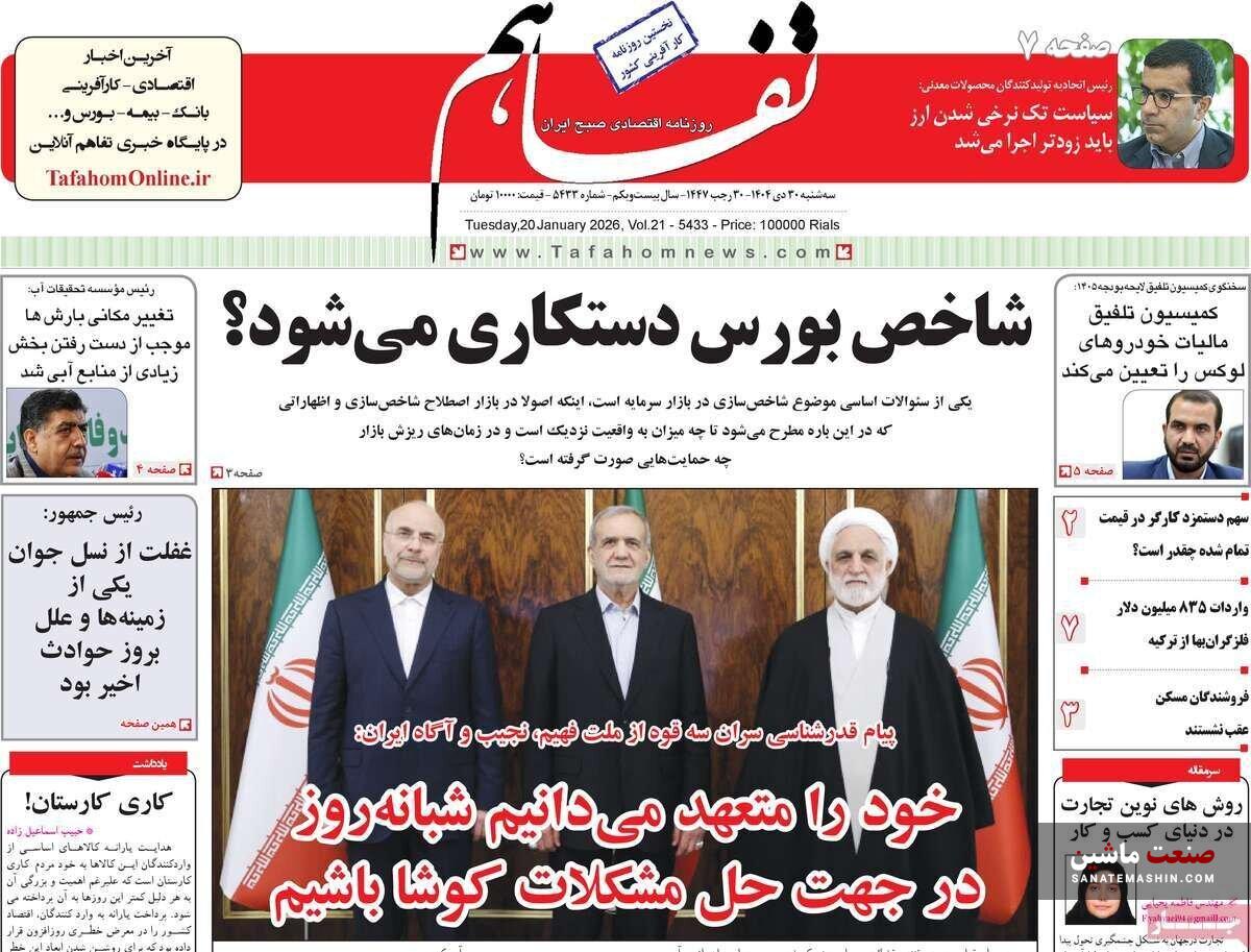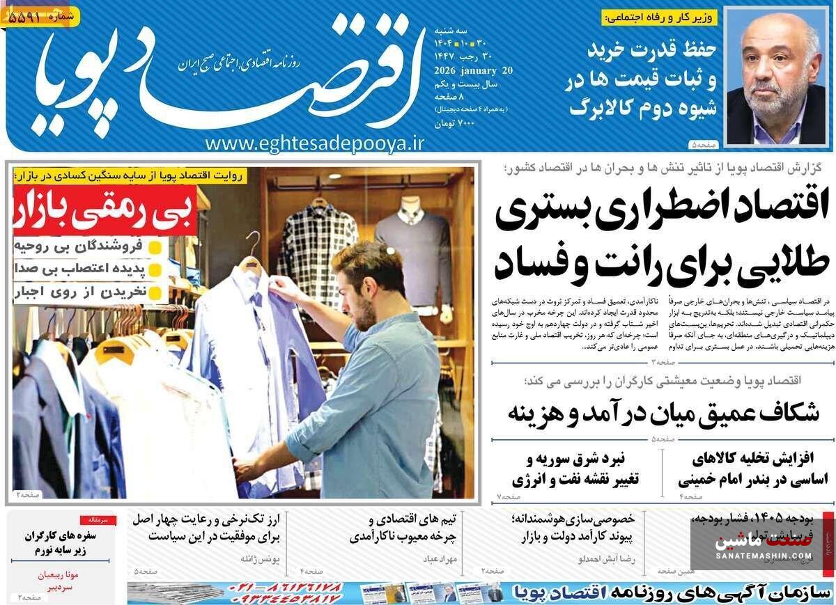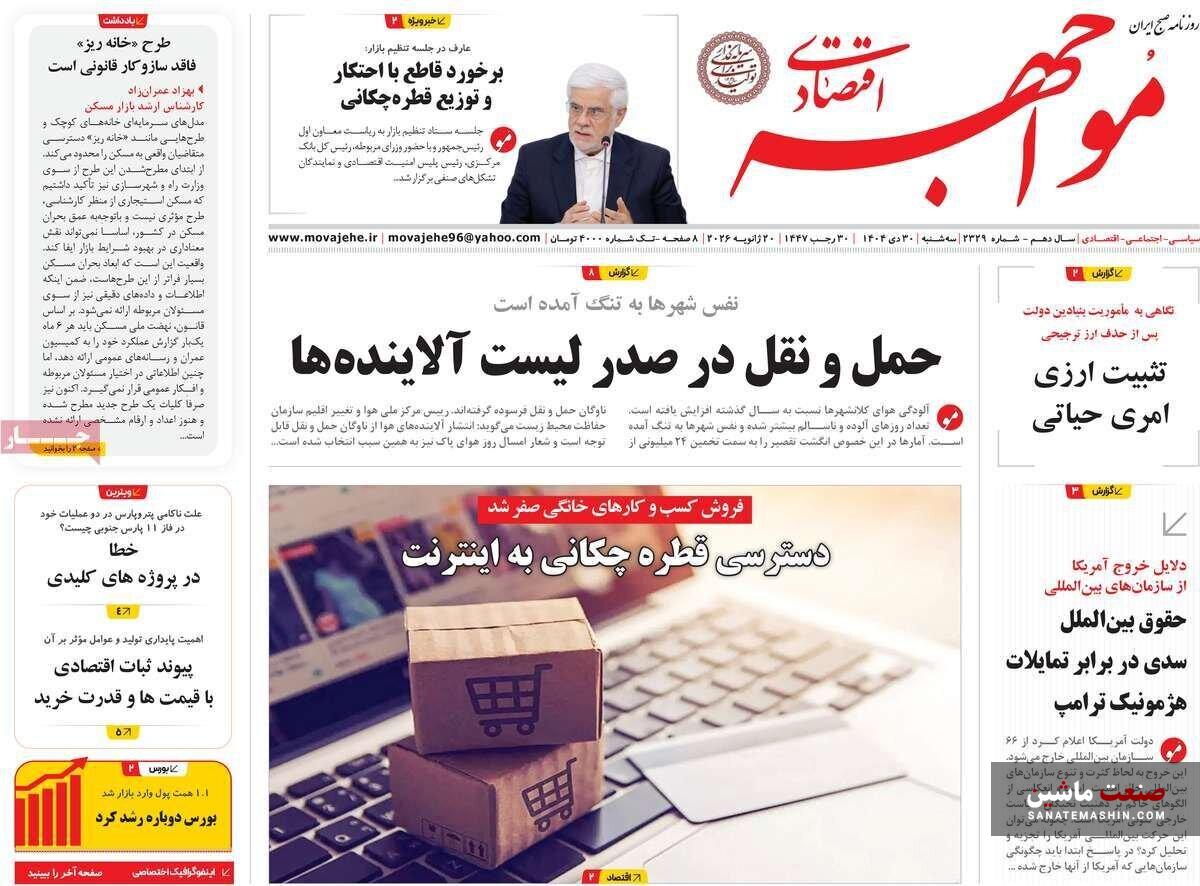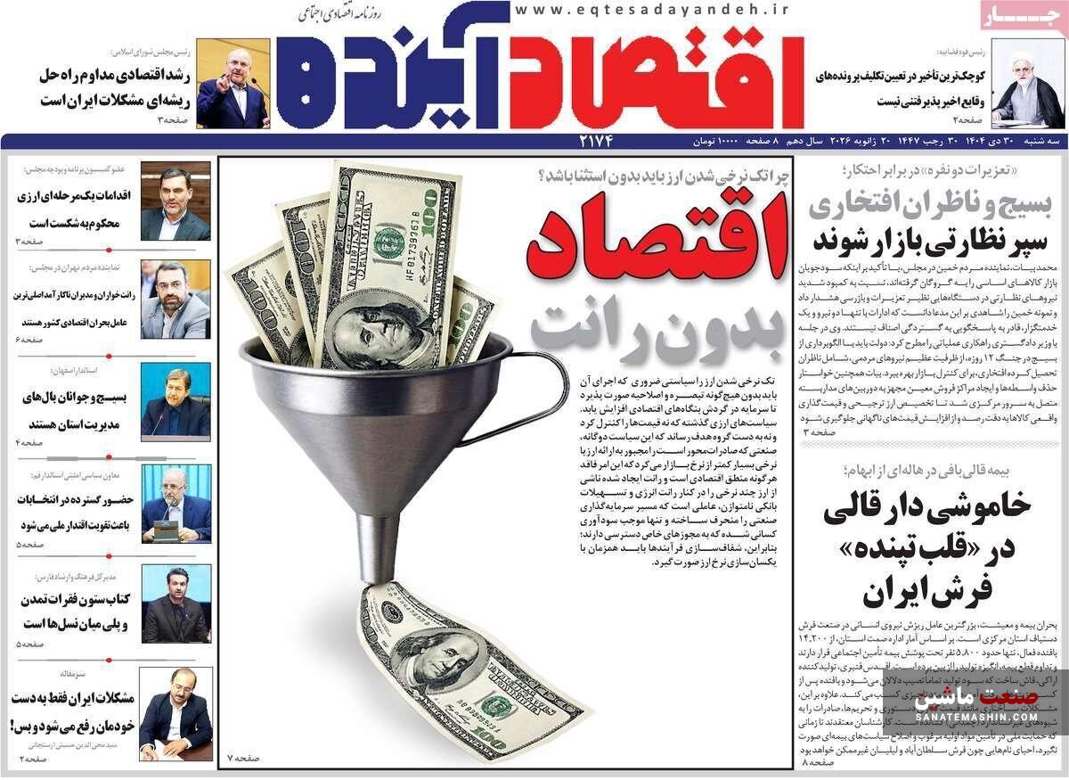 به گزارش صنعت ماشین ؛ صفحه نخست روزنامه های اقتصادی 30 دی 1404 به شرح زیر است: