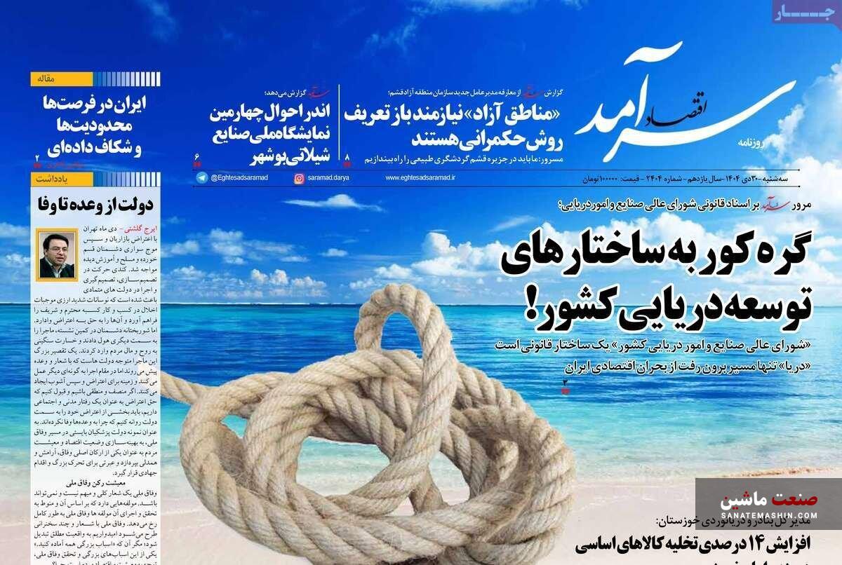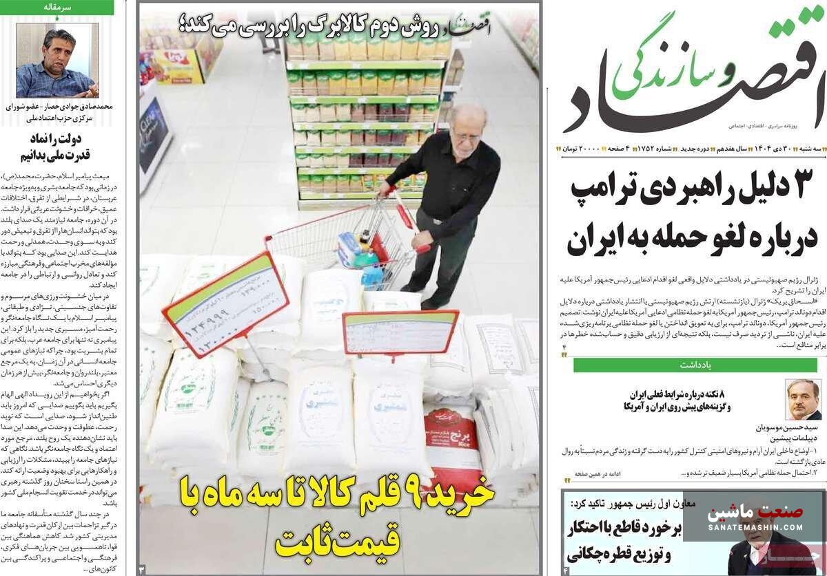 صفحه نخست روزنامه های اقتصادی 30 دی 1404
