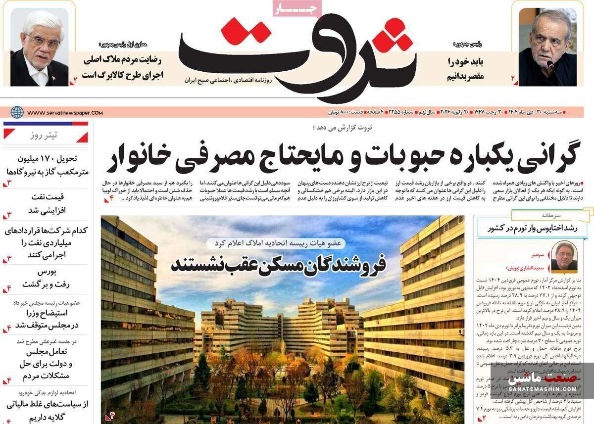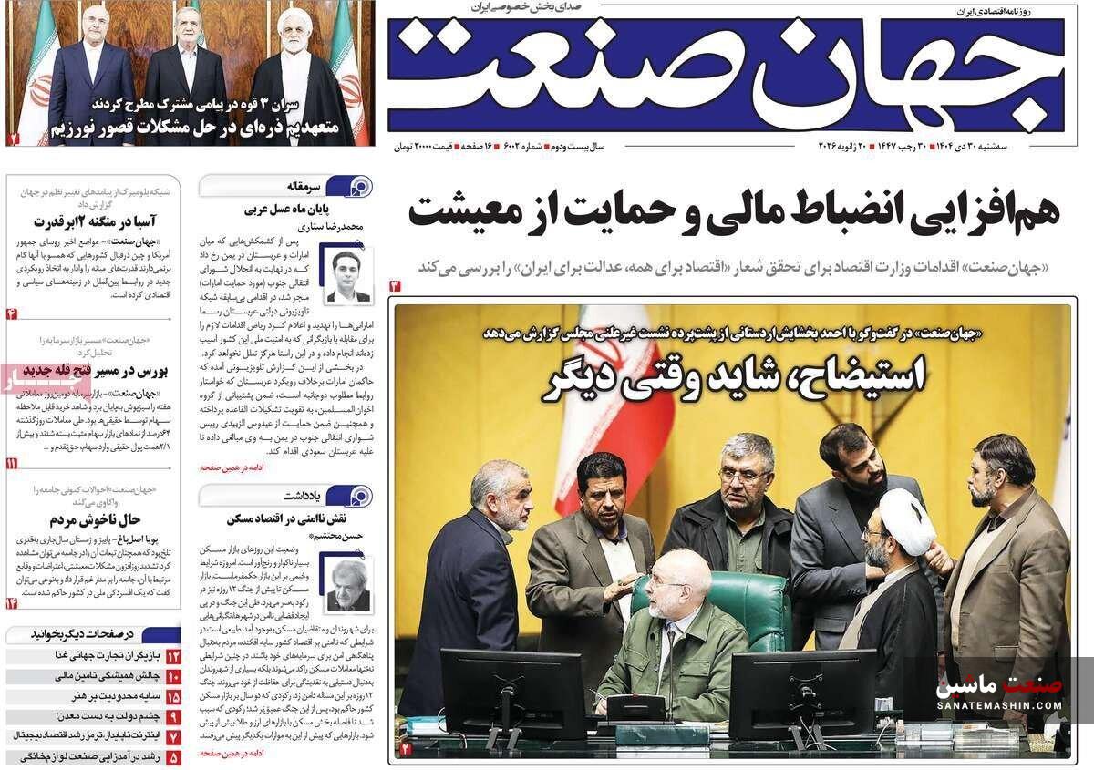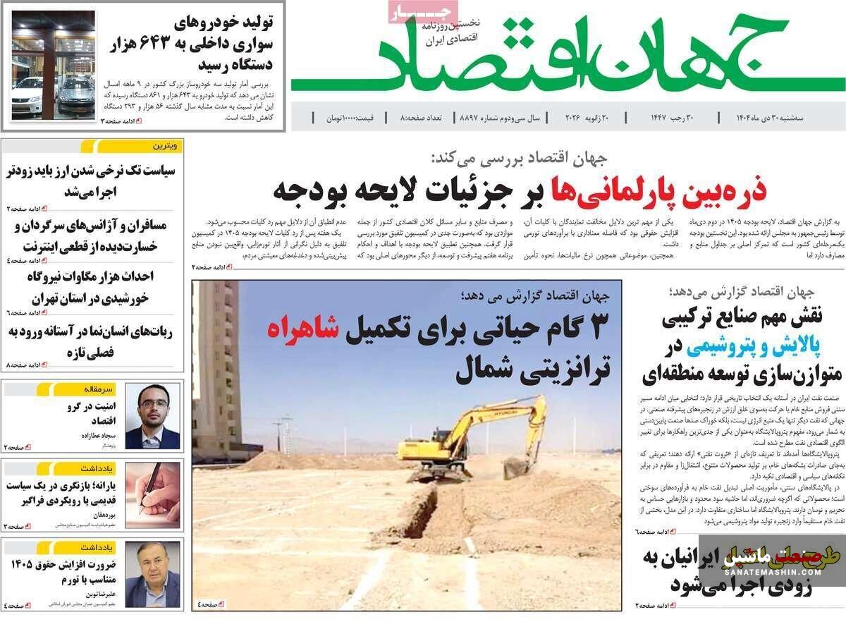 صنعت ماشین: صفحه نخست روزنامه های اقتصادی 30 دی 1404 در صنعت ماشین منتشر شد.