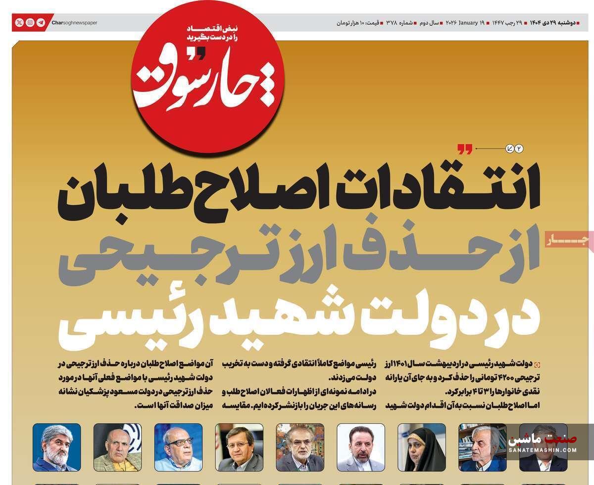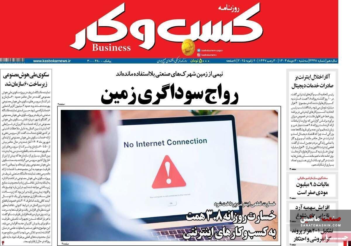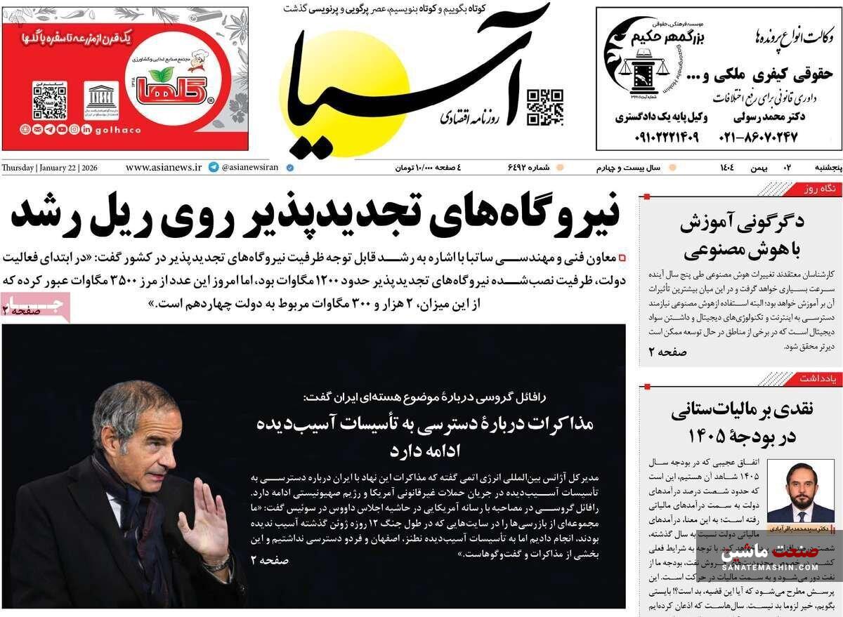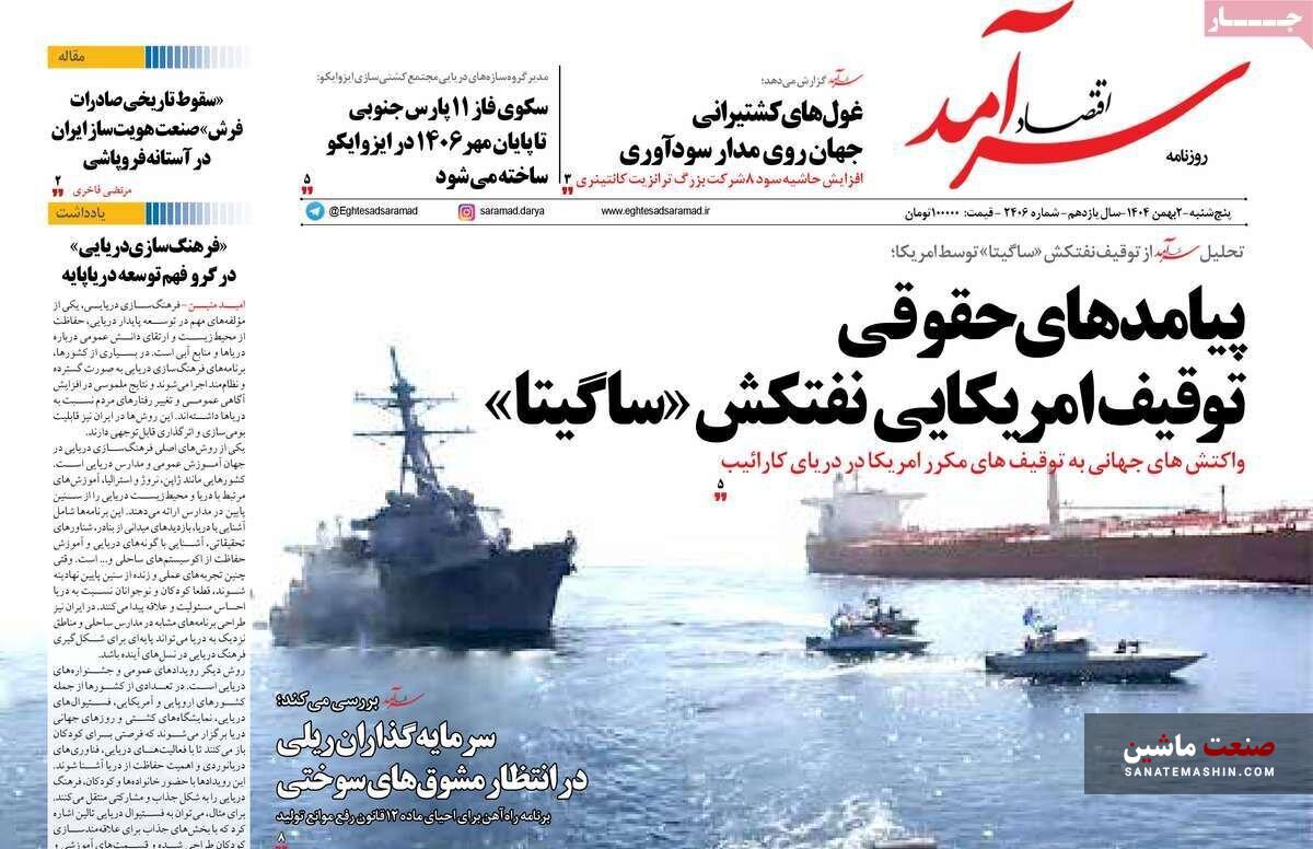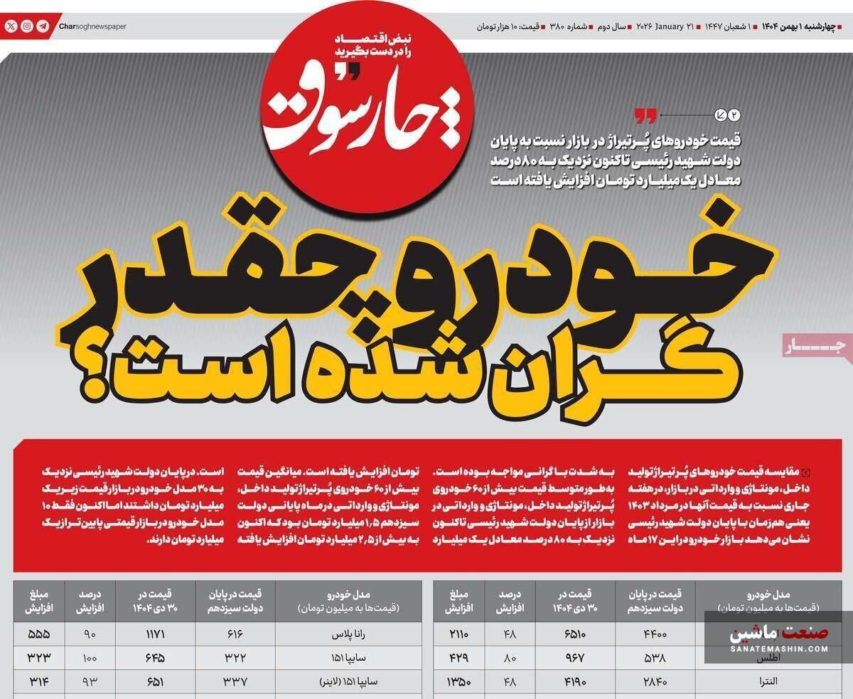 صنعت ماشین: صفحه نخست روزنامه های اقتصادی 2 بهمن 1404 در صنعت ماشین منتشر شد.
