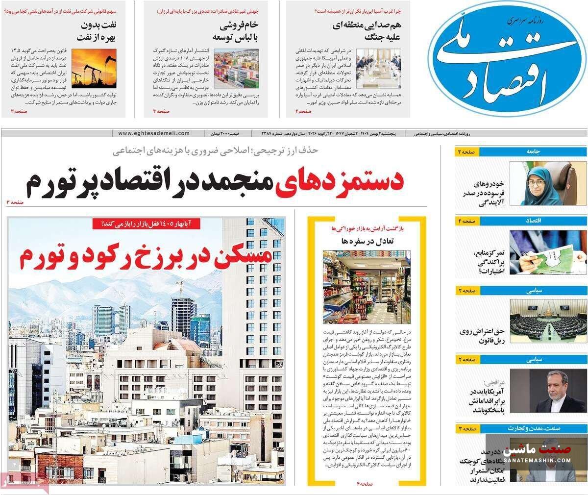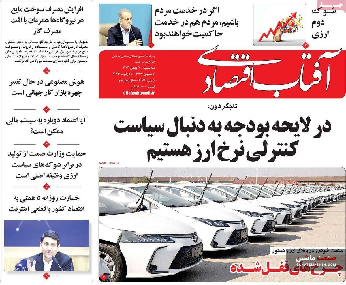 صفحه نخست روزنامه های اقتصادی 2 بهمن 1404