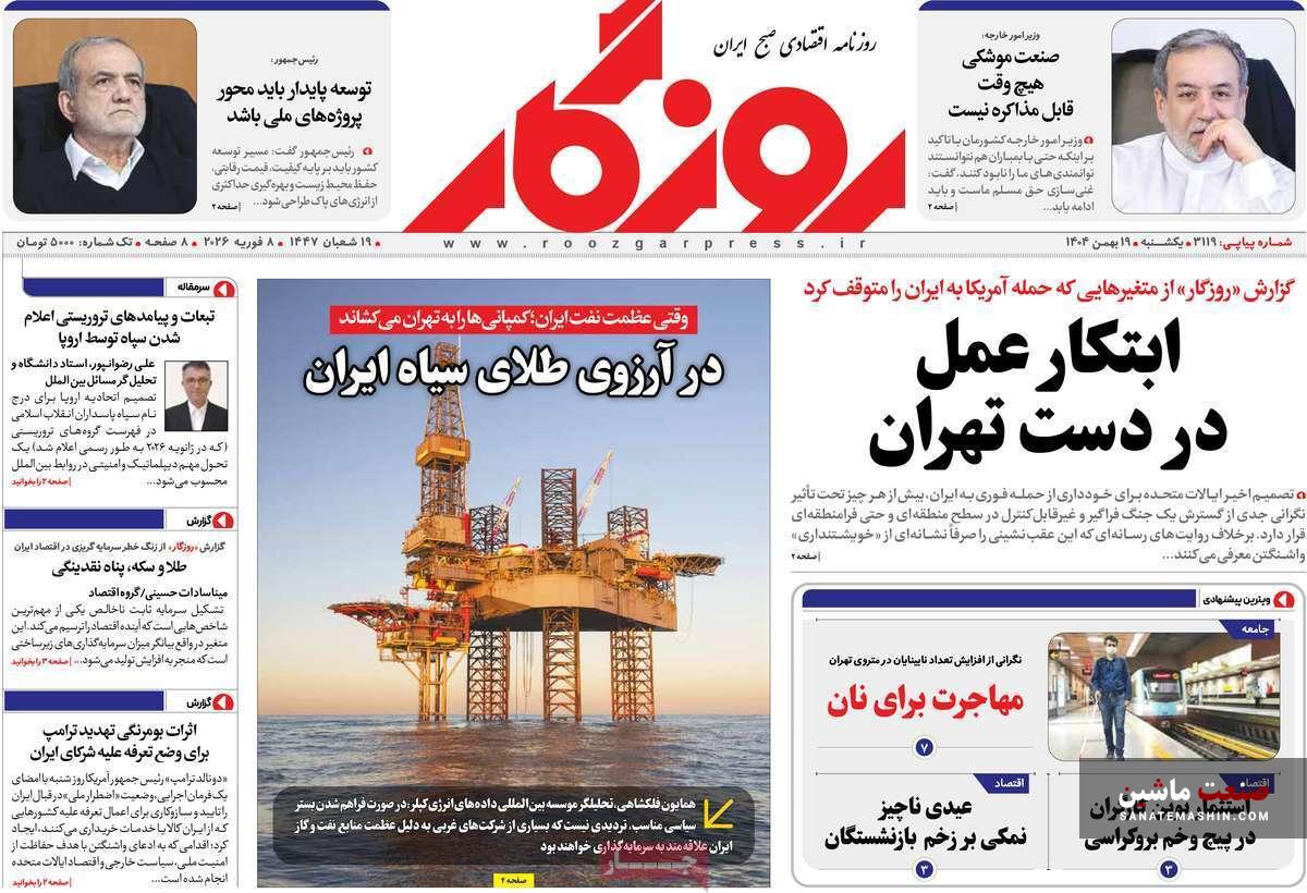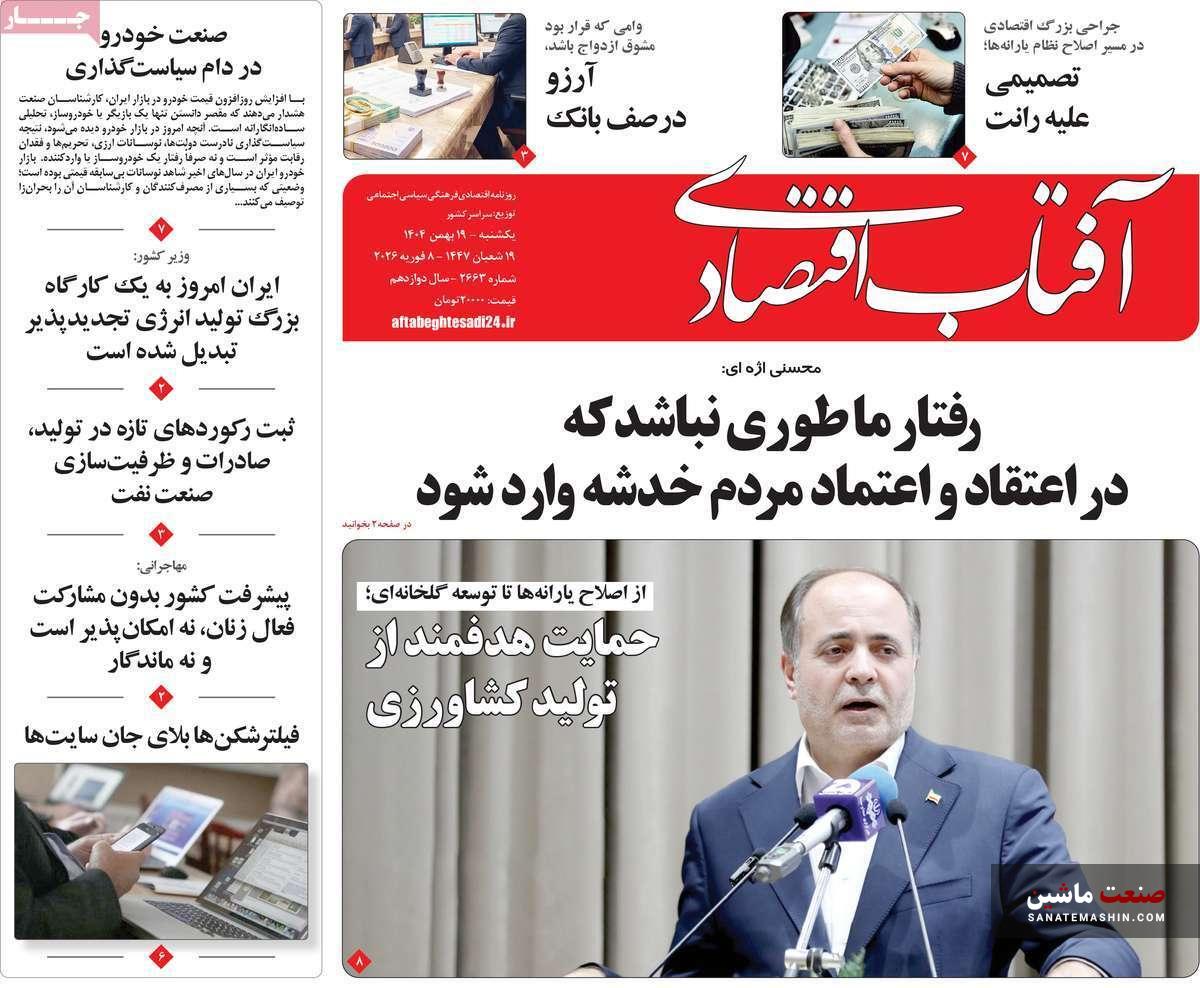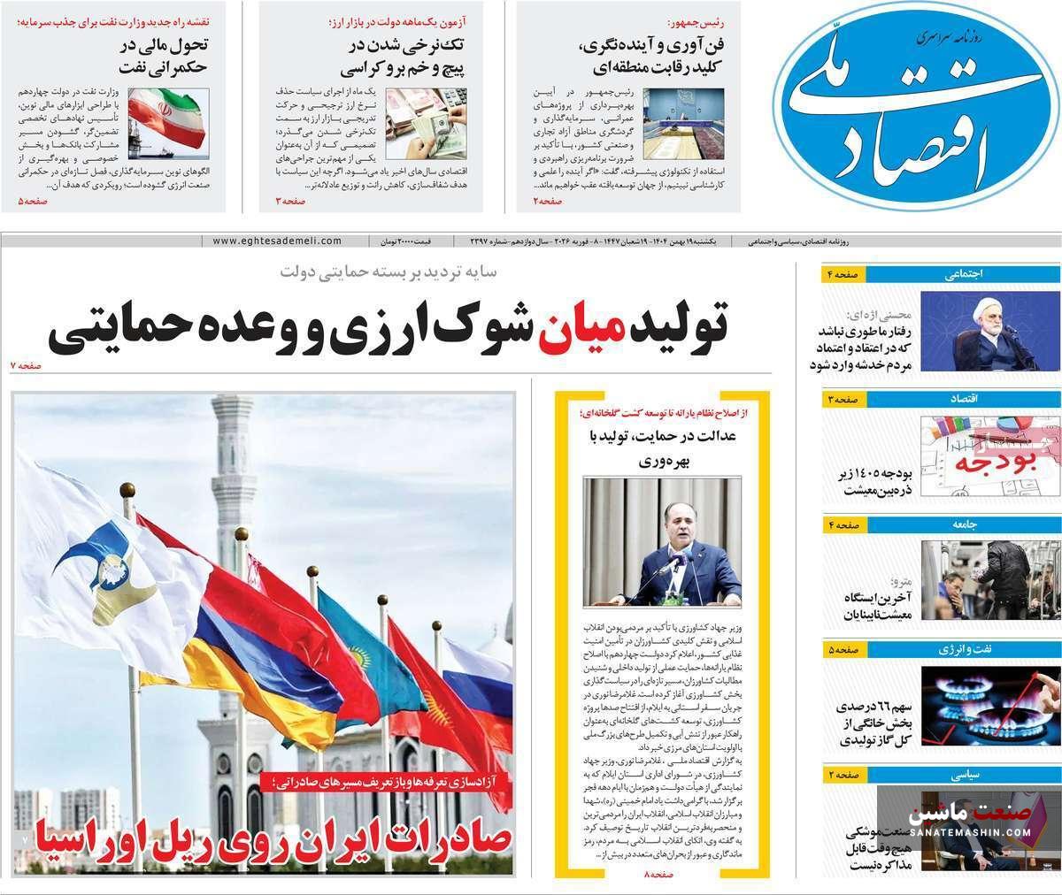 صفحه نخست روزنامه های اقتصادی 18 بهمن 1404