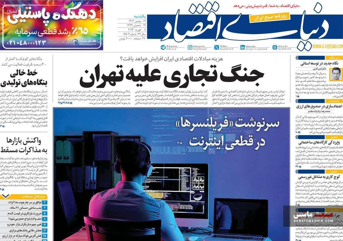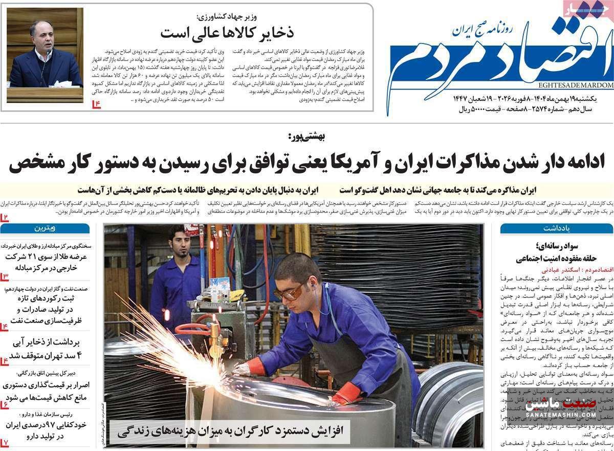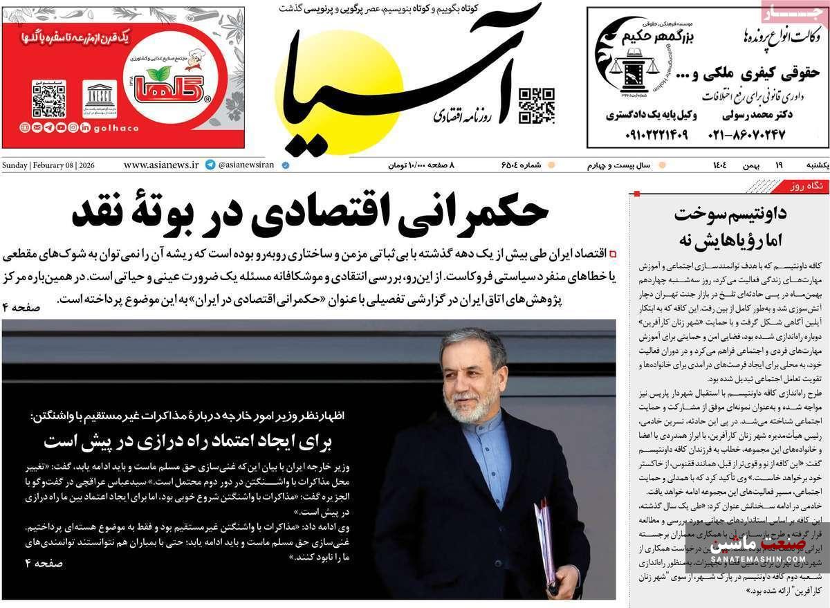 صفحه نخست روزنامه های اقتصادی 18 بهمن 1404
