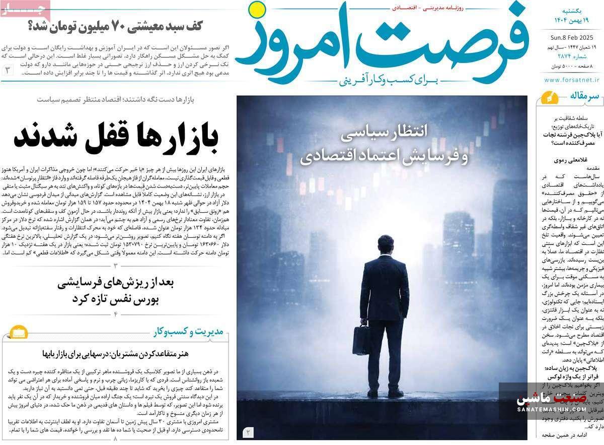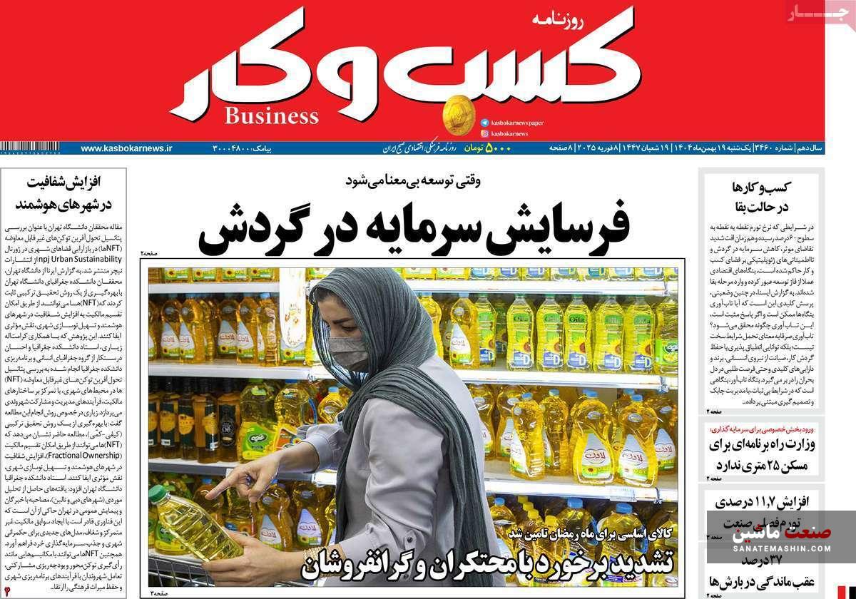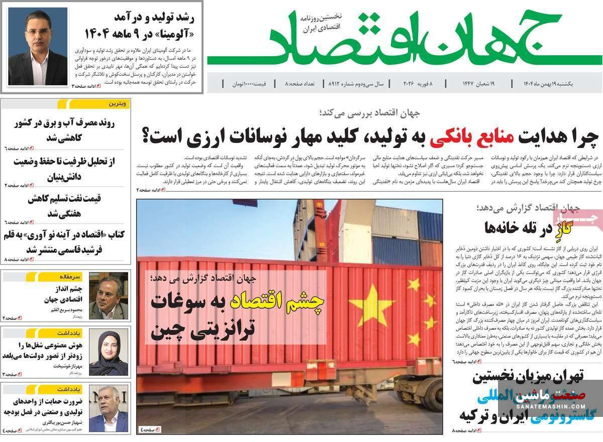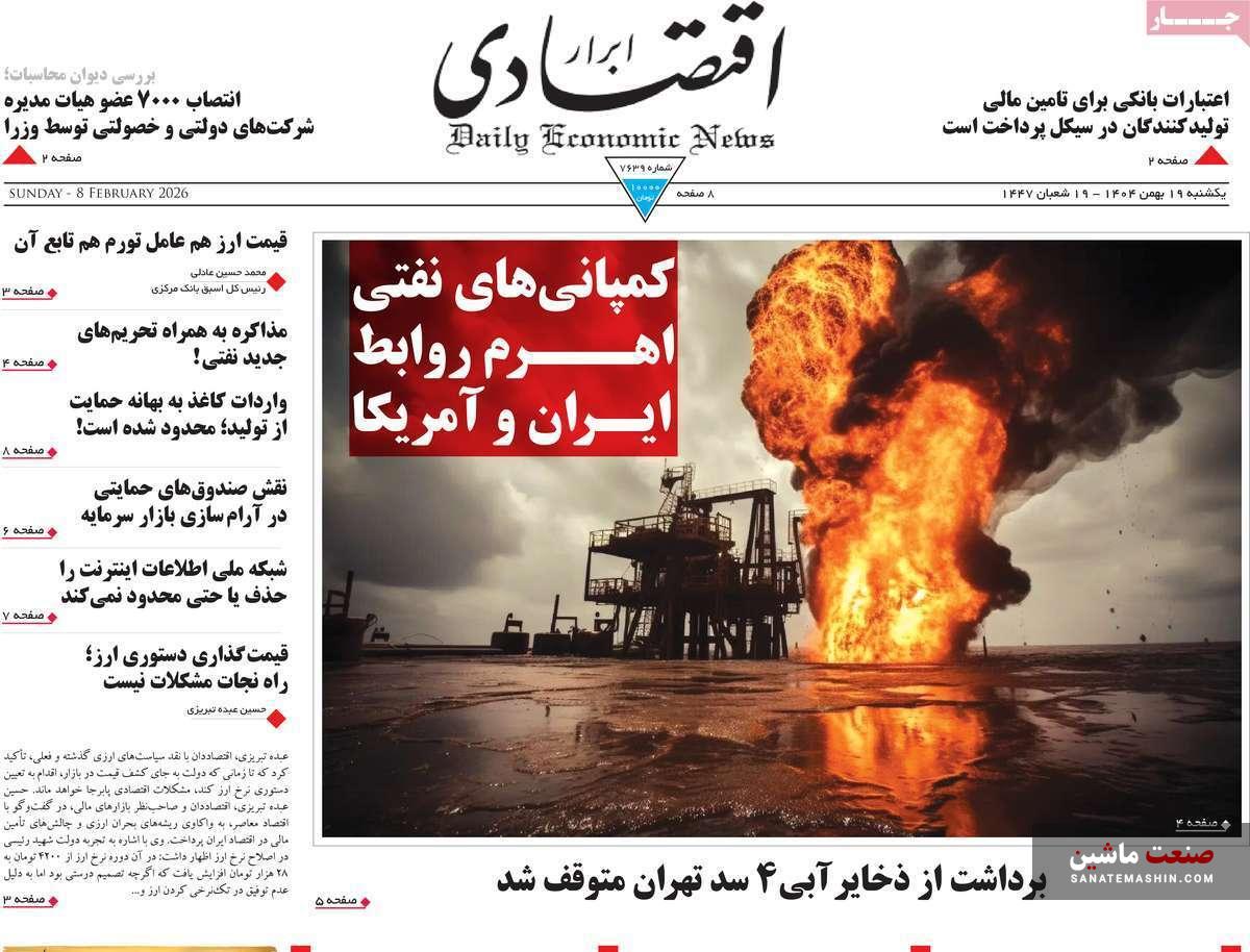 صفحه نخست روزنامه های اقتصادی 8 بهمن 1404