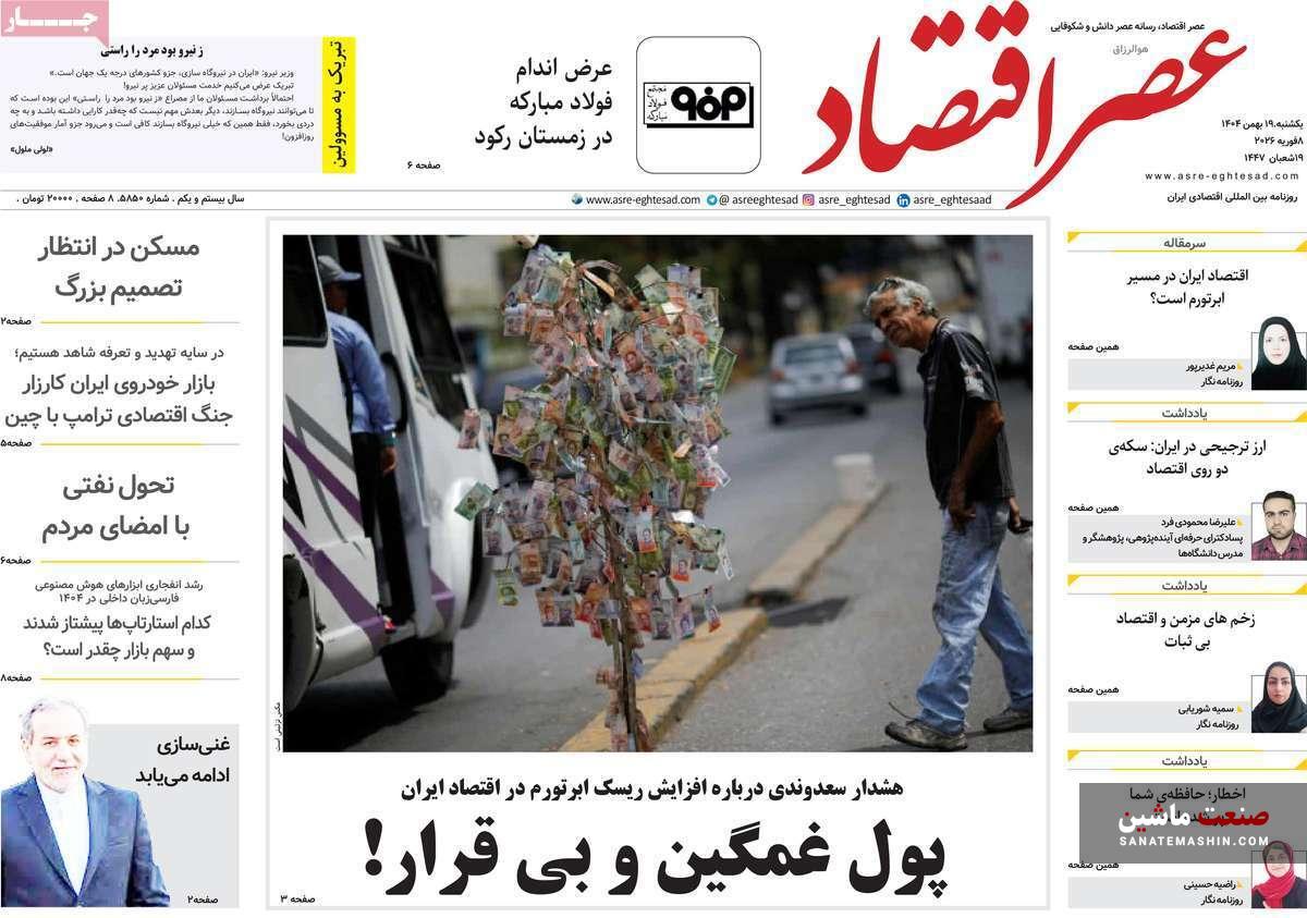 صفحه نخست روزنامه های اقتصادی 9 بهمن 1404