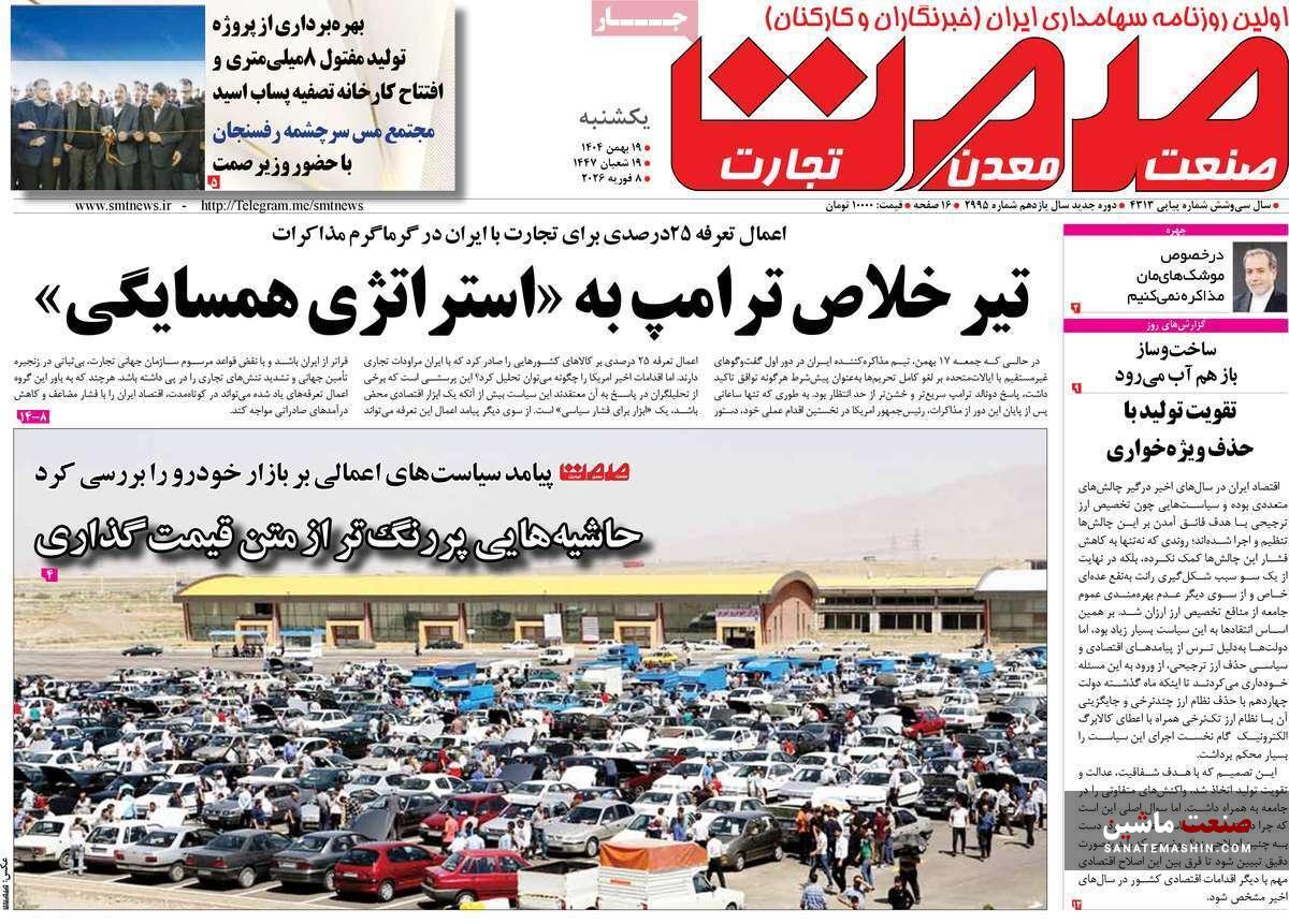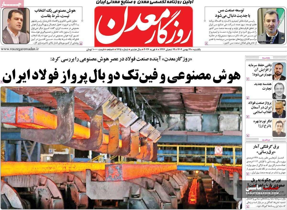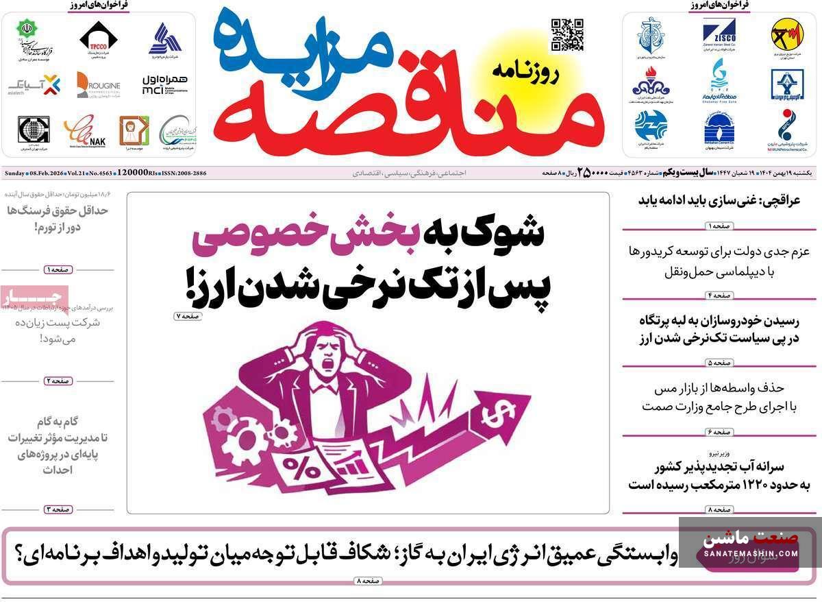 به گزارش صنعت ماشین ؛ صفحه نخست روزنامه های اقتصادی 19 بهمن 1404 به شرح زیر است: