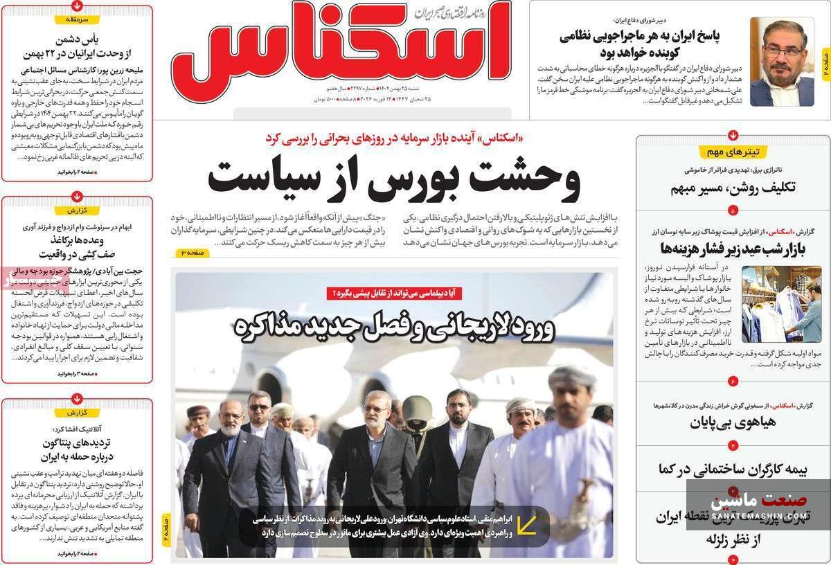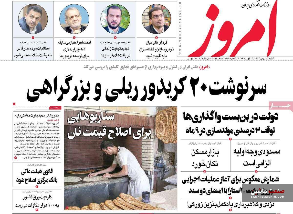صفحه نخست روزنامه های اقتصادی 20 بهمن 1404
