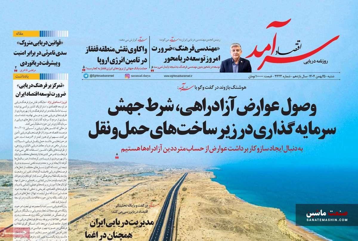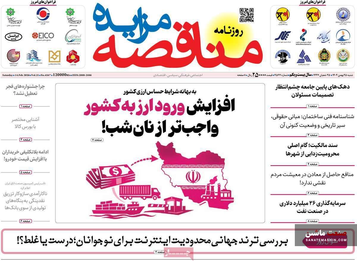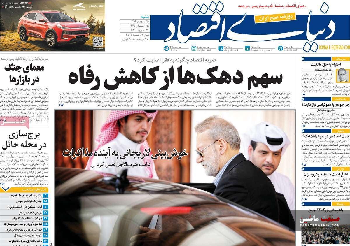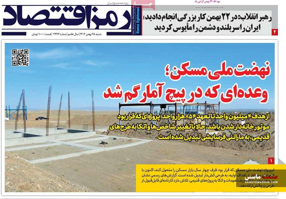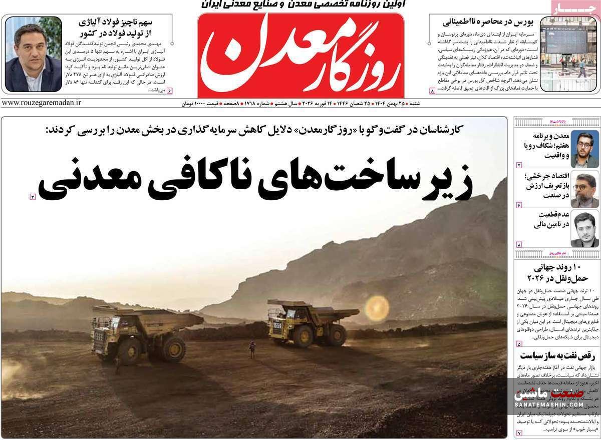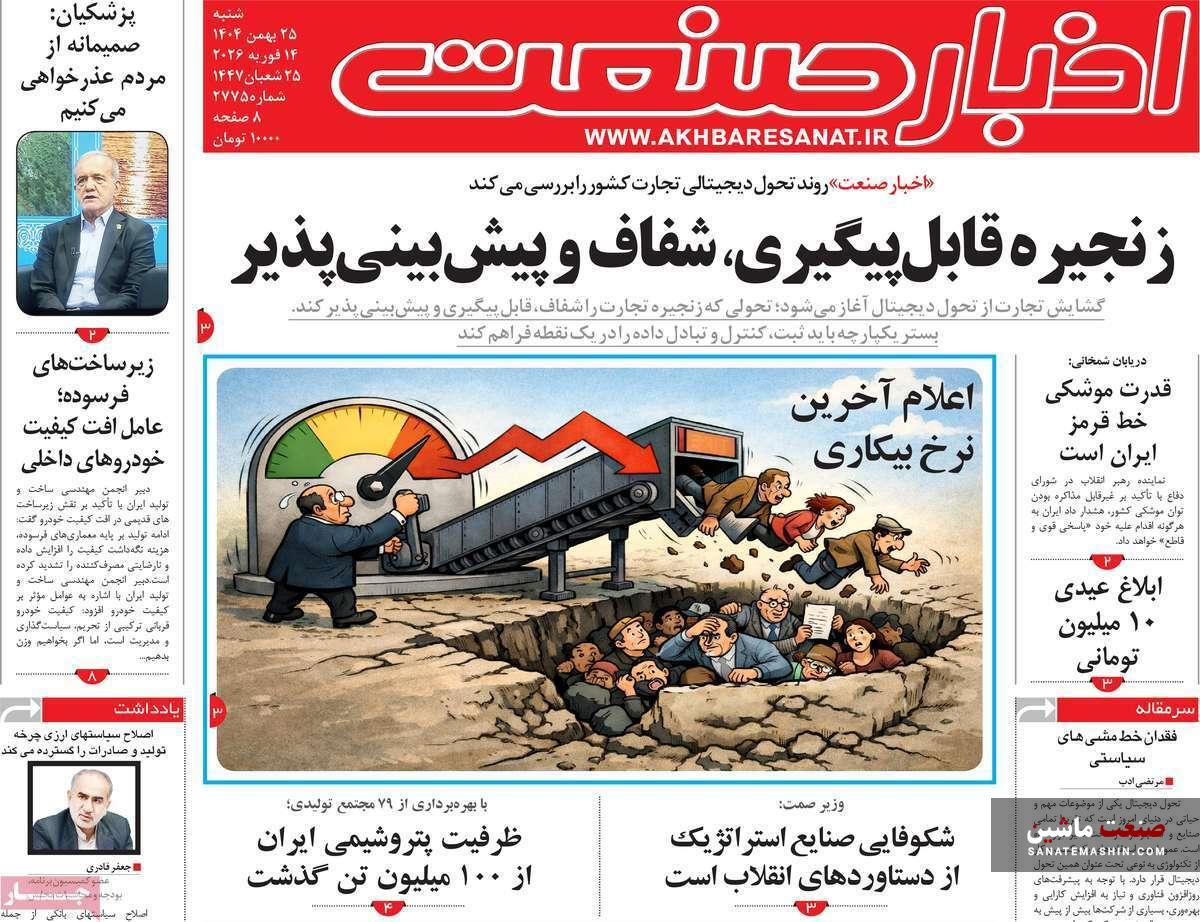 به گزارش صنعت ماشین ؛ صفحه نخست روزنامه های اقتصادی 25 بهمن 1404 به شرح زیر است: