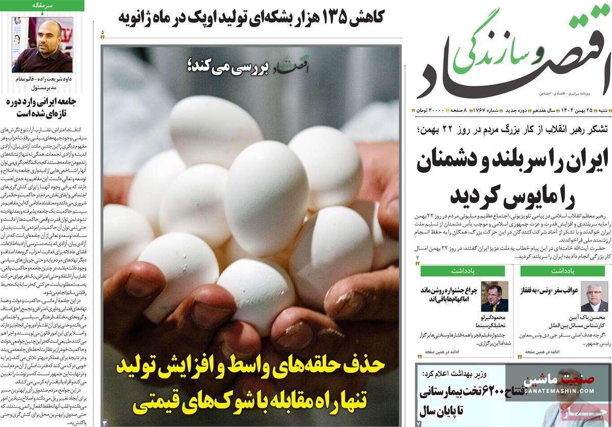 صفحه نخست روزنامه های اقتصادی 19 بهمن 1404