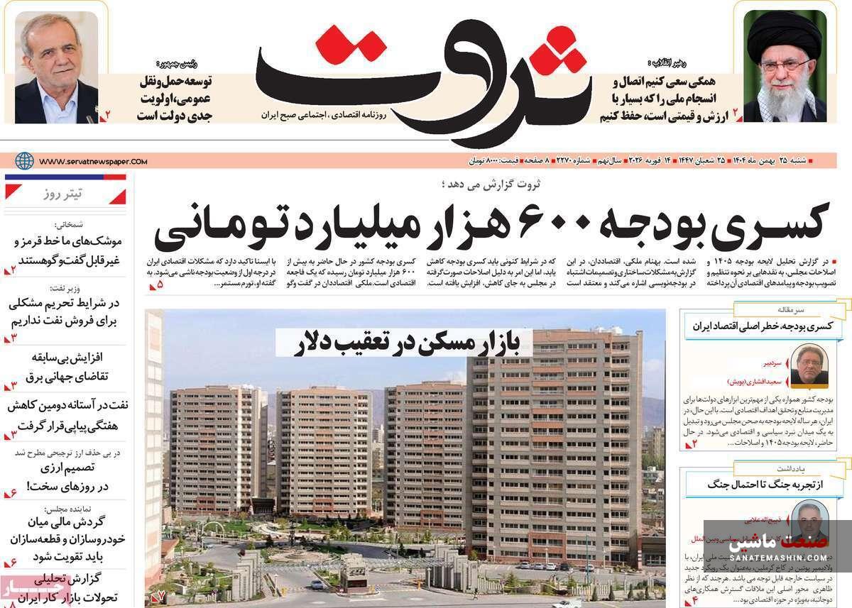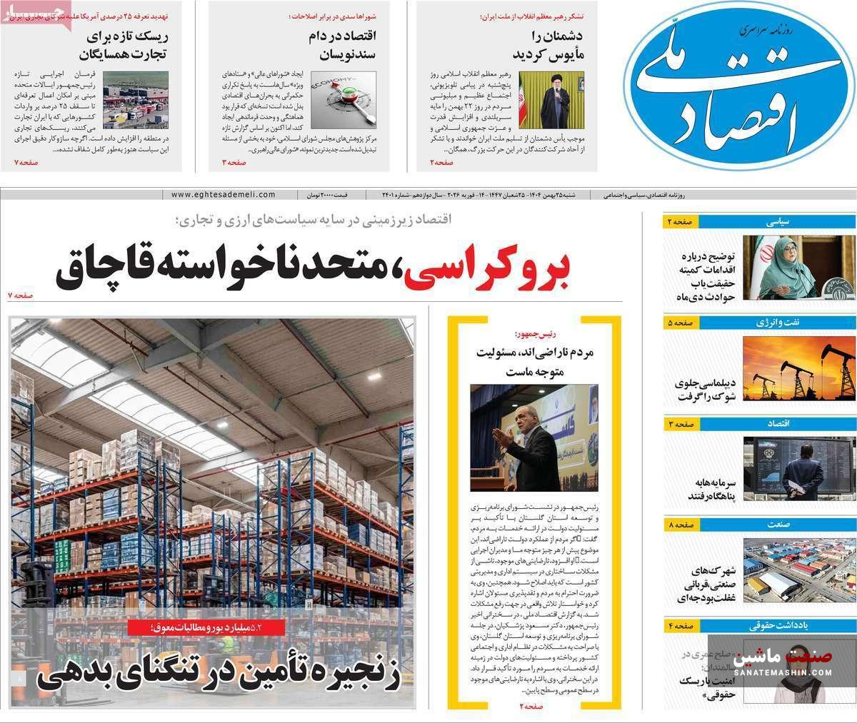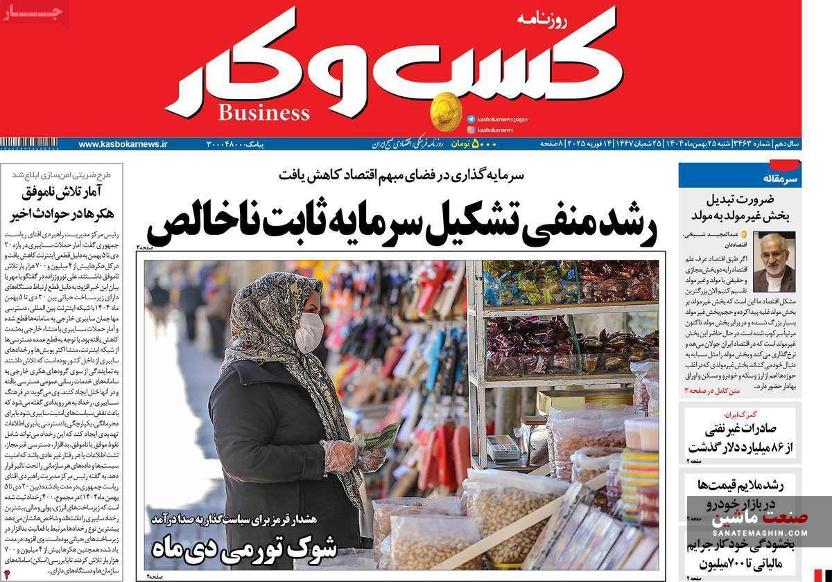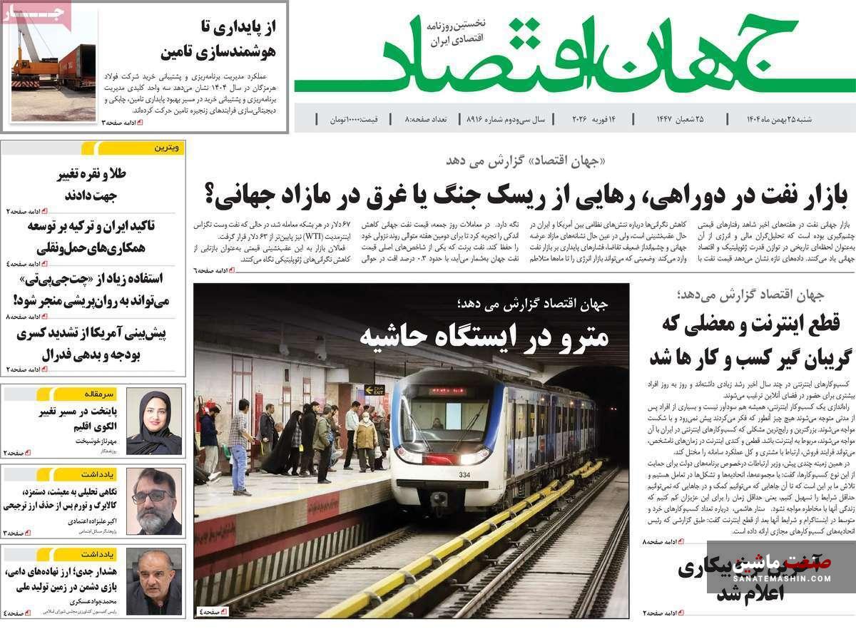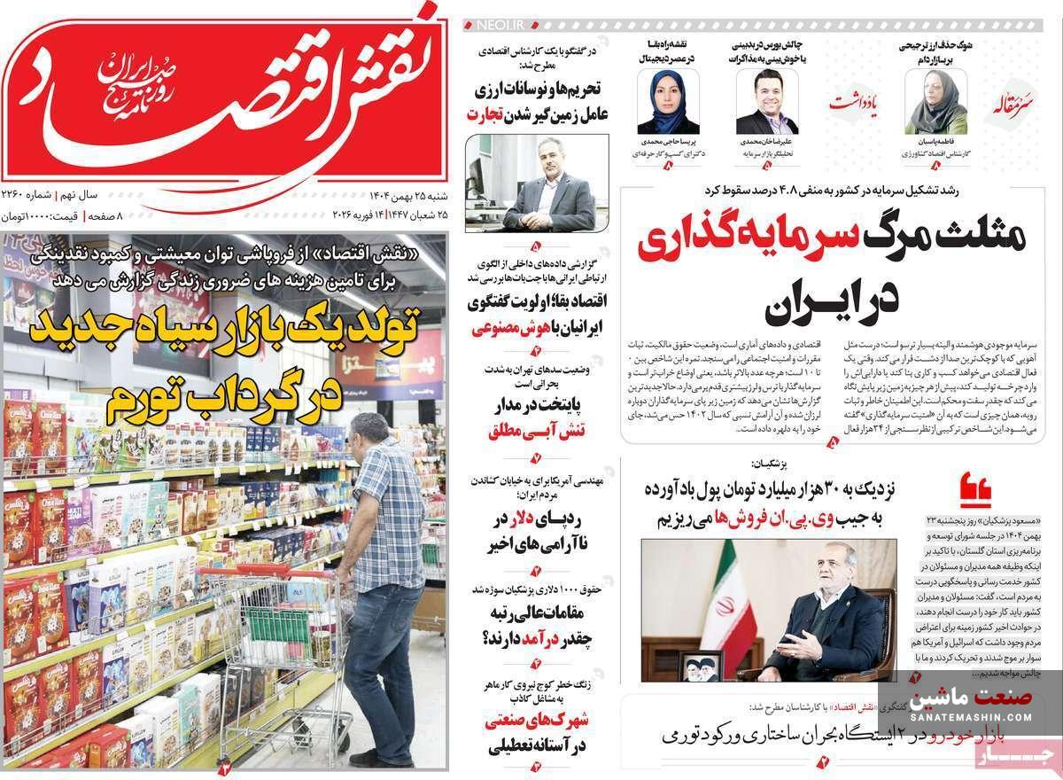 صفحه نخست روزنامه های اقتصادی 14 بهمن 1404