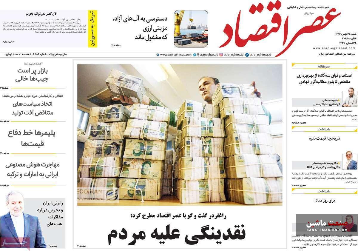 صفحه نخست روزنامه های اقتصادی 18 بهمن 1404