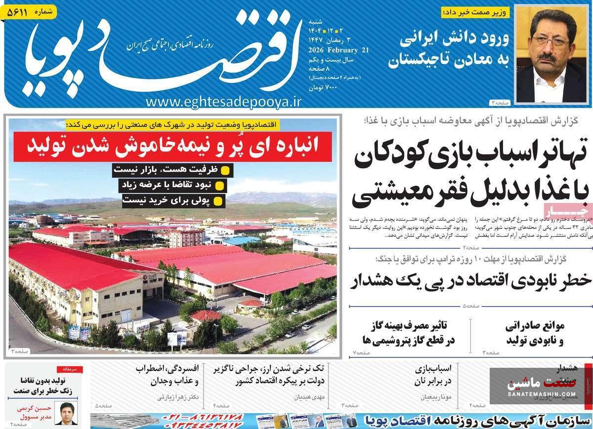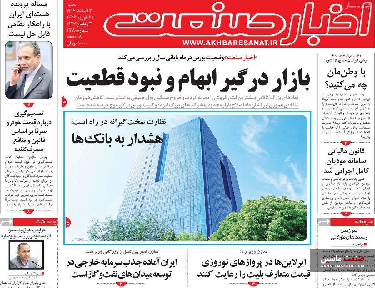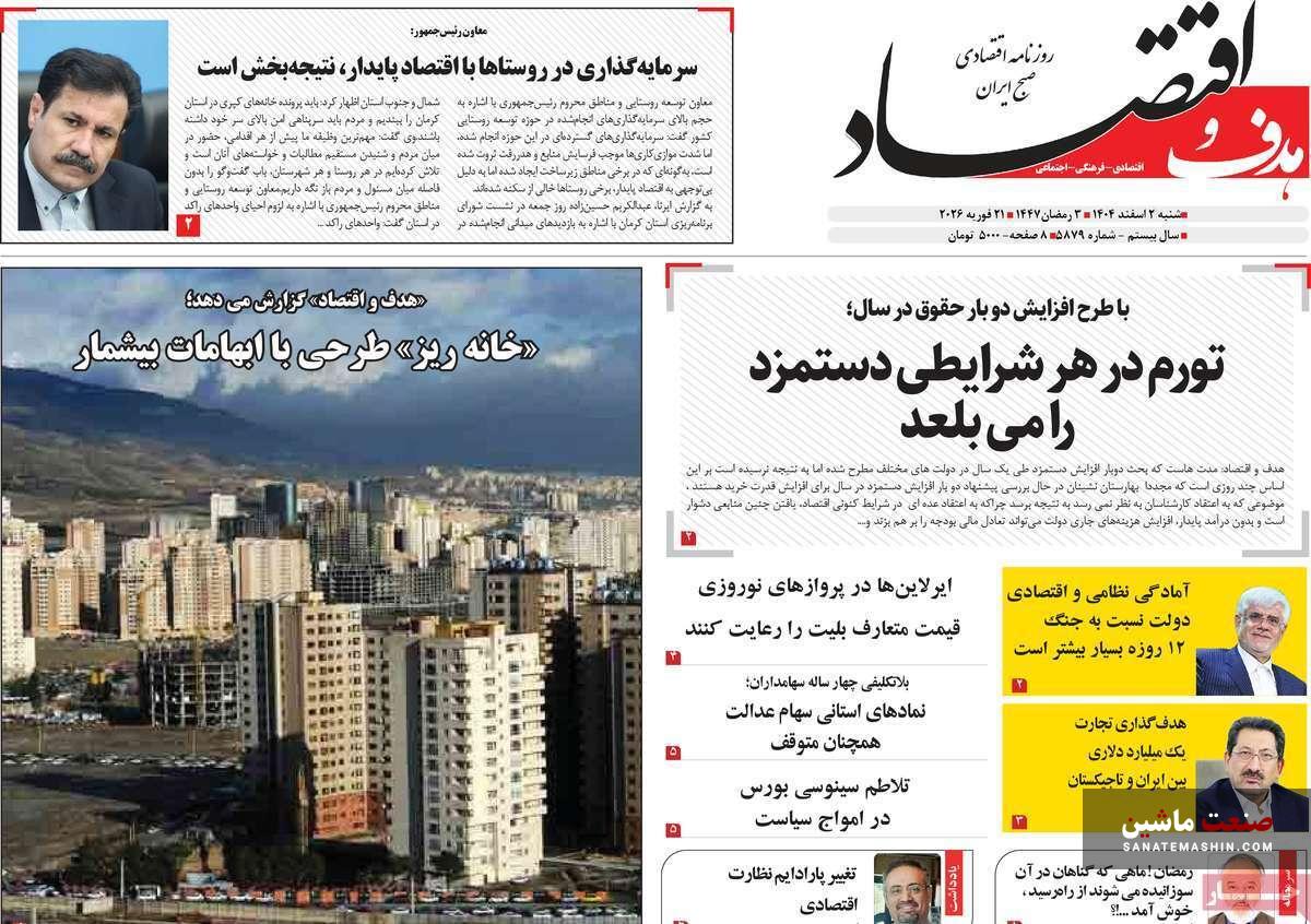به گزارش صنعت ماشین ؛ صفحه نخست روزنامه های اقتصادی 1 اسفند 1404 به شرح زیر است: