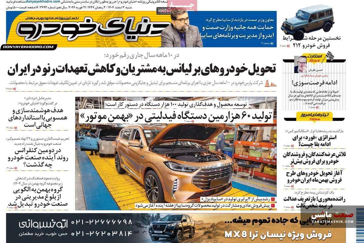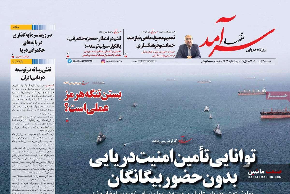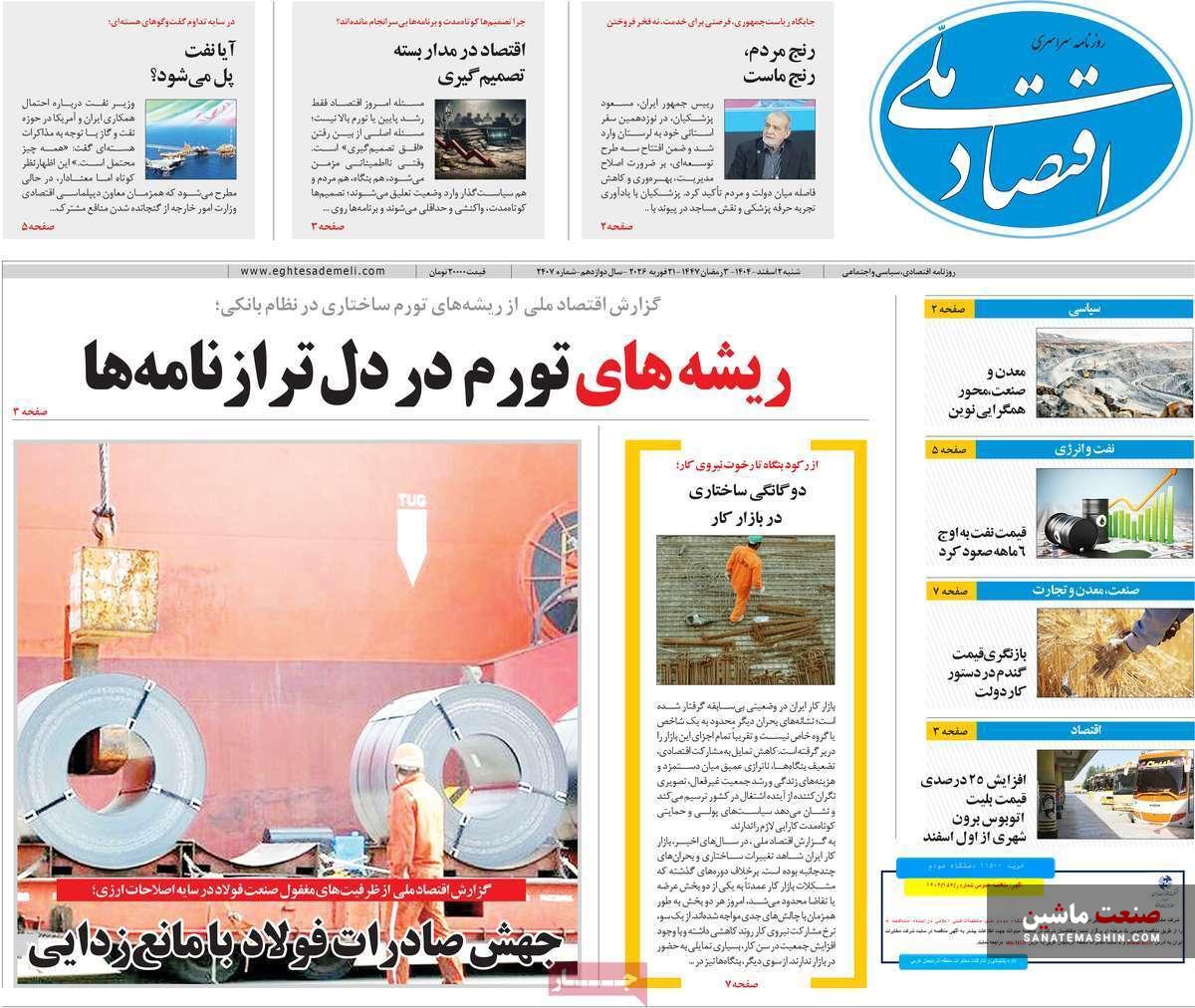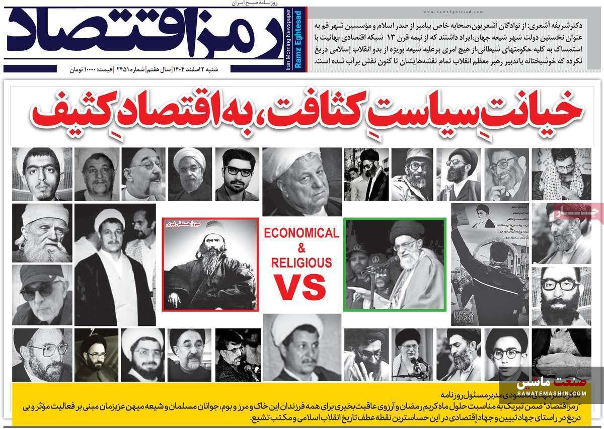 به گزارش صنعت ماشین ؛ صفحه نخست روزنامه های اقتصادی 1 اسفند 1404 به شرح زیر است: