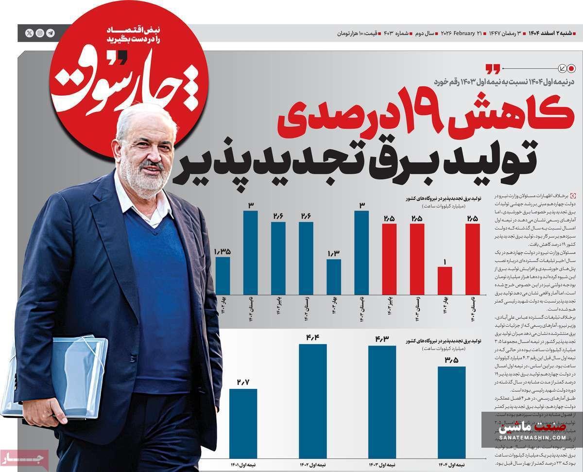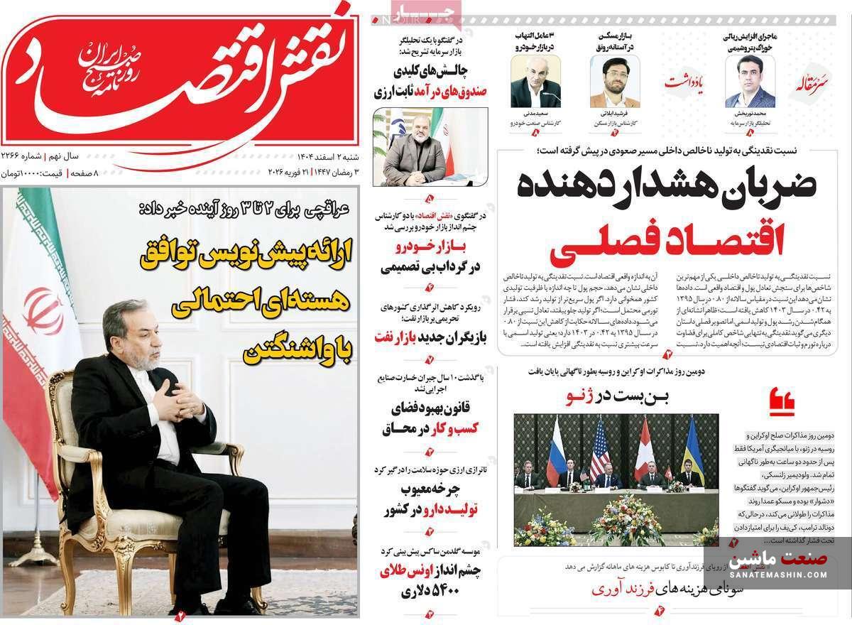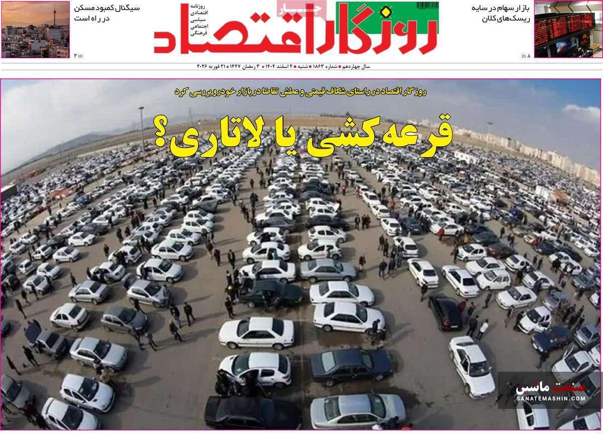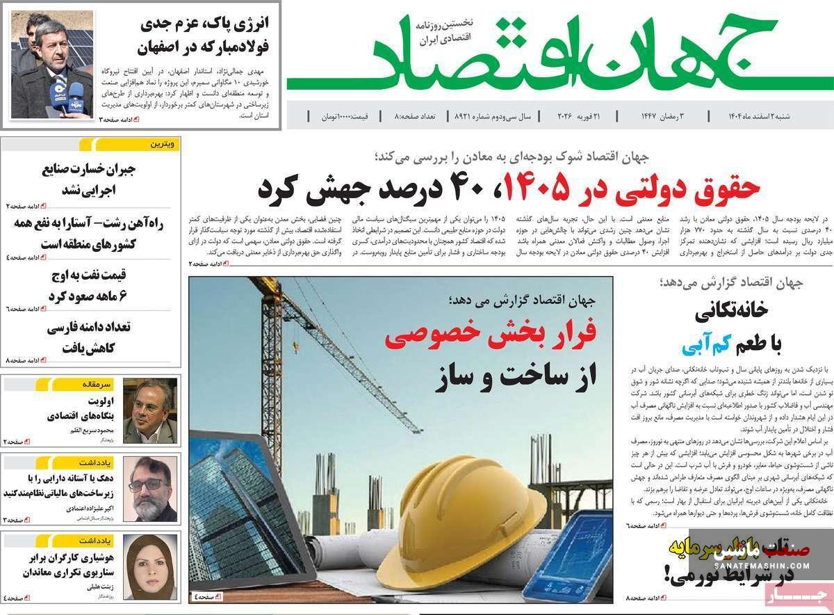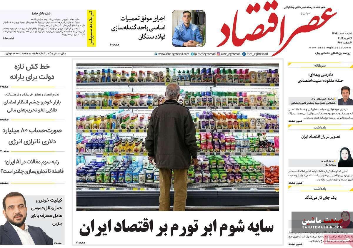 صفحه نخست روزنامه های اقتصادی 26 بهمن 1404