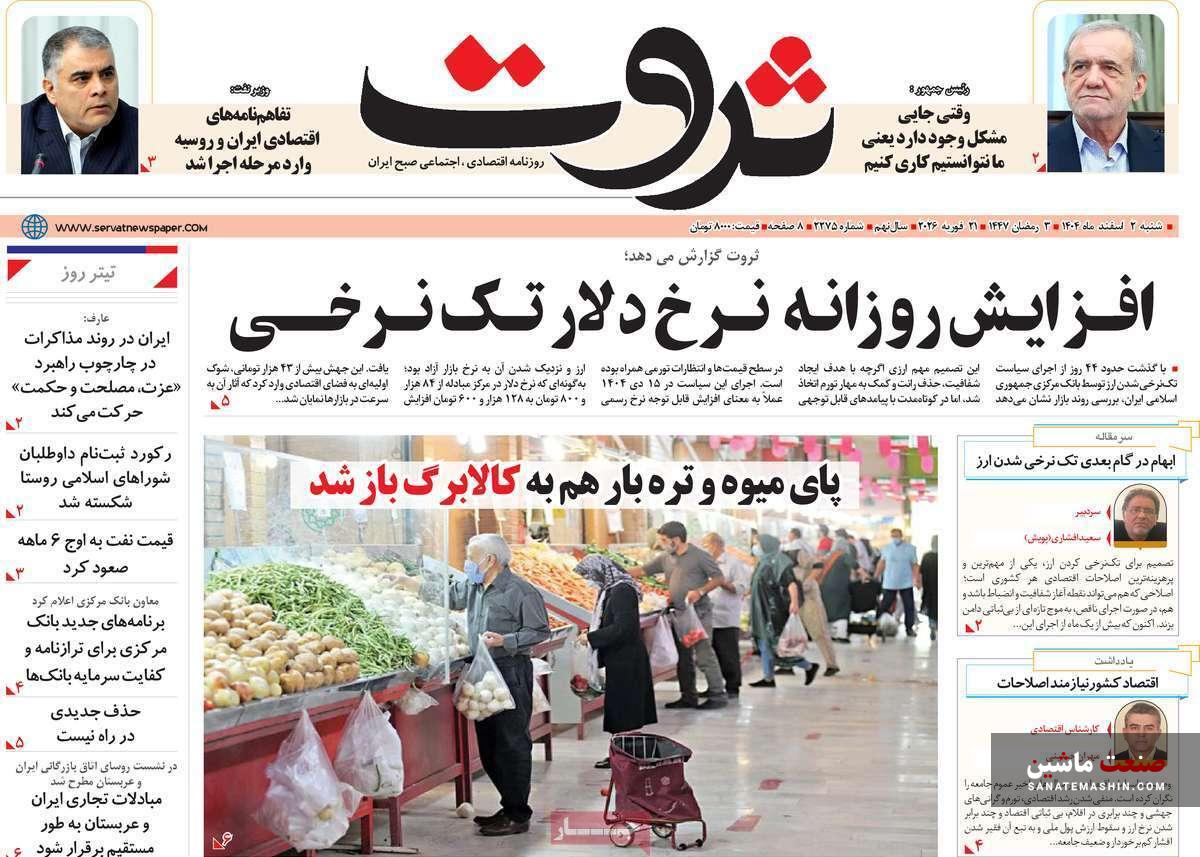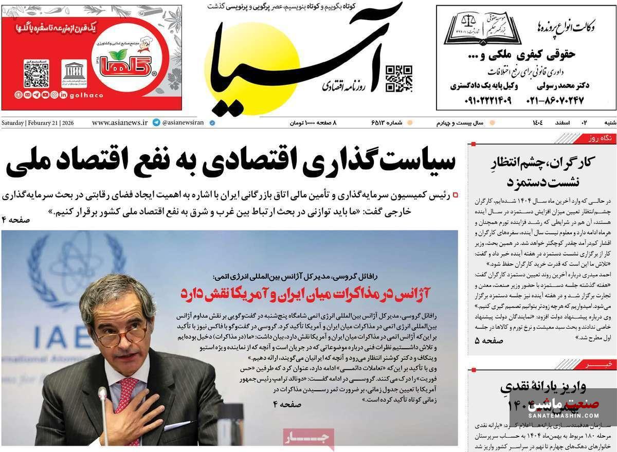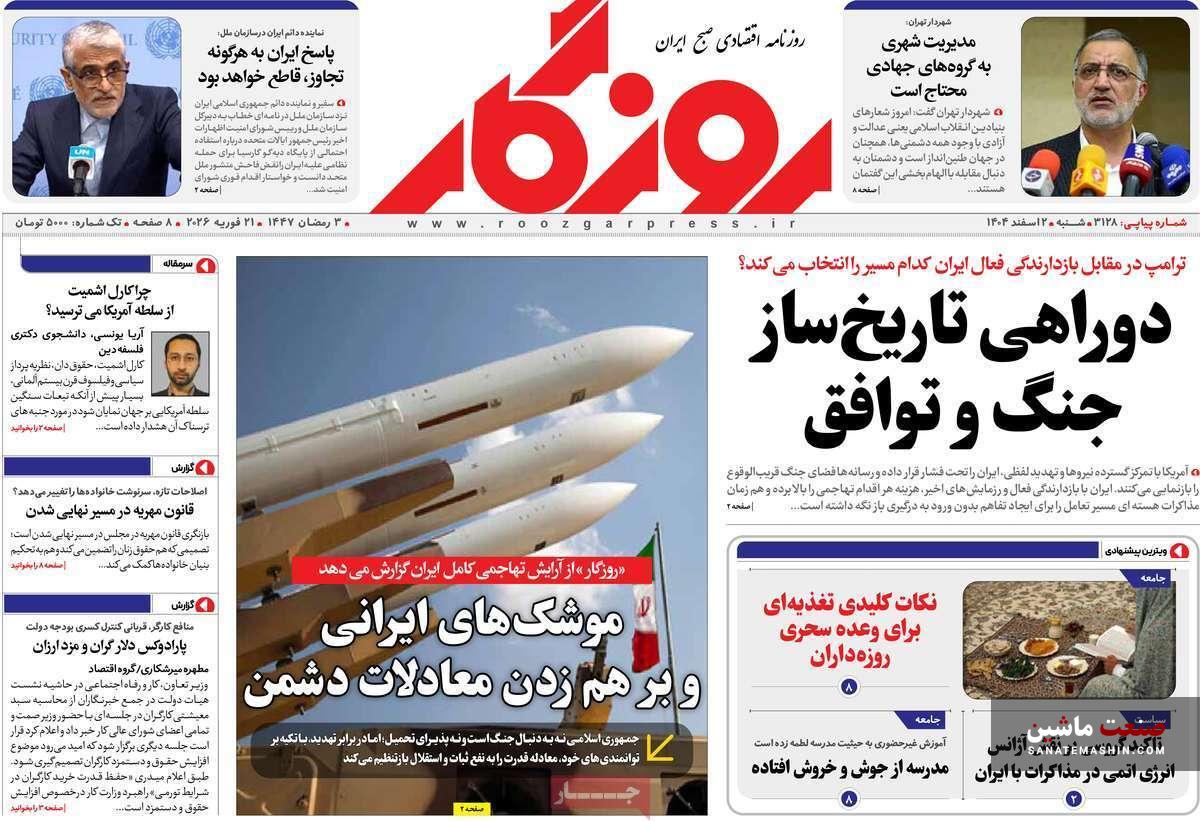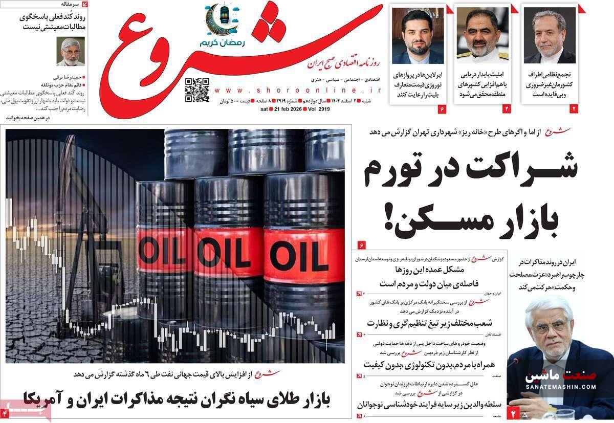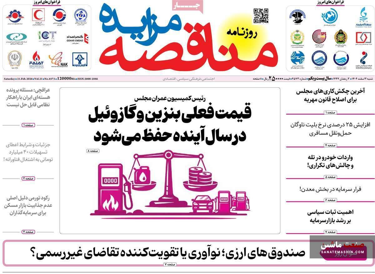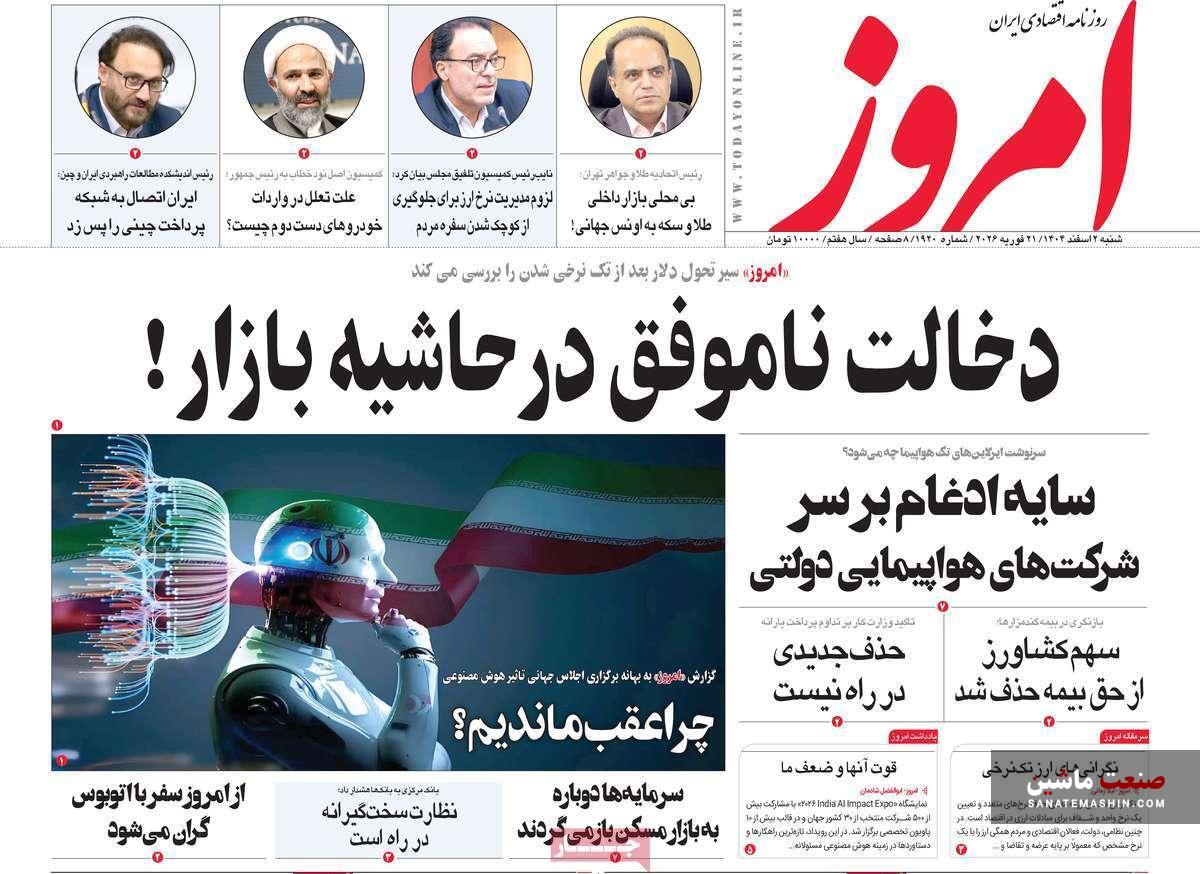 صفحه نخست روزنامه های اقتصادی 26 بهمن 1404
