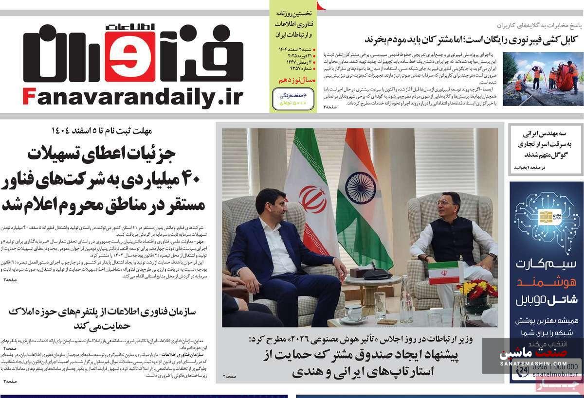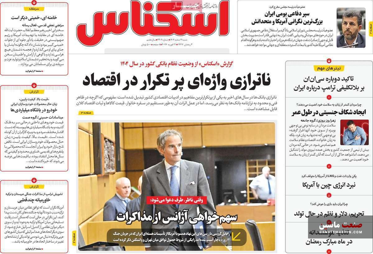 صفحه نخست روزنامه های اقتصادی 25 بهمن 1404
