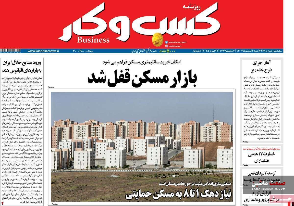 صفحه نخست روزنامه های اقتصادی 21 بهمن 1404