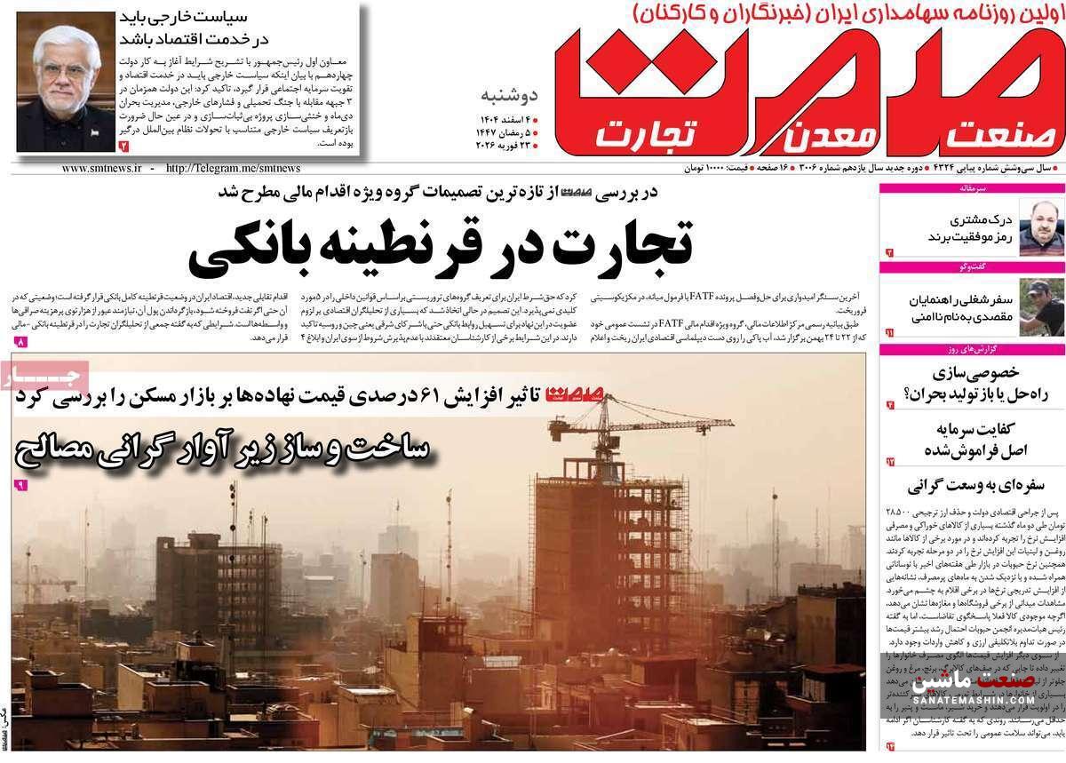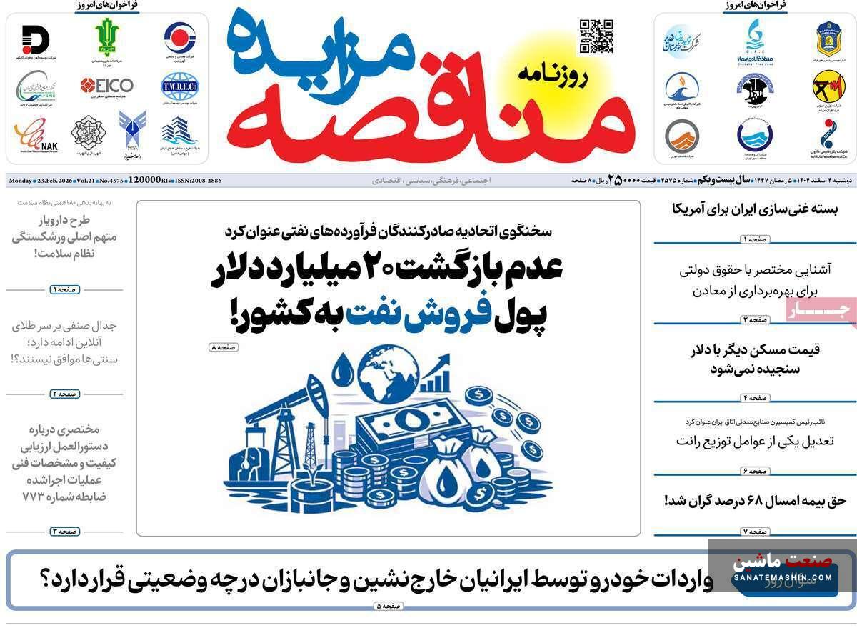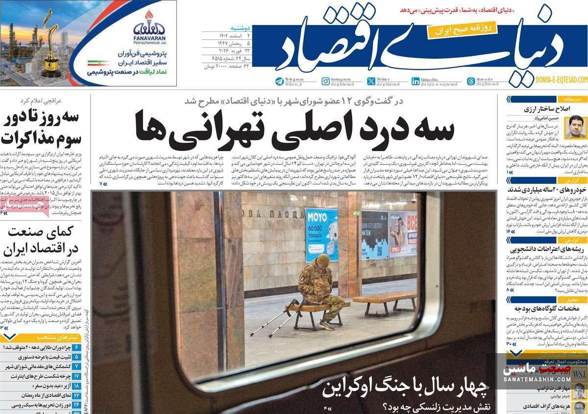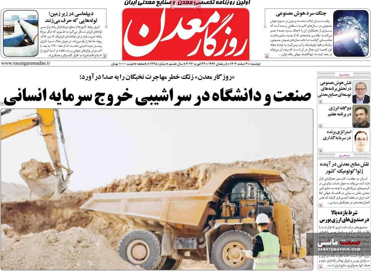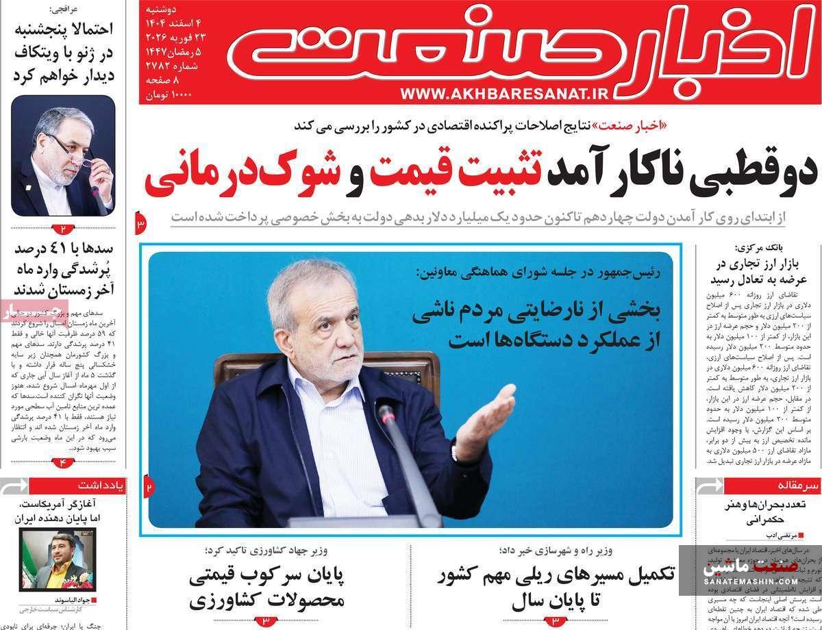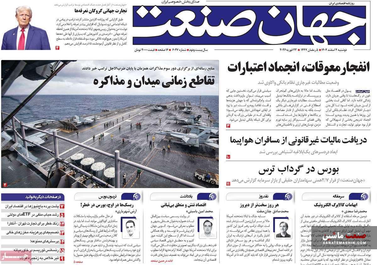 به گزارش صنعت ماشین ؛ صفحه نخست روزنامه های اقتصادی 4 اسفند 1404 به شرح زیر است: