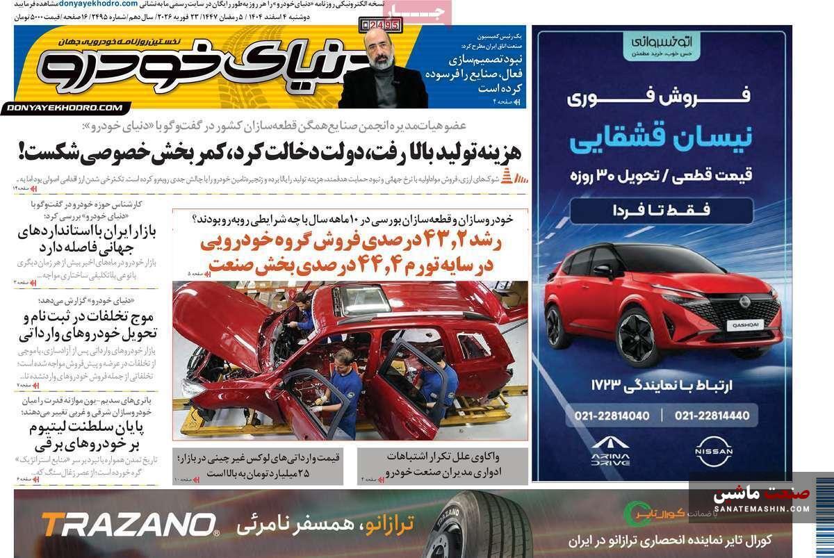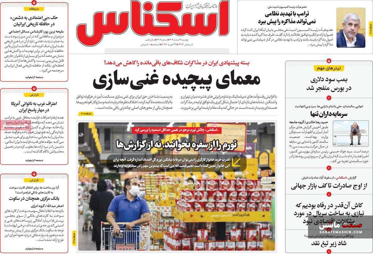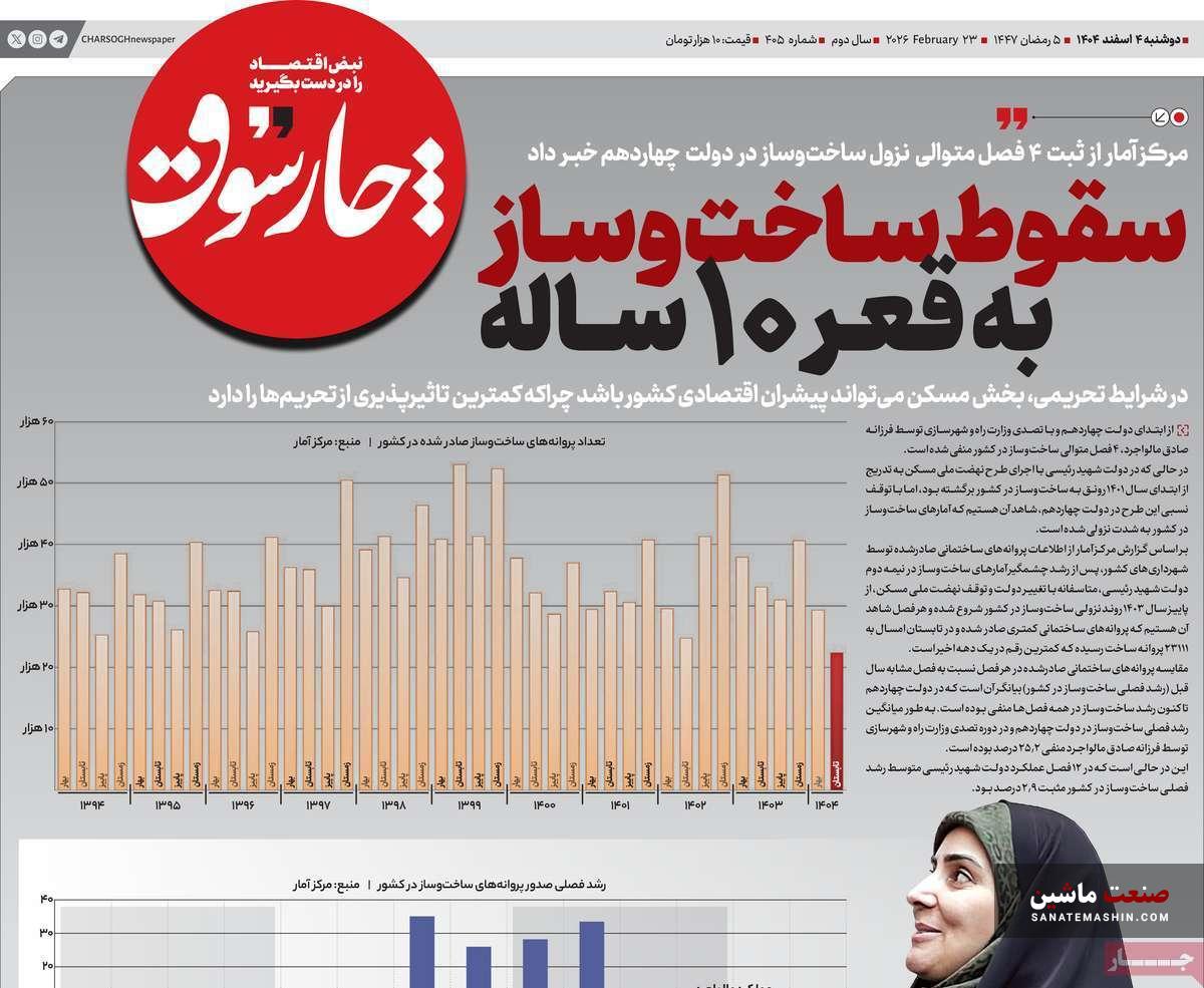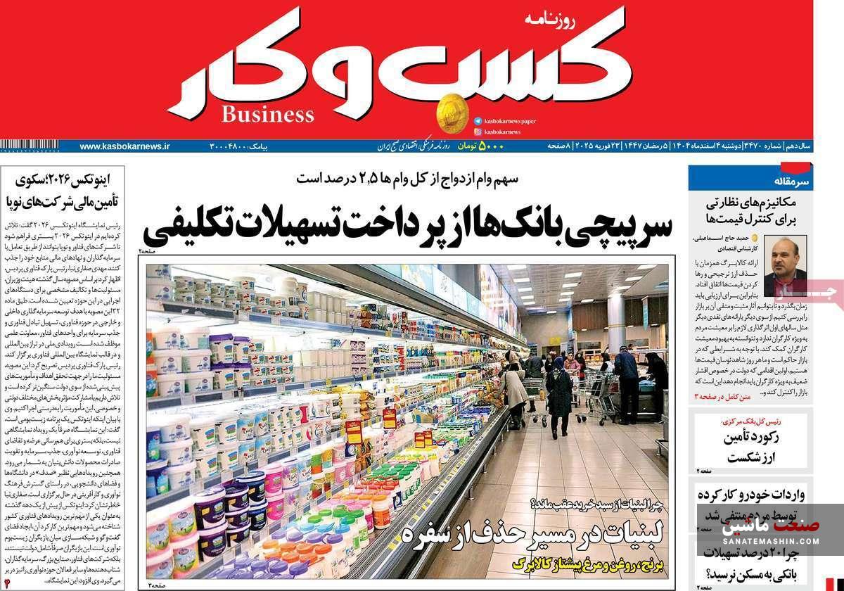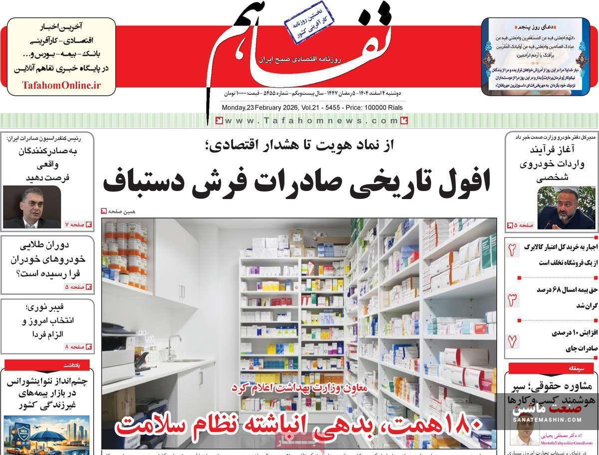 به گزارش صنعت ماشین ؛ صفحه نخست روزنامه های اقتصادی 4 اسفند 1404 به شرح زیر است: