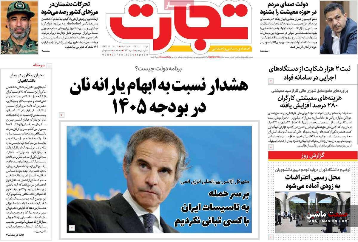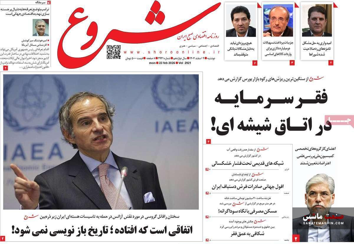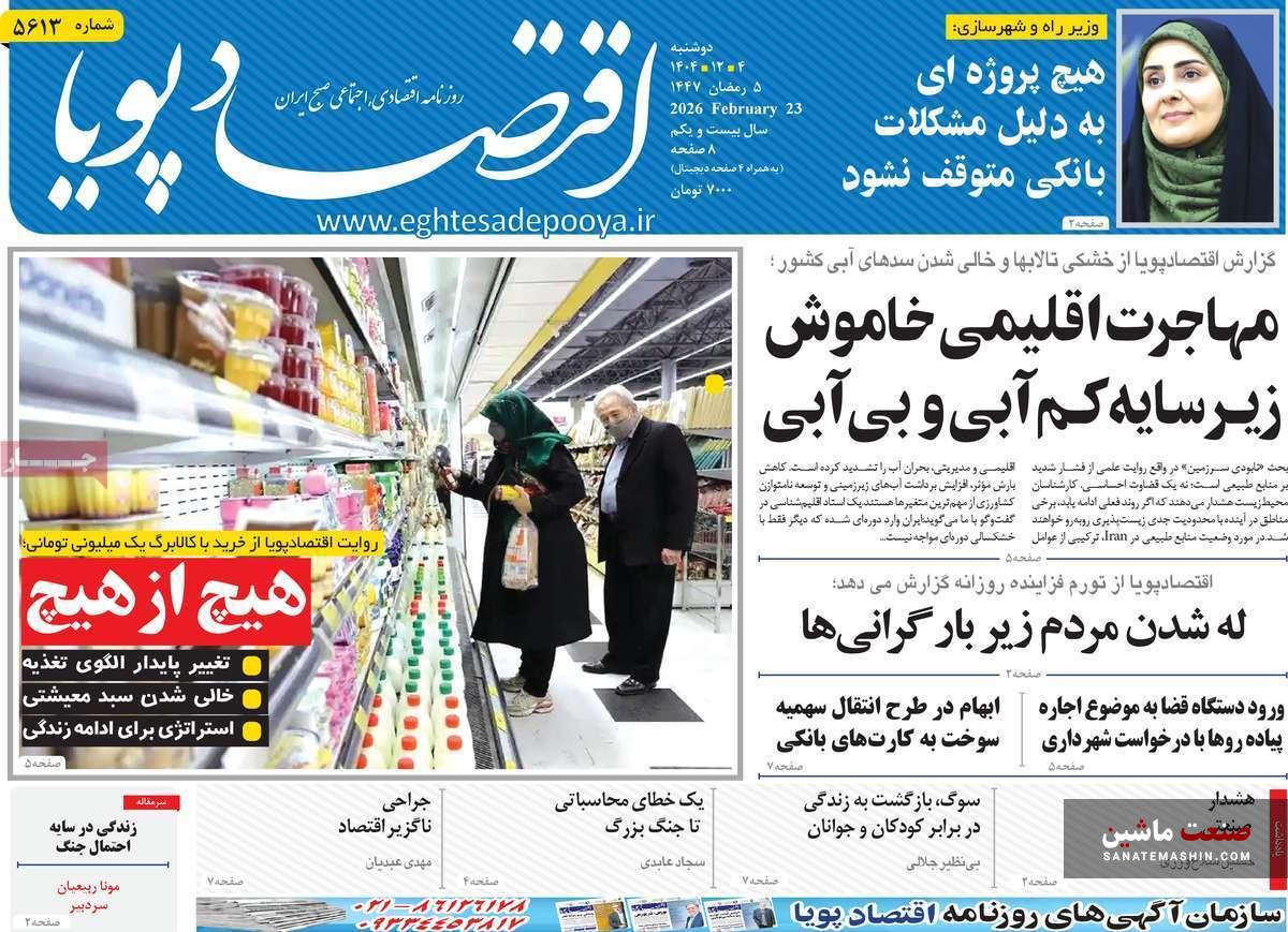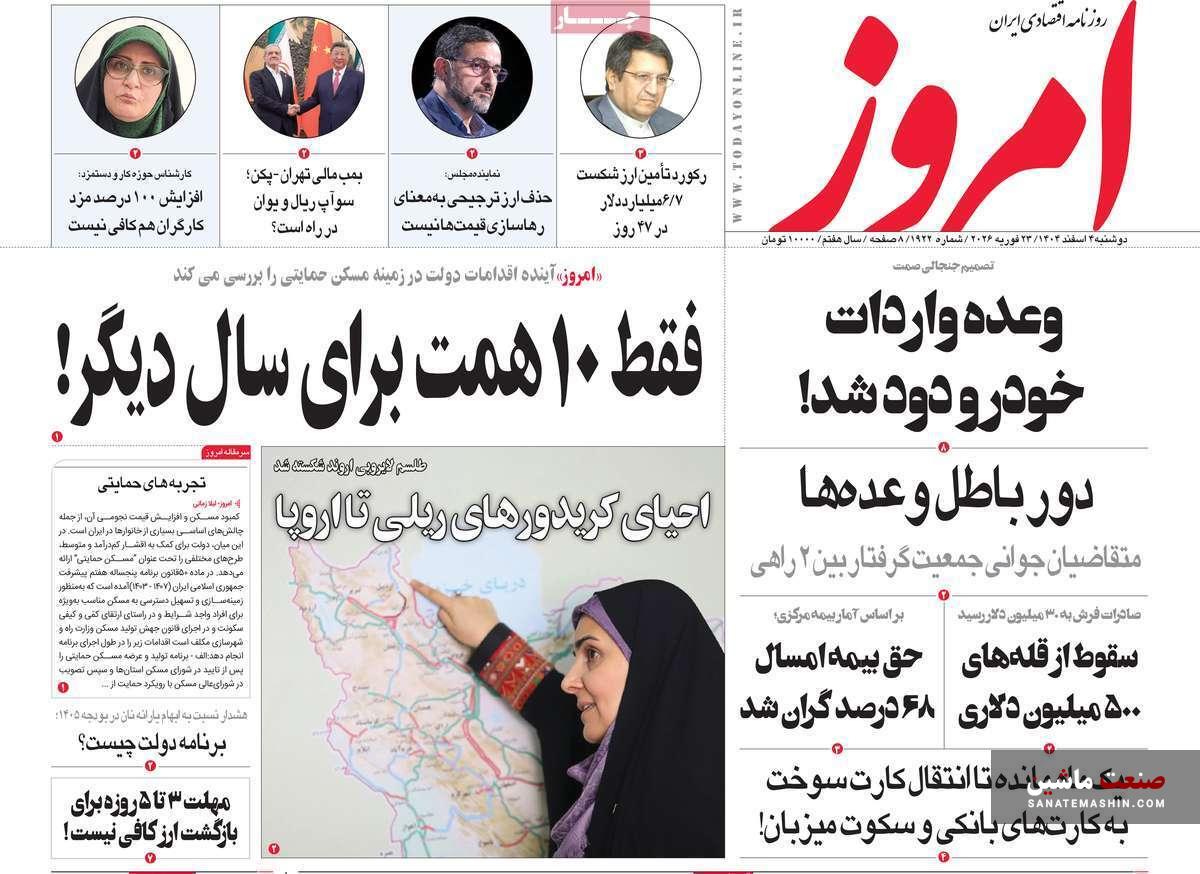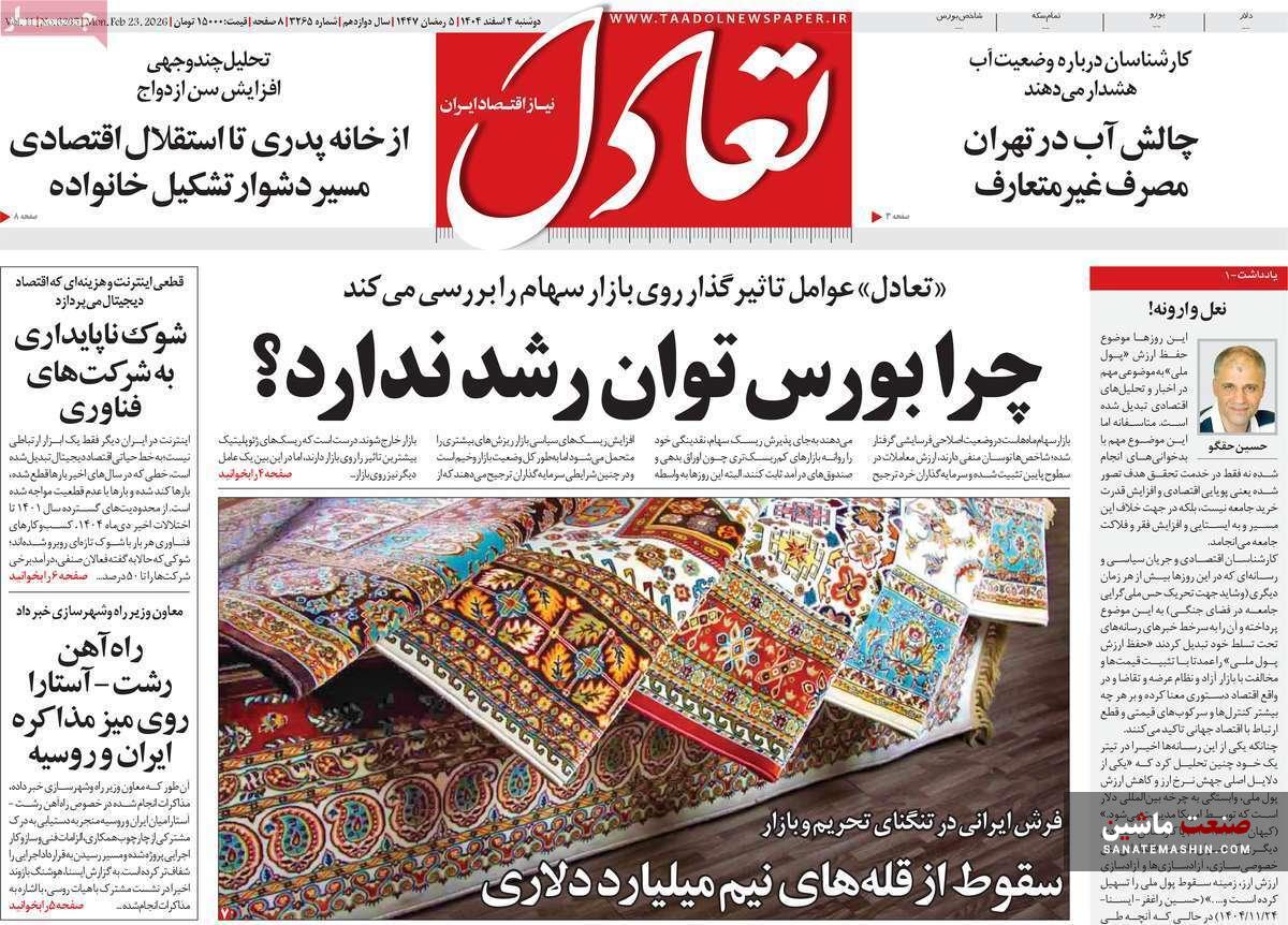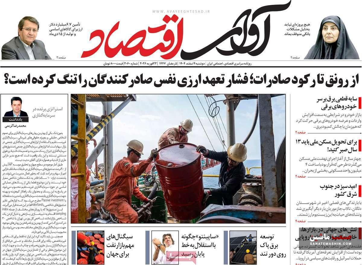 صفحه نخست روزنامه های اقتصادی 26 بهمن 1404