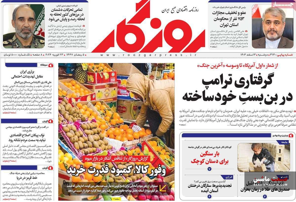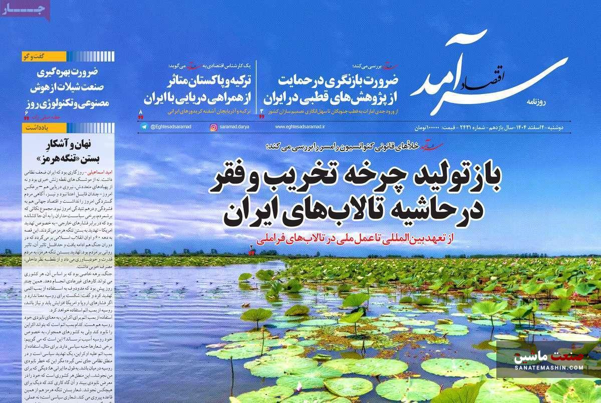صفحه نخست روزنامه های اقتصادی 3 اسفند 1404