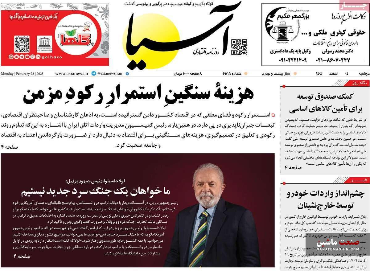 صفحه نخست روزنامه های اقتصادی 25 بهمن 1404